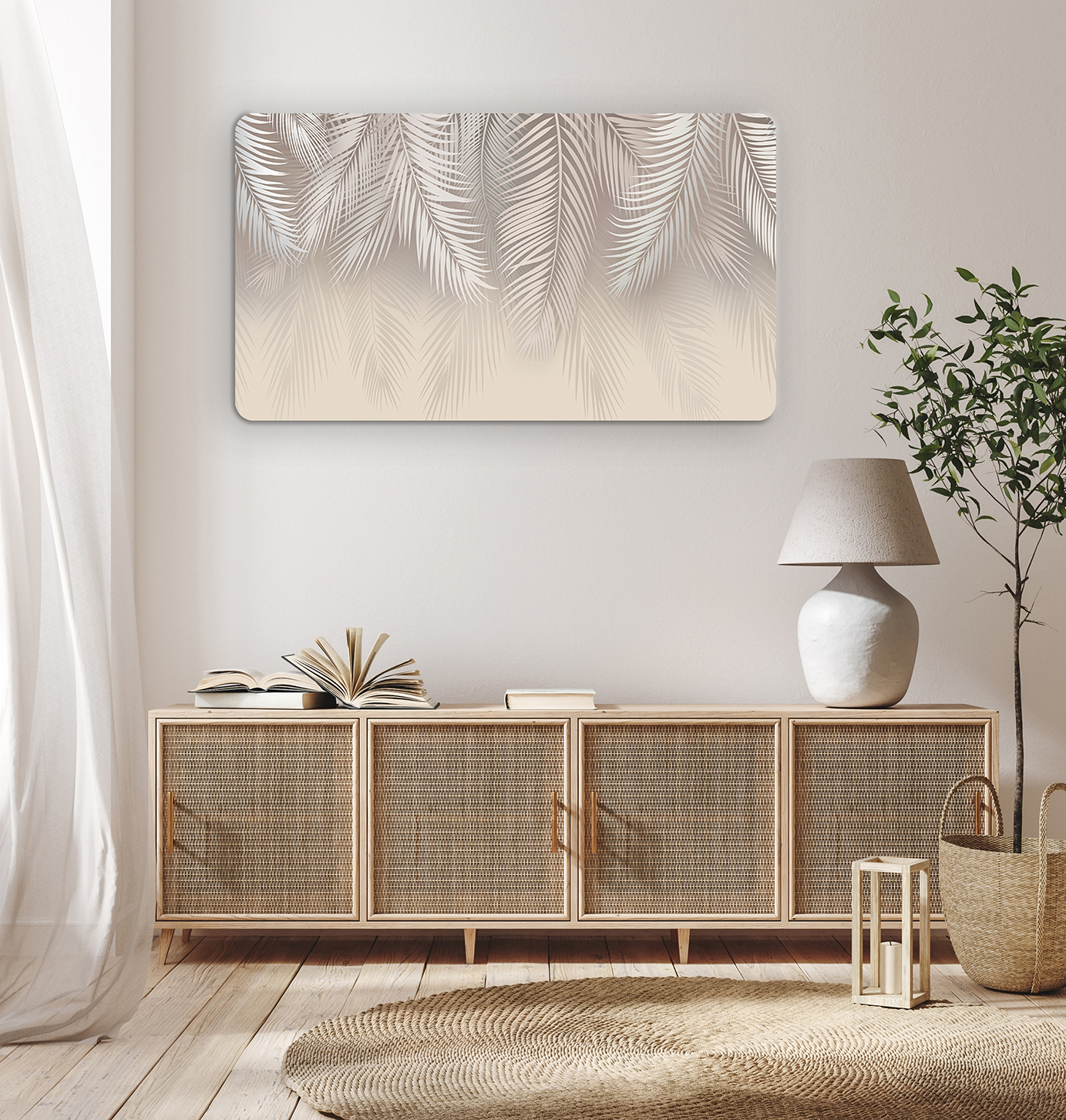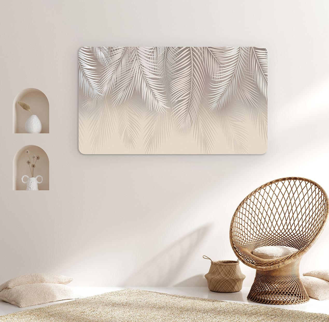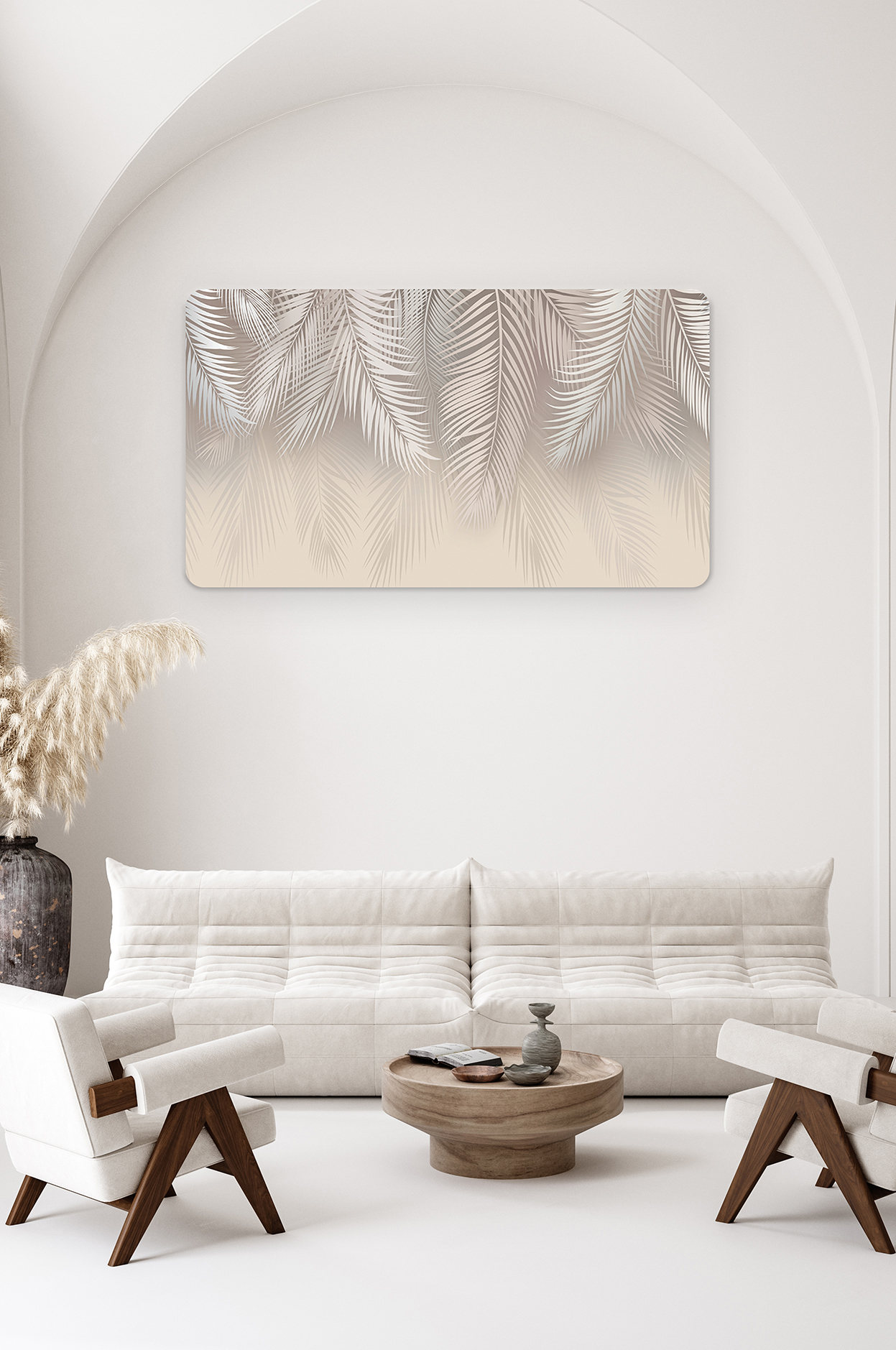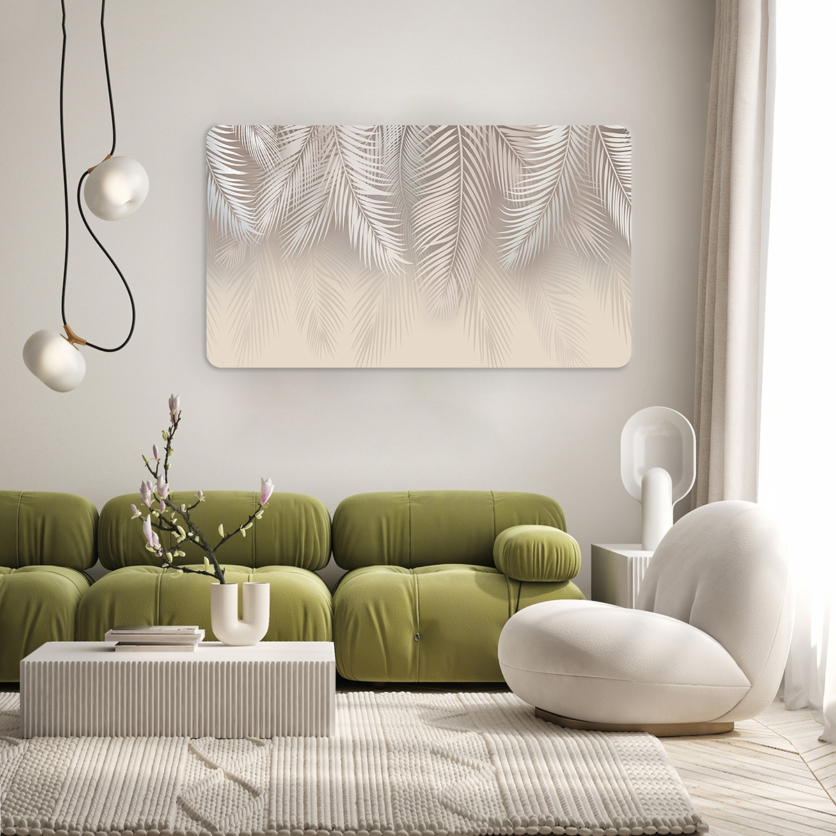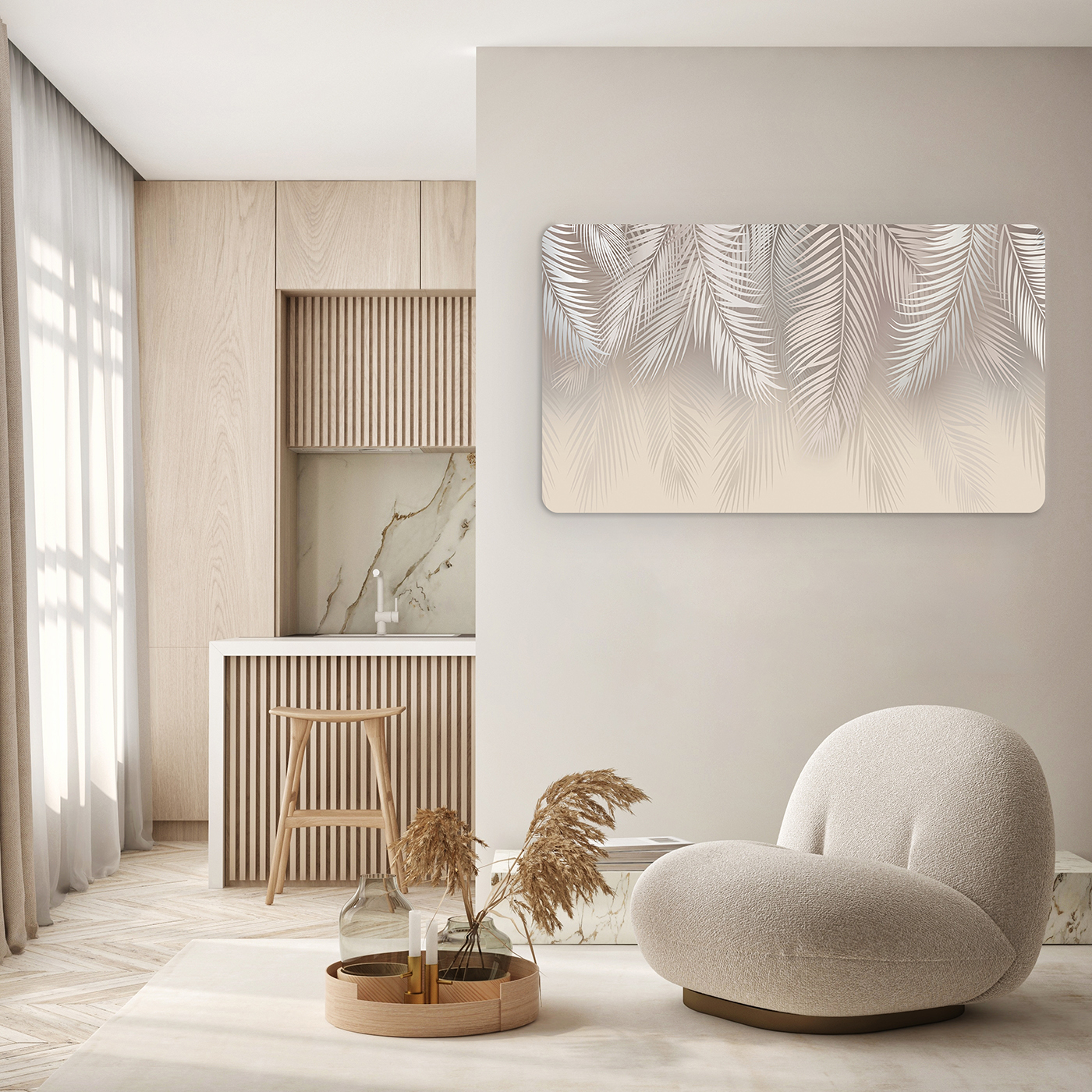 Pastel Palmiye Desenli Duvar Kağıdı – Zarif ve Doğal Tasarım 🎨🚂