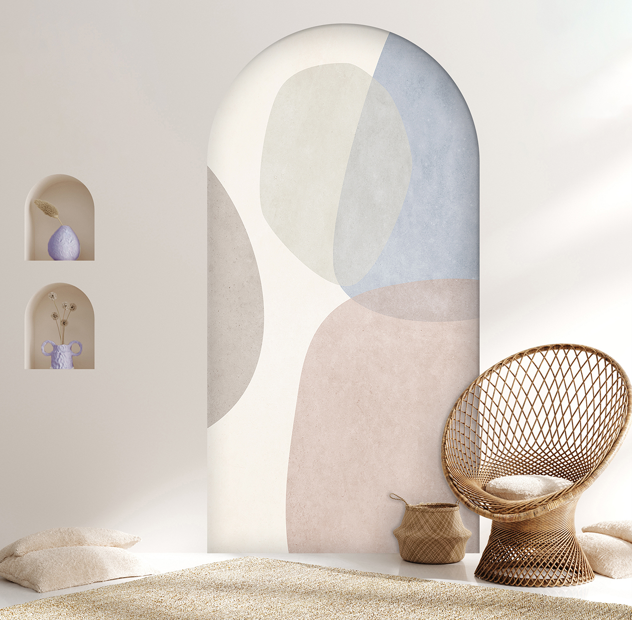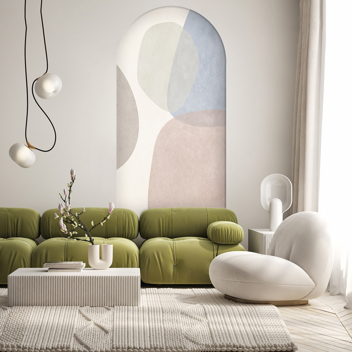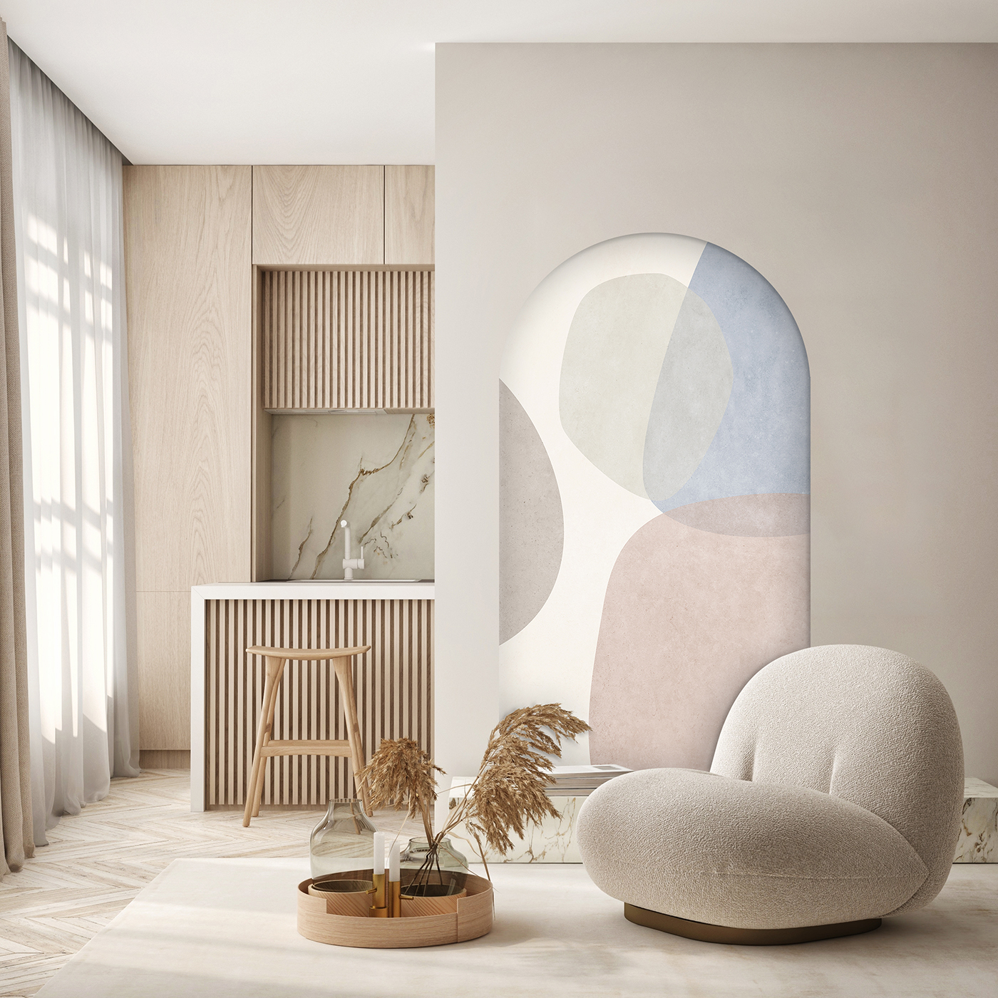 Pastel Tonlarında Geometrik Desenli Duvar Kağıdı – Modern İç Mekan Tasarımı 🎨🚂