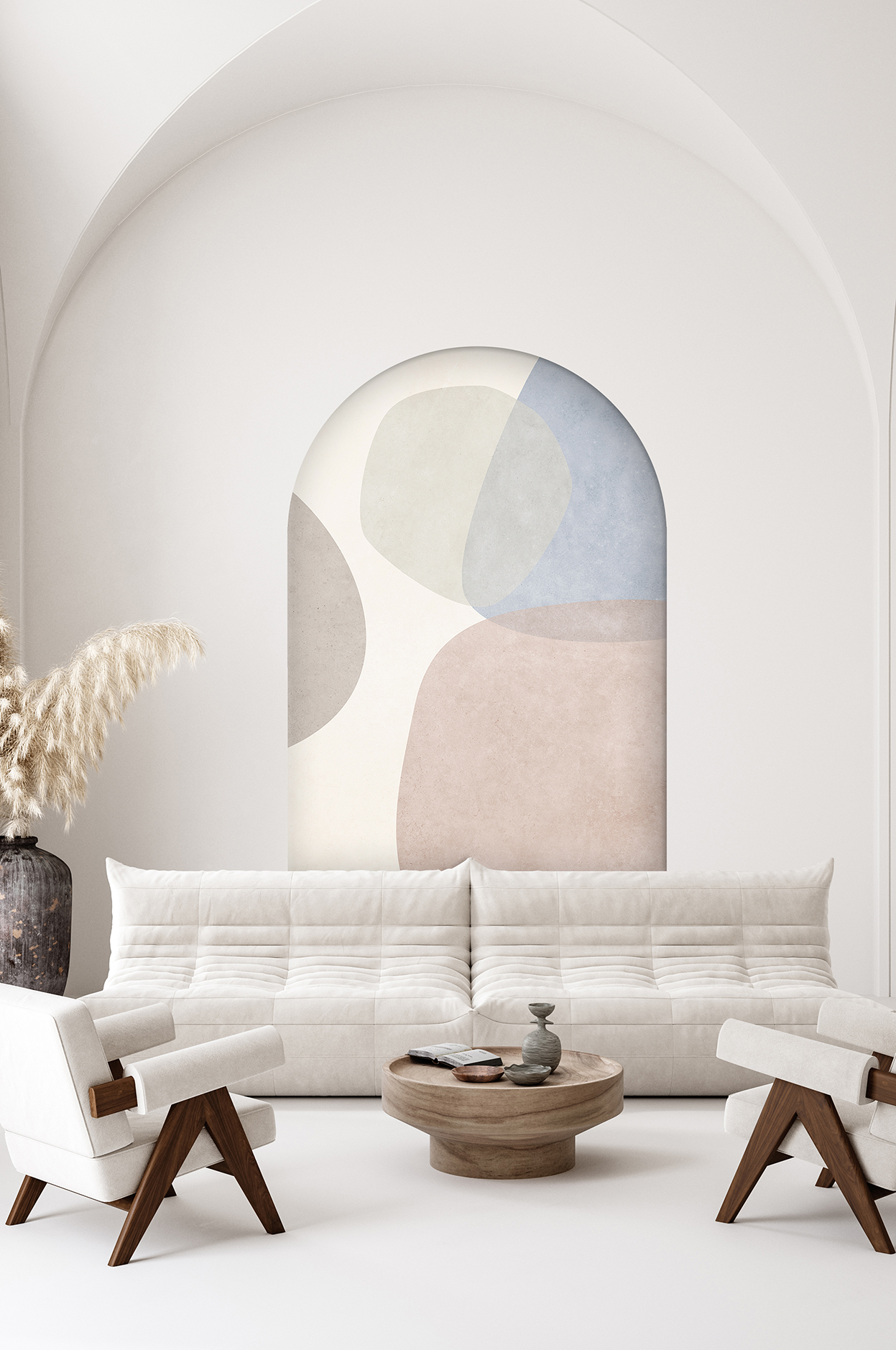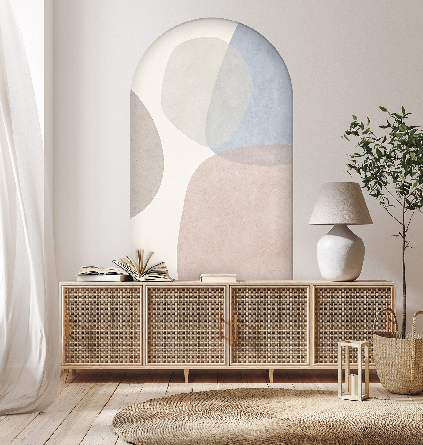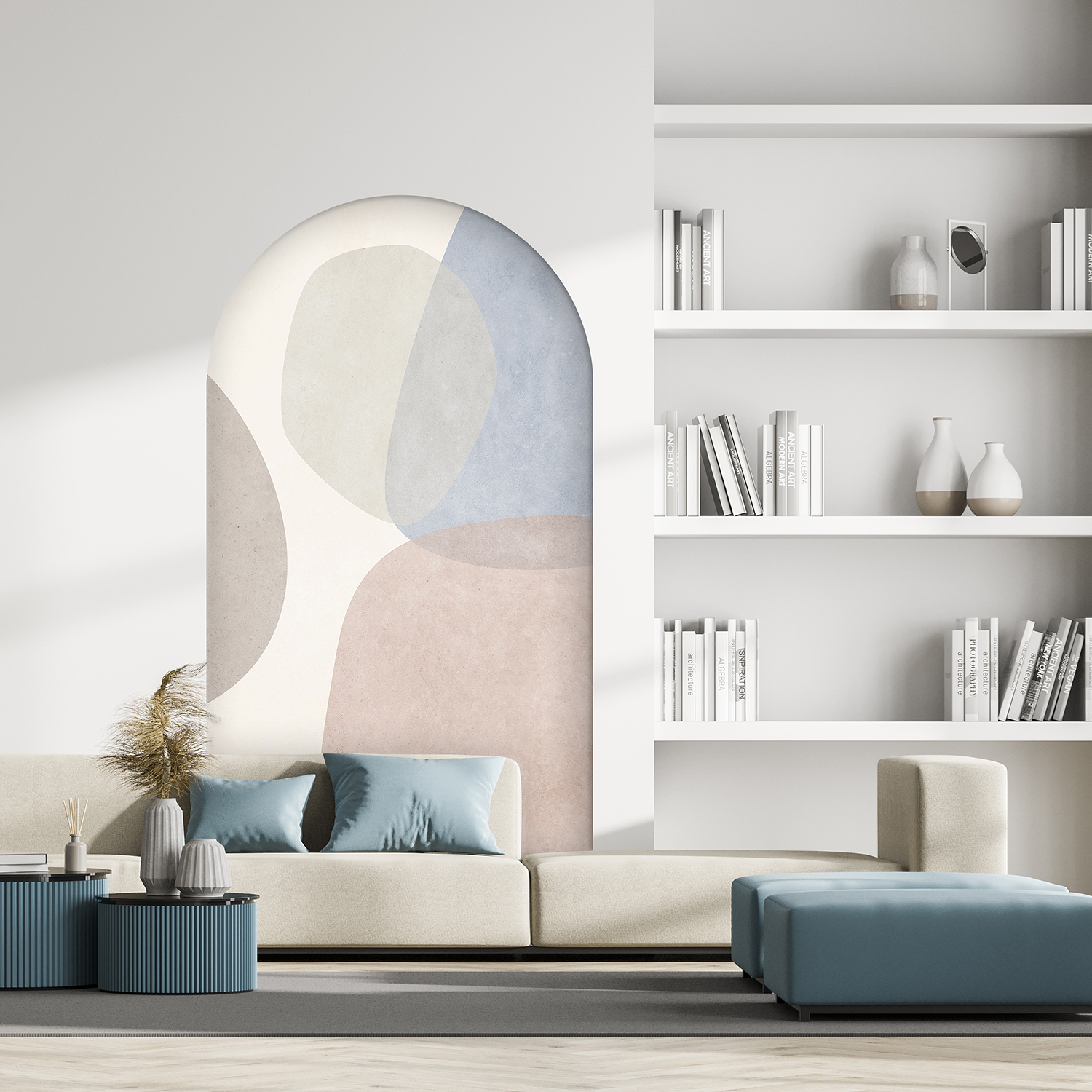 Pastel Tonlarında Geometrik Desenli Duvar Kağıdı – Modern İç Mekan Tasarımı 🎨🚂