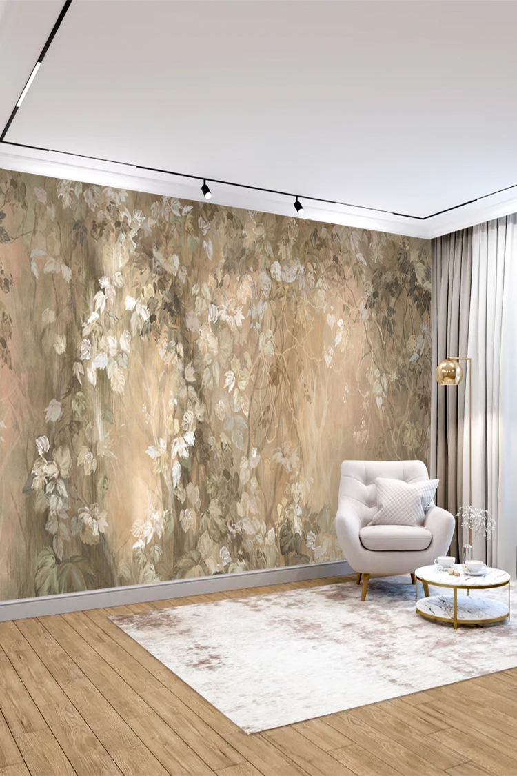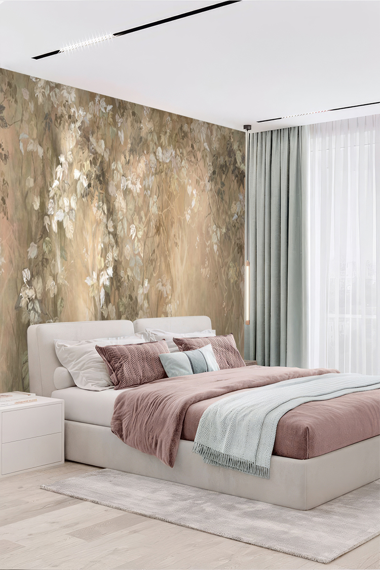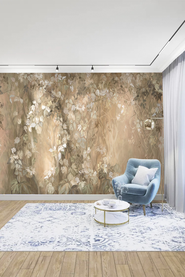 Pastel Yaprak Desenli Duvar Kağıdı