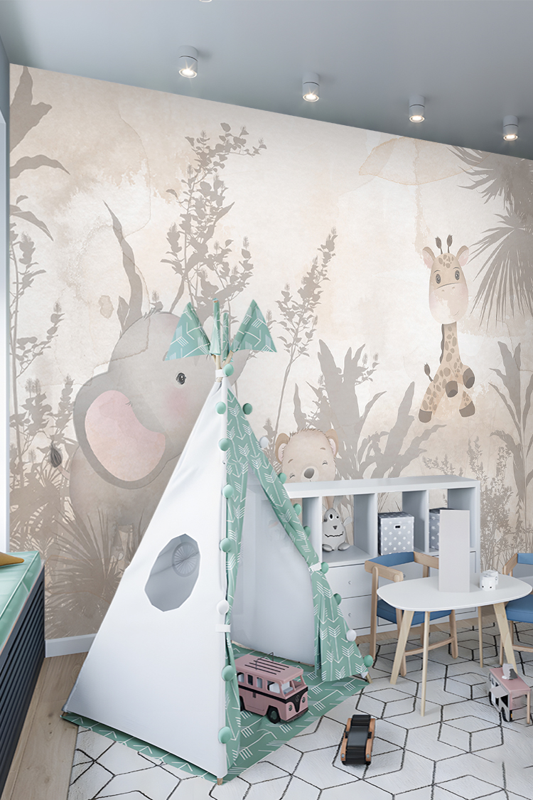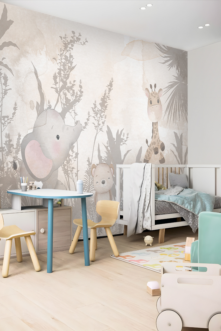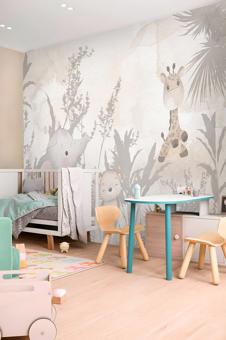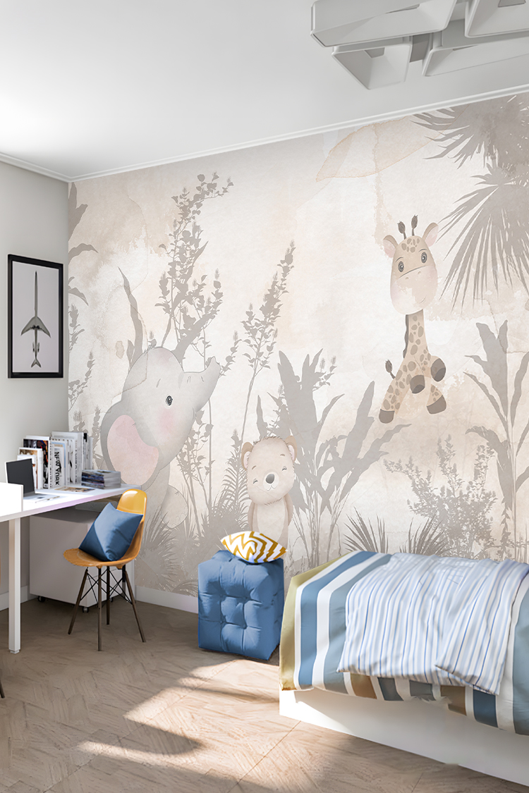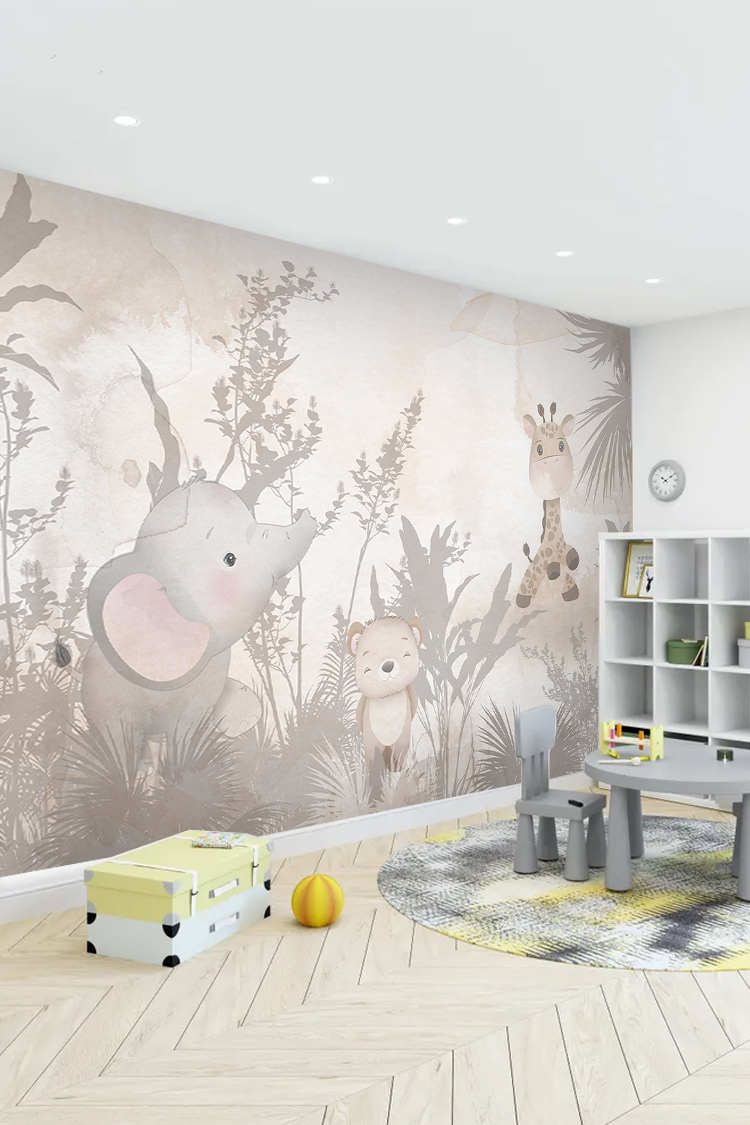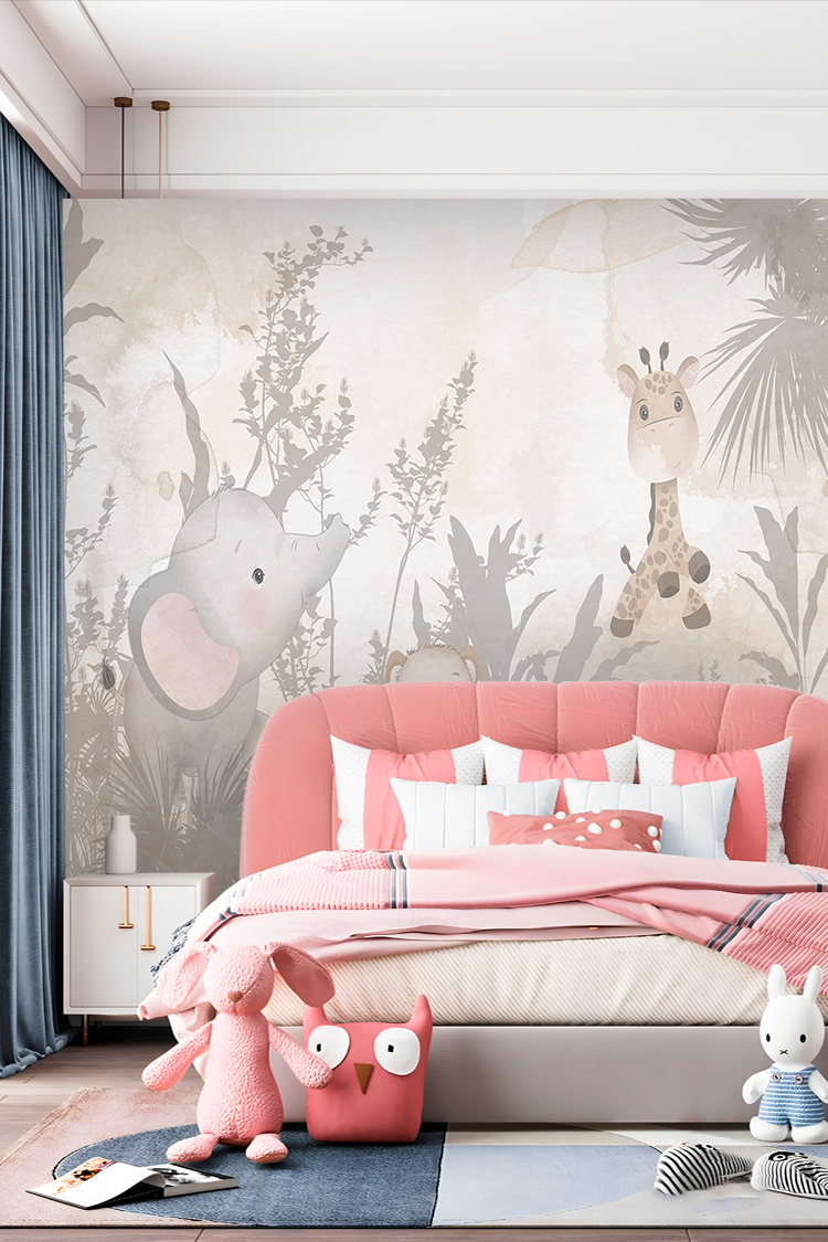 Pastel Zürafa ve Fil Duvar Kağıdı