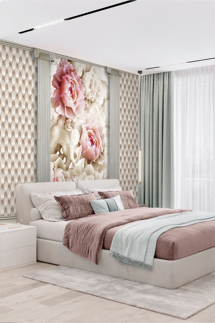 Pembe Gül Desenli Şık Duvar Kağıdı