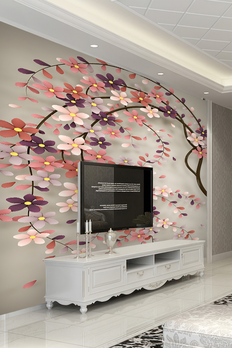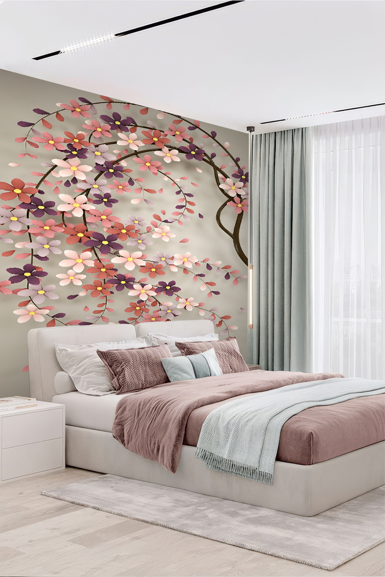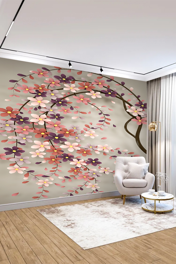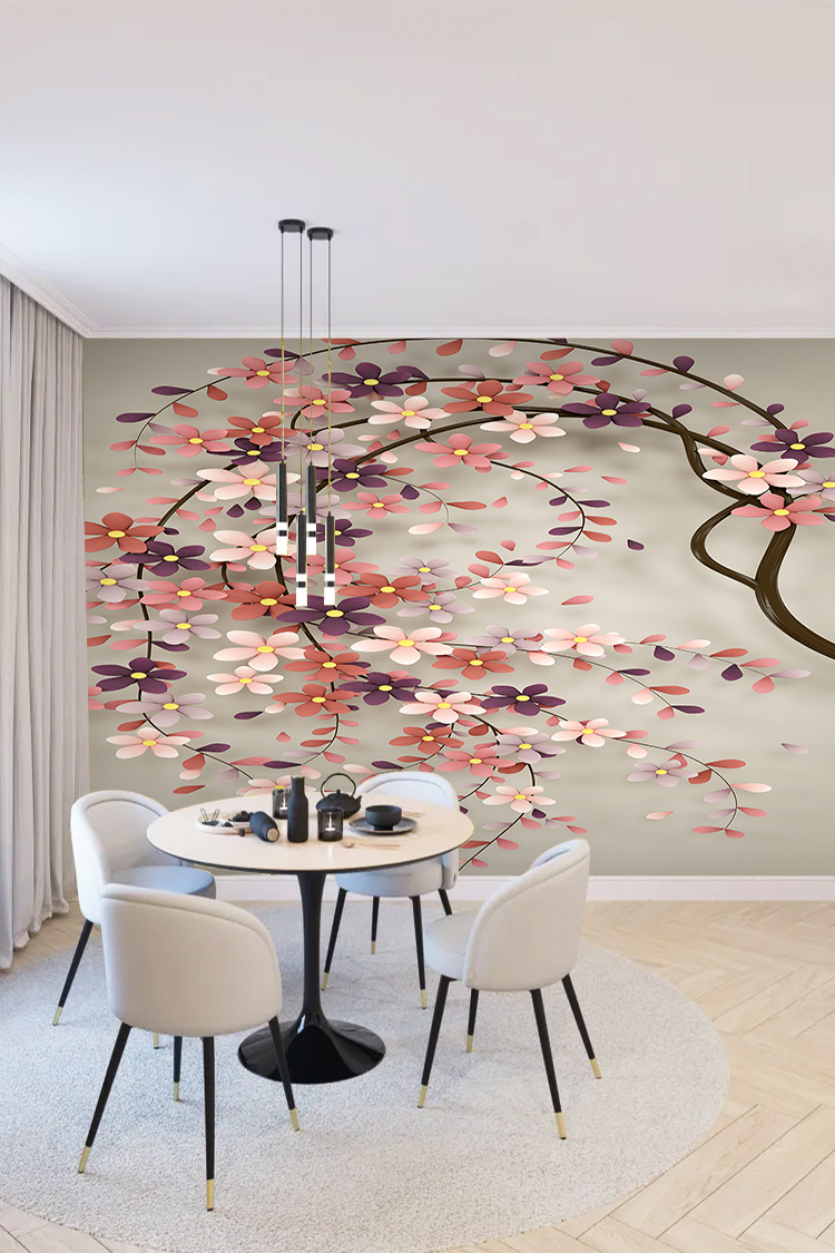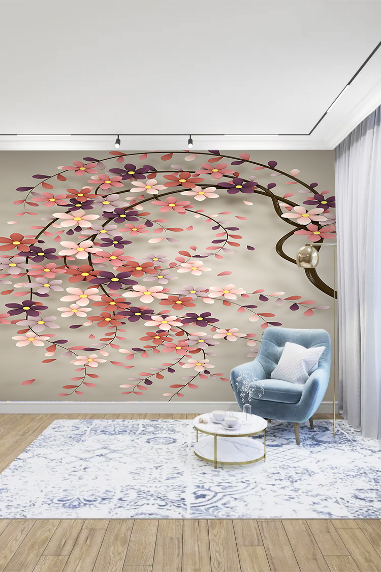 Pembe ve Mor Çiçek Deseni ile Zarif Duvar Kağıdı