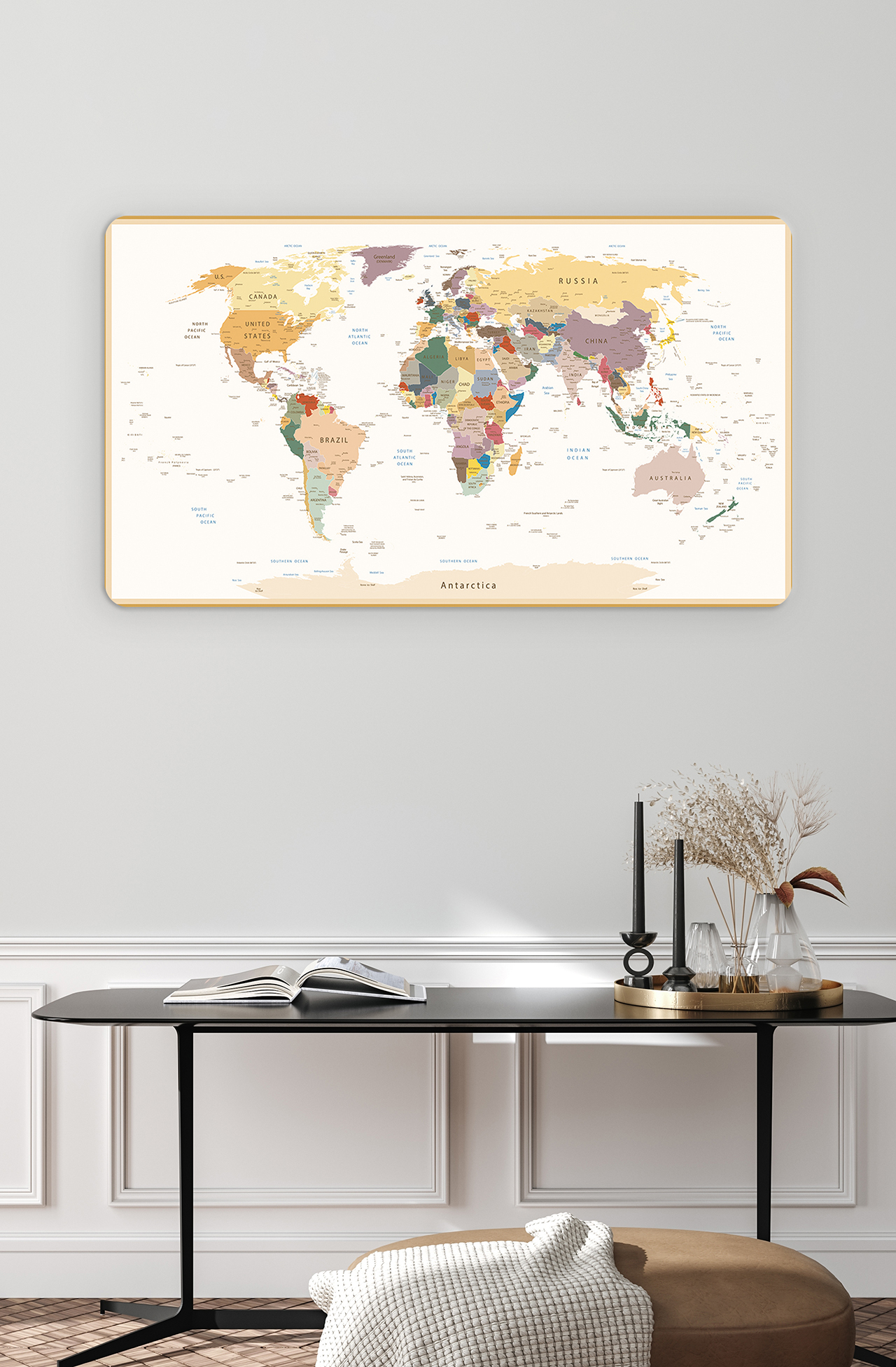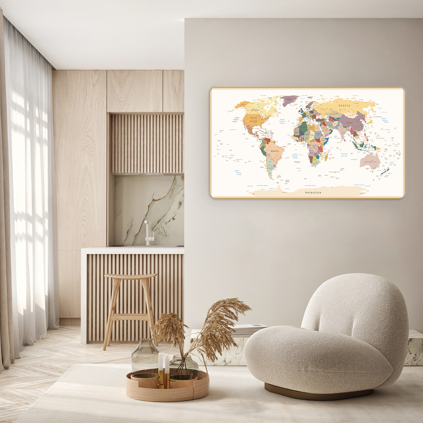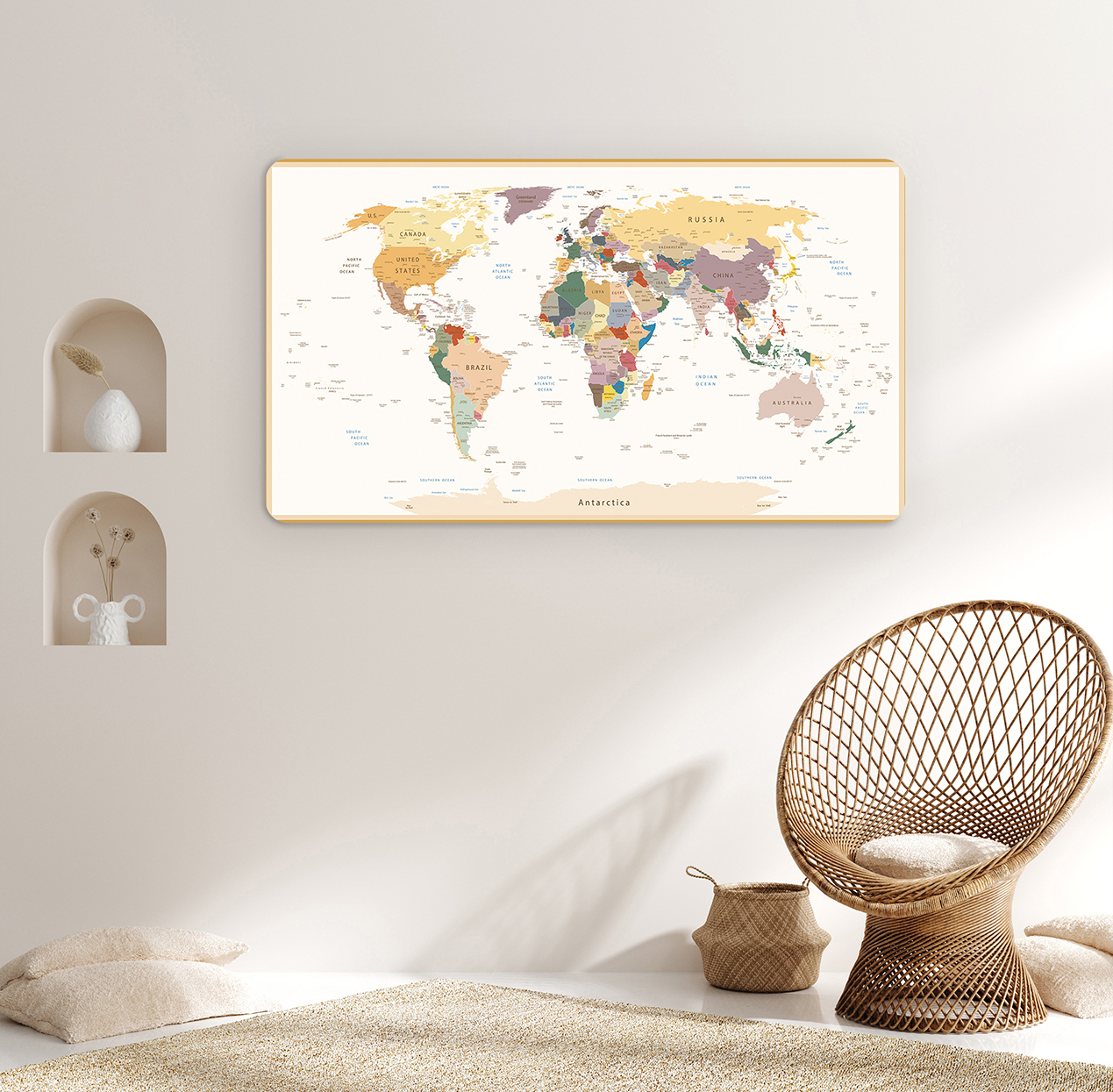 Renkli Dünya Haritası ve Ülkeler Temalı Duvar Kağıdı – Eğlenceli ve Canlı Seyahat Tasarımı 🎨🚂