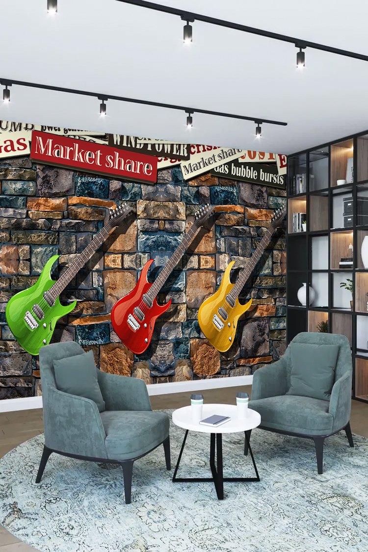 Renkli Gitar ve Yazı Temalı Duvar Kağıdı