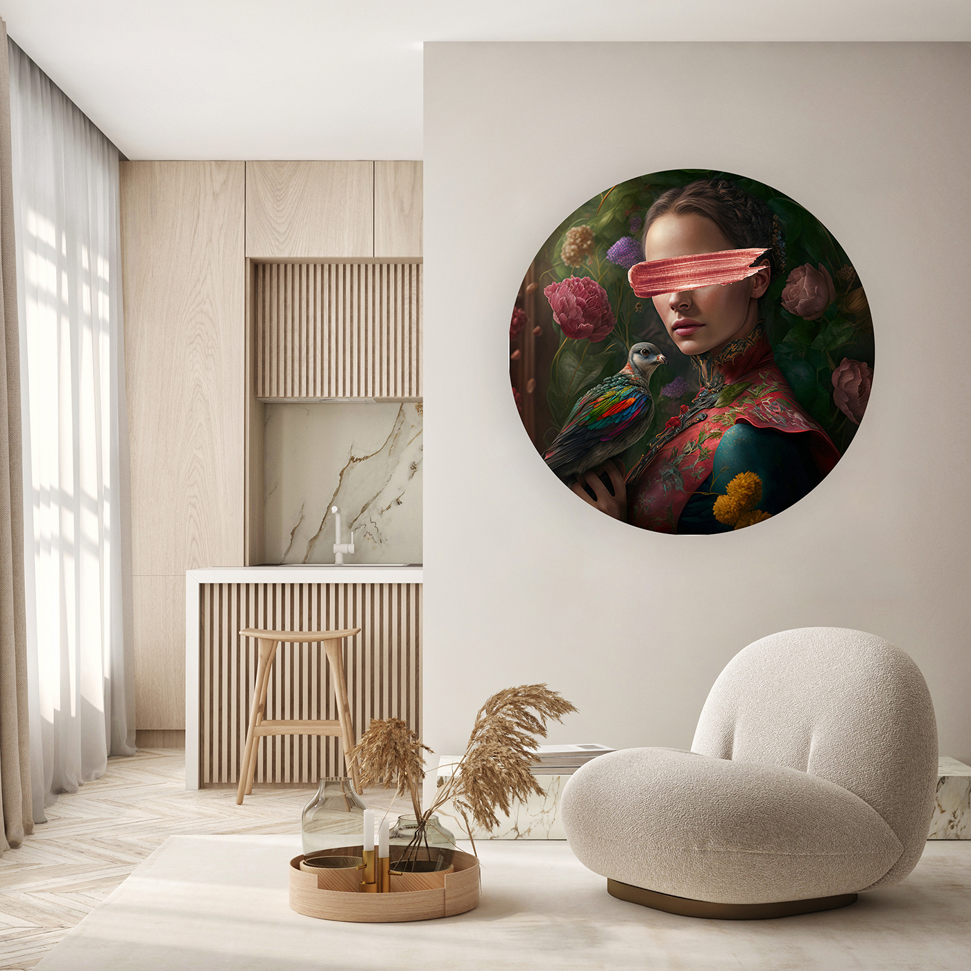 Renkli Kuş ve Çiçek Desenli Duvar Dekoru – Sanatsal Tasarım 🎨🚂