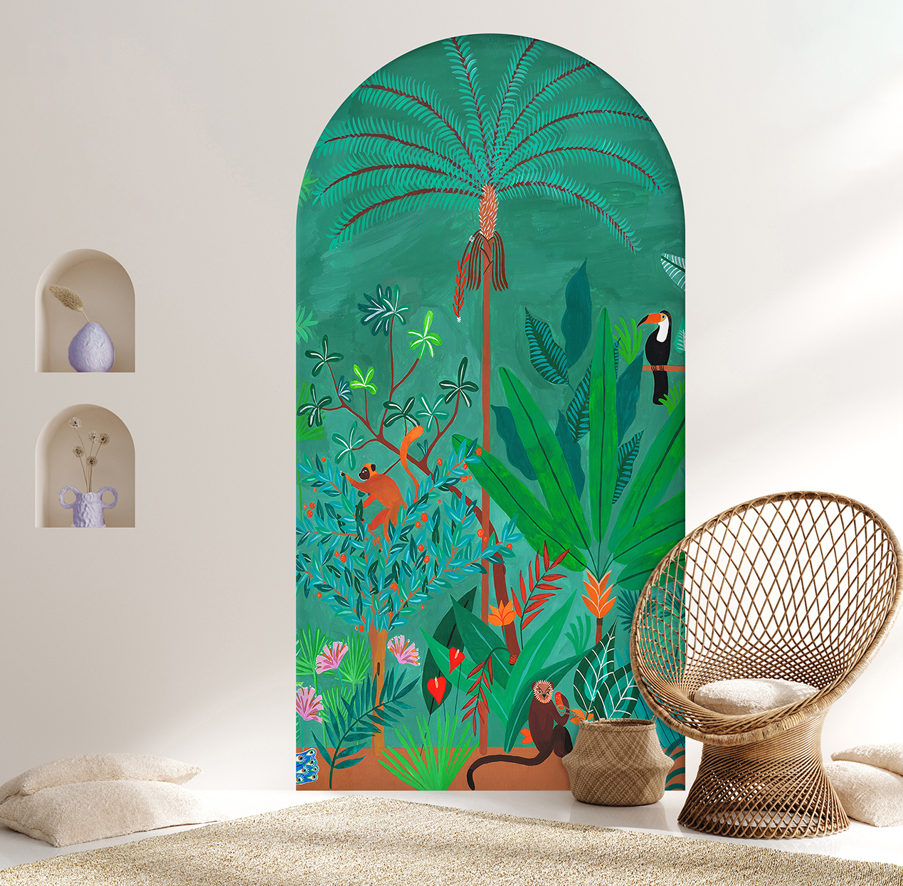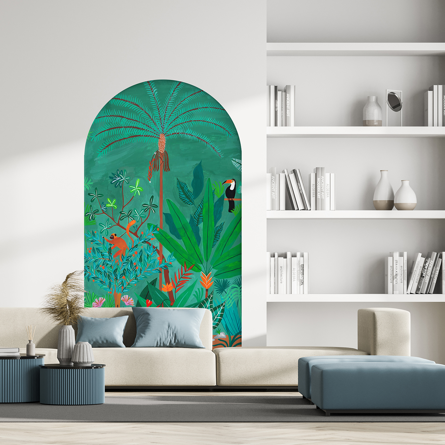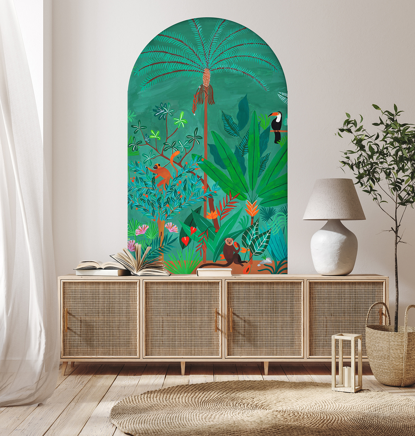 Renkli Tropik Orman Temalı Duvar Kağıdı – Evinize Egzotik Bir Hava Katın 🎨🚂
