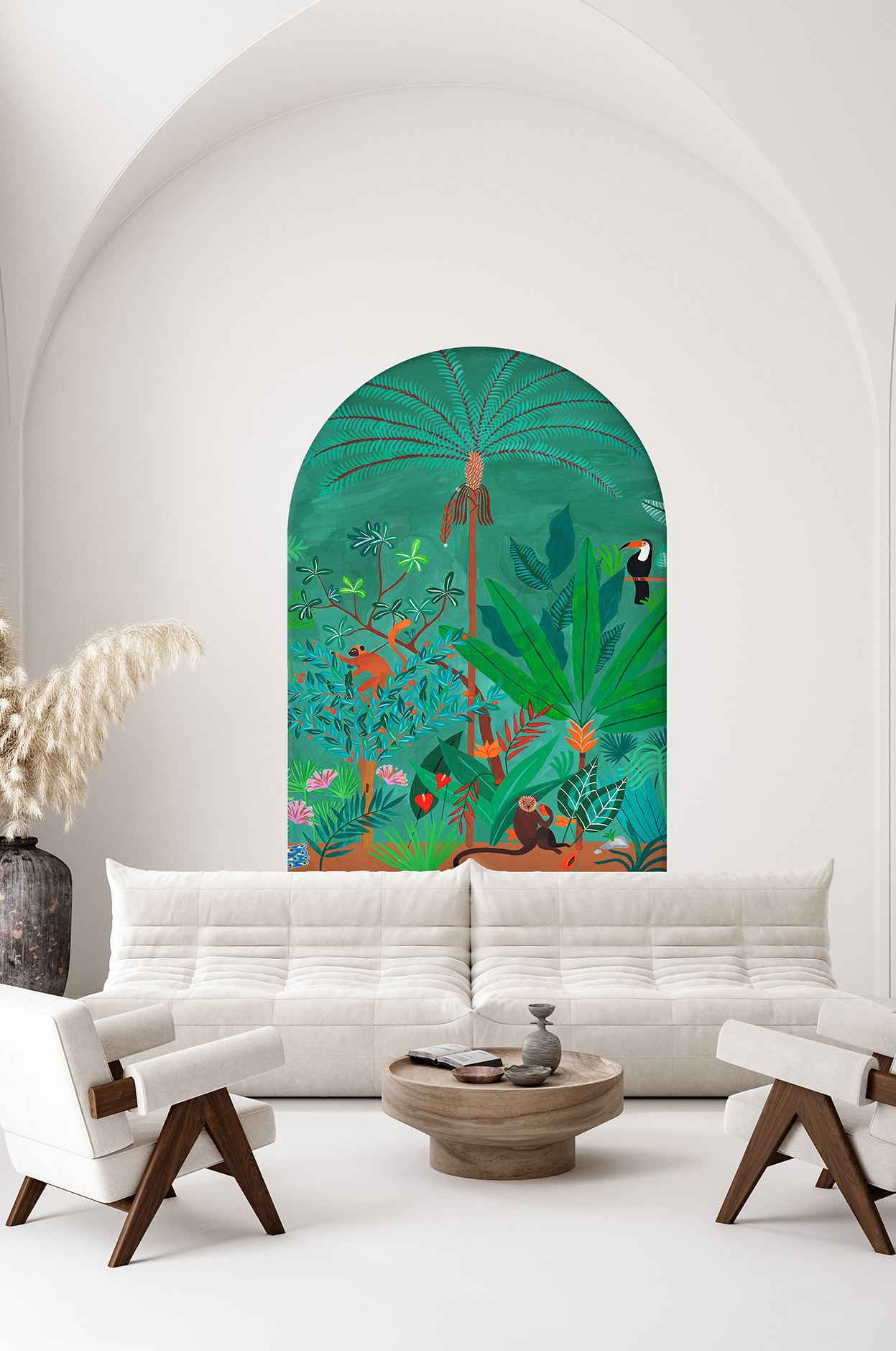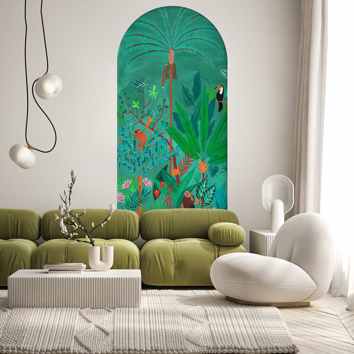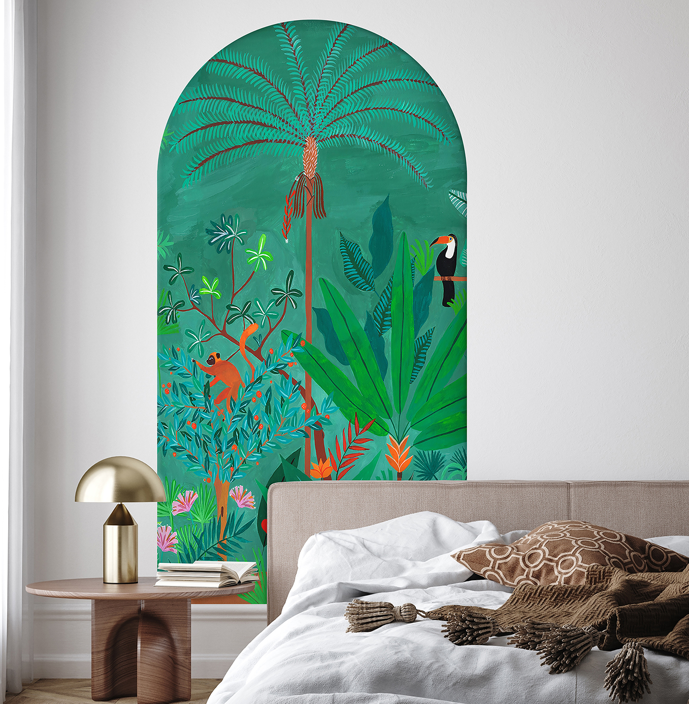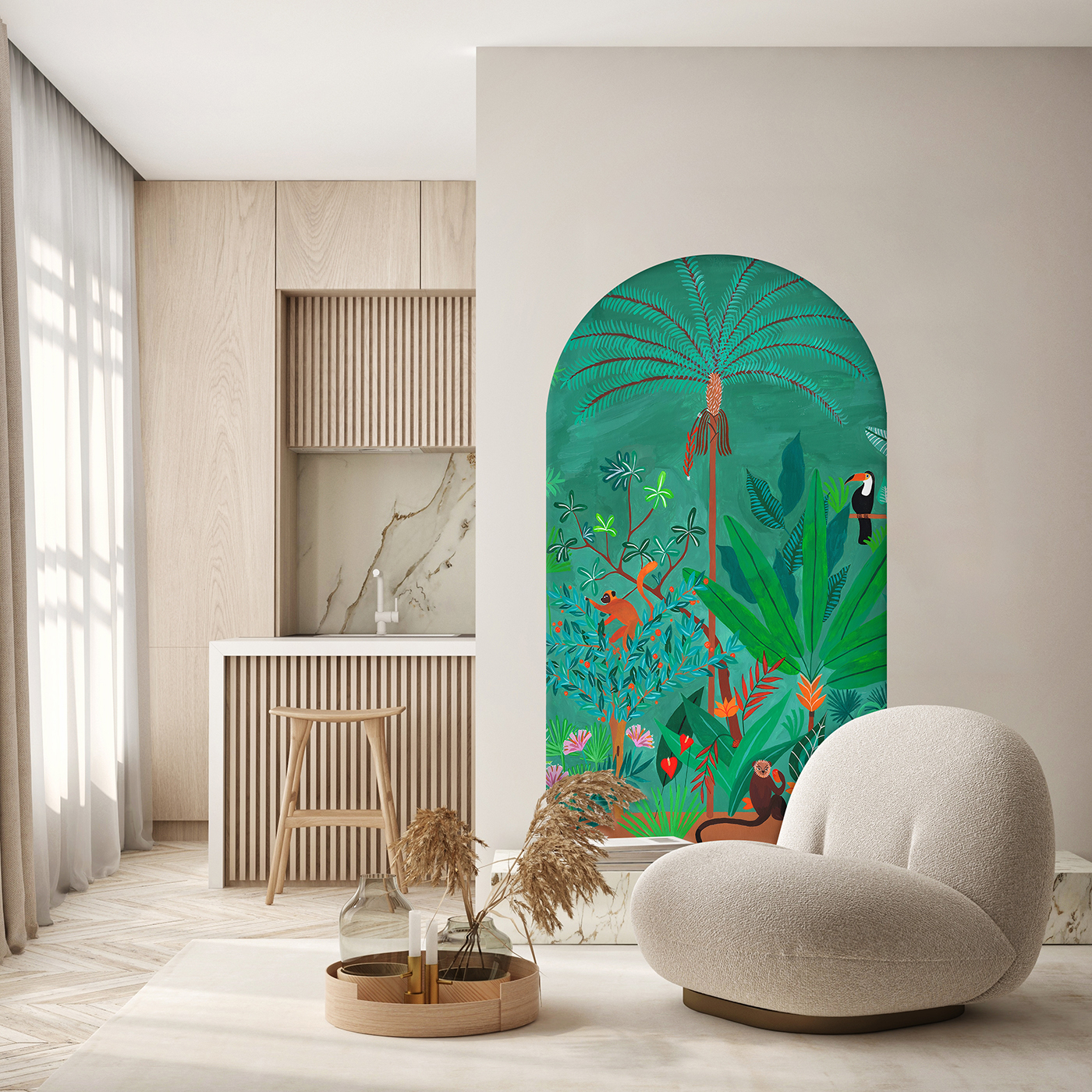 Renkli Tropik Orman Temalı Duvar Kağıdı – Evinize Egzotik Bir Hava Katın 🎨🚂