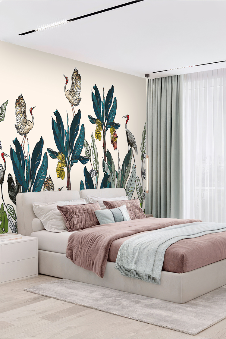 Renkli Tropikal Kuş Desenli Duvar Kağıdı