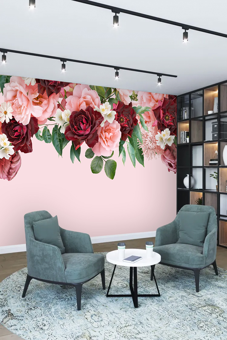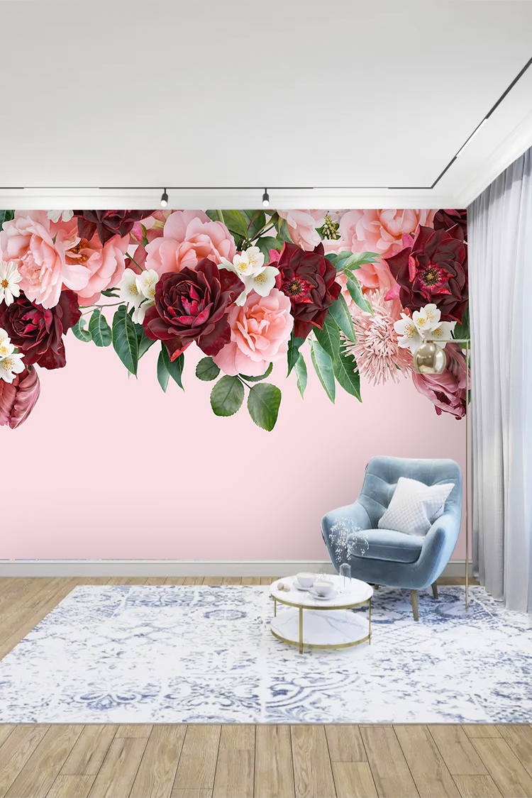 Romantik Pembe Çiçek Desenli Duvar Kağıdı