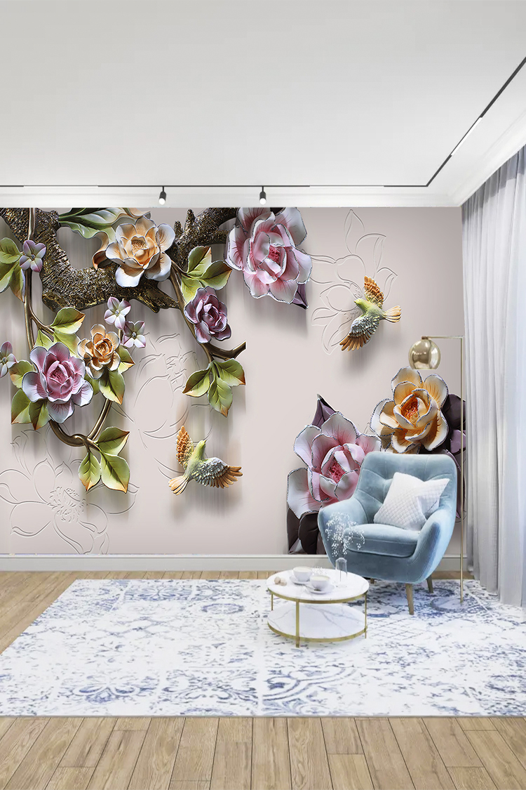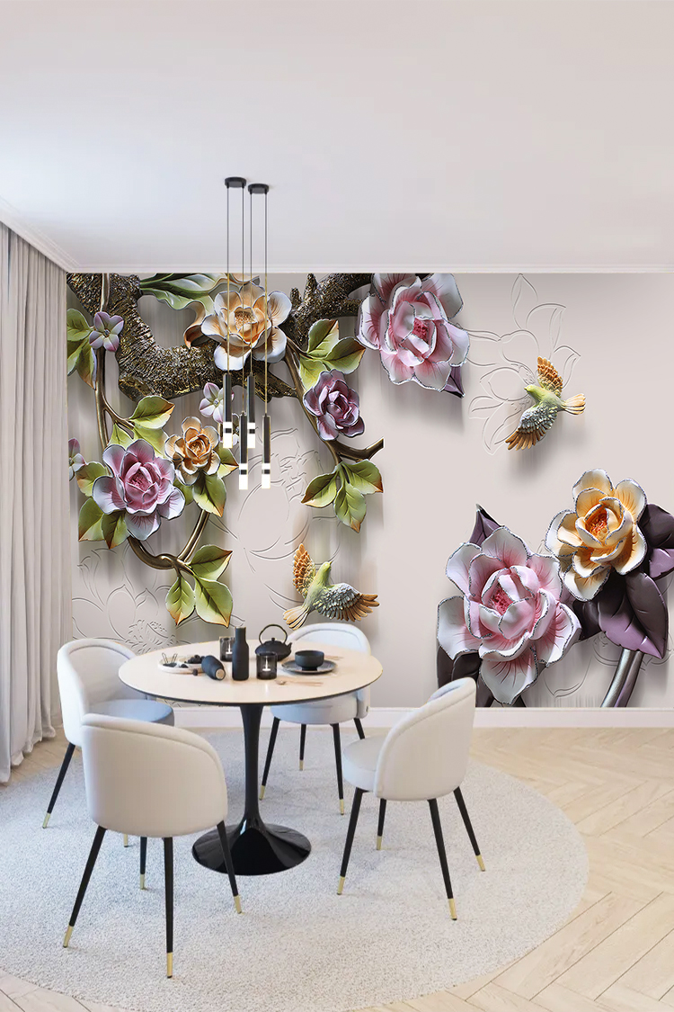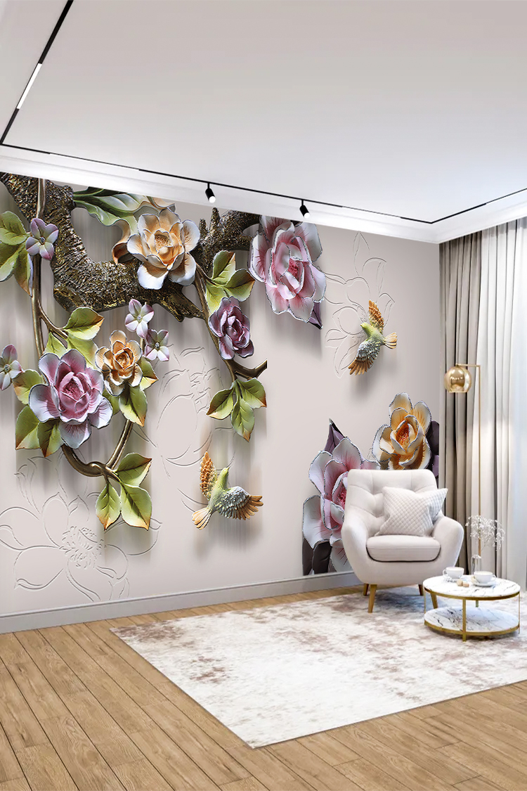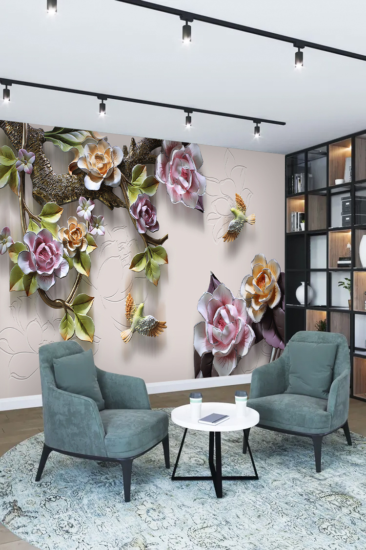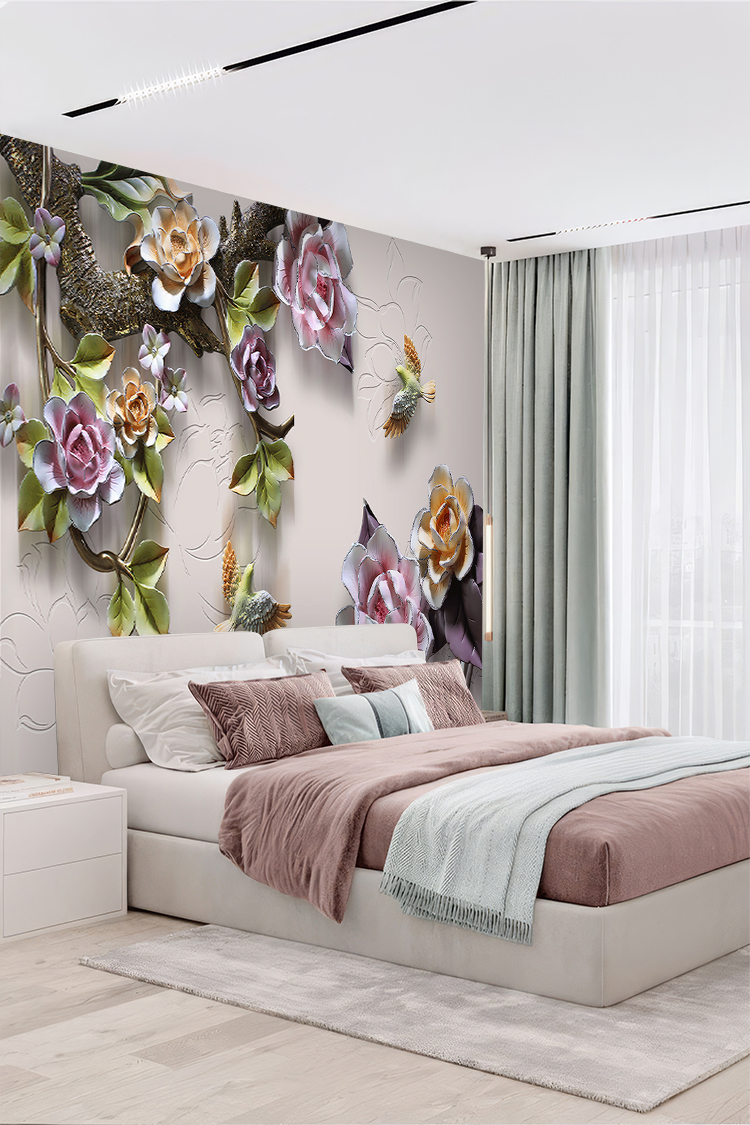 Roses ve Kuş Deseni Duvar Kağıdı – Zarif ve Estetik Dekorasyon