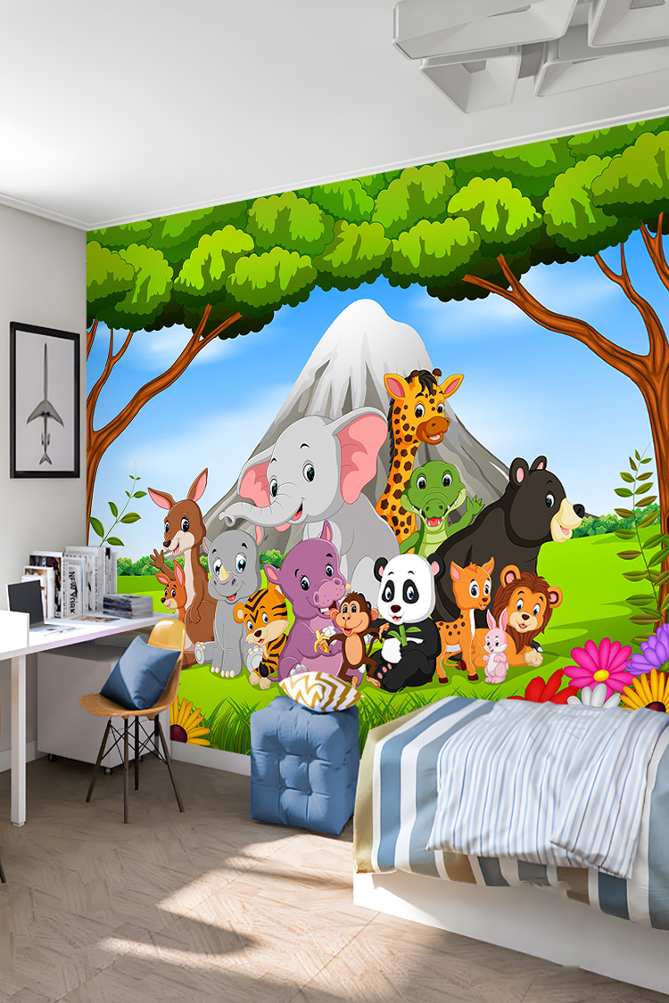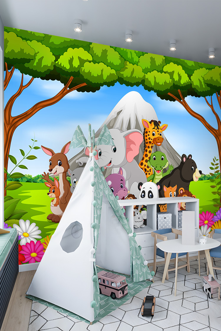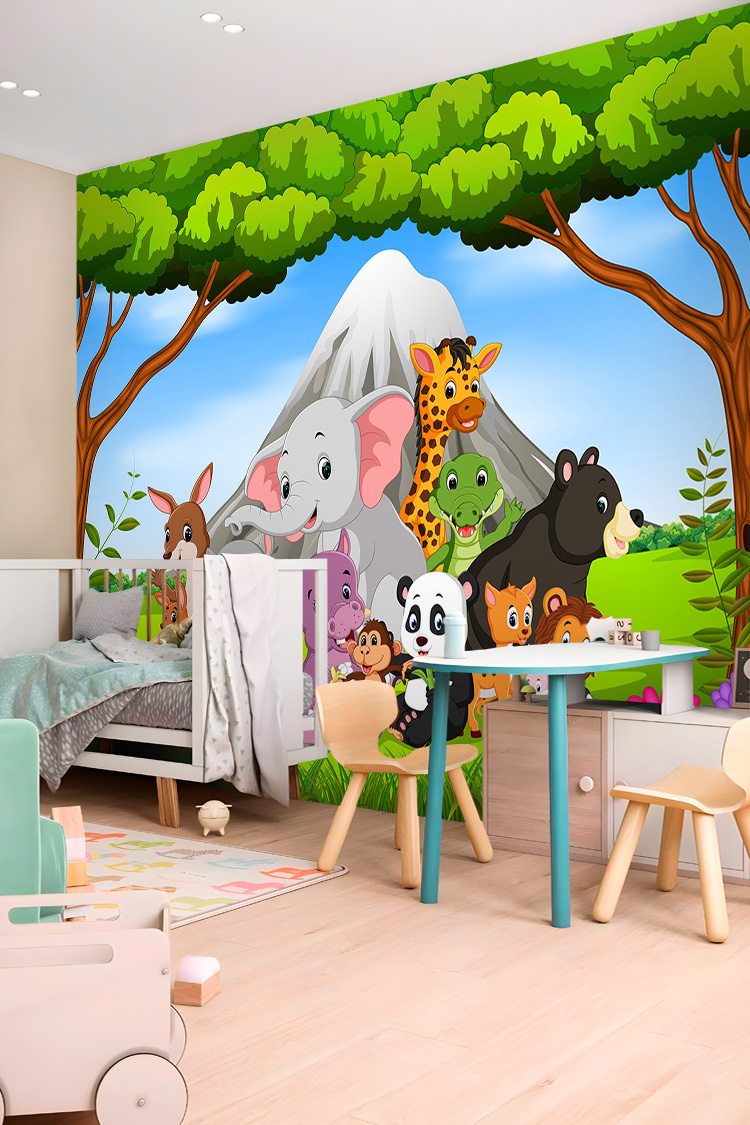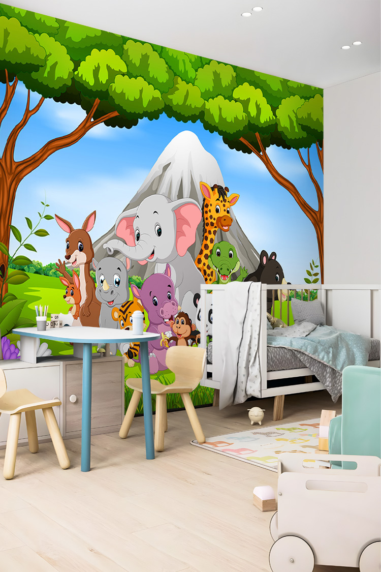 Safari Hayvan Figürlü Çocuk Odası Duvar Kağıdı