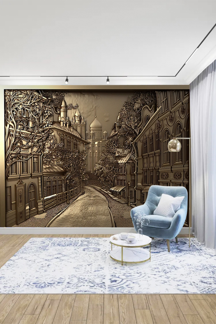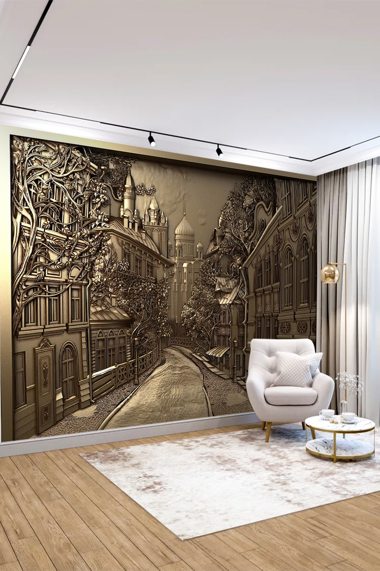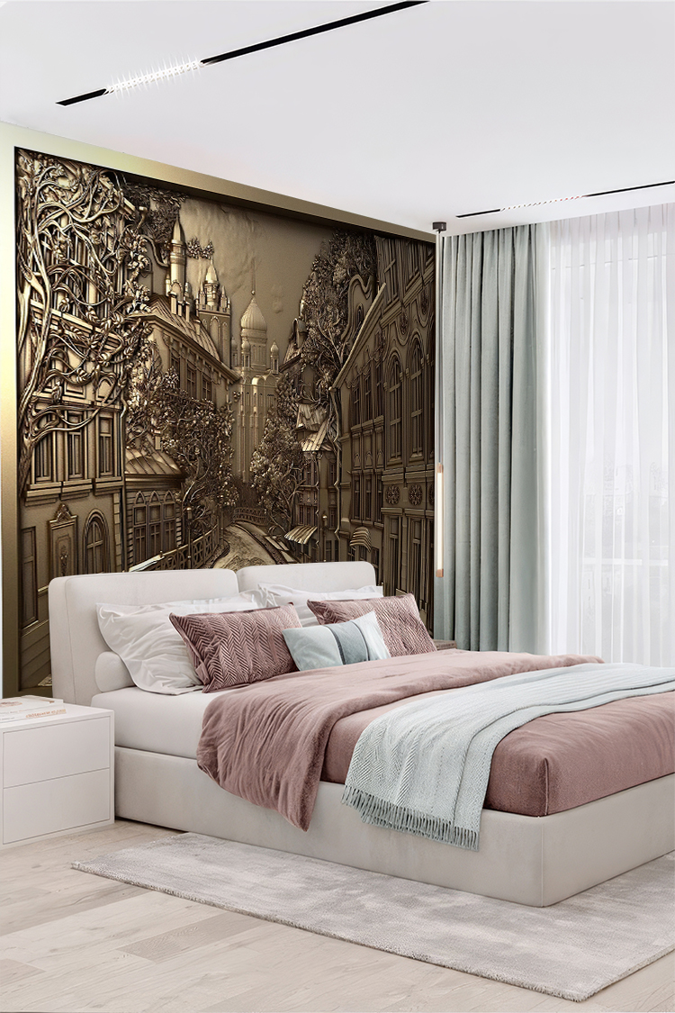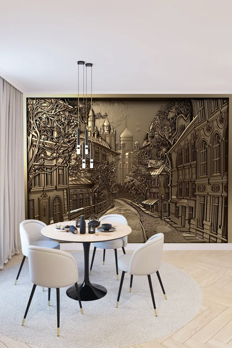 Sanatsal Sokak Manzarası Duvar Kağıdı – Estetik Ev Dekoru