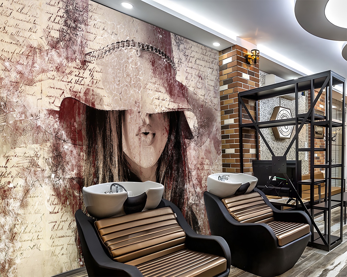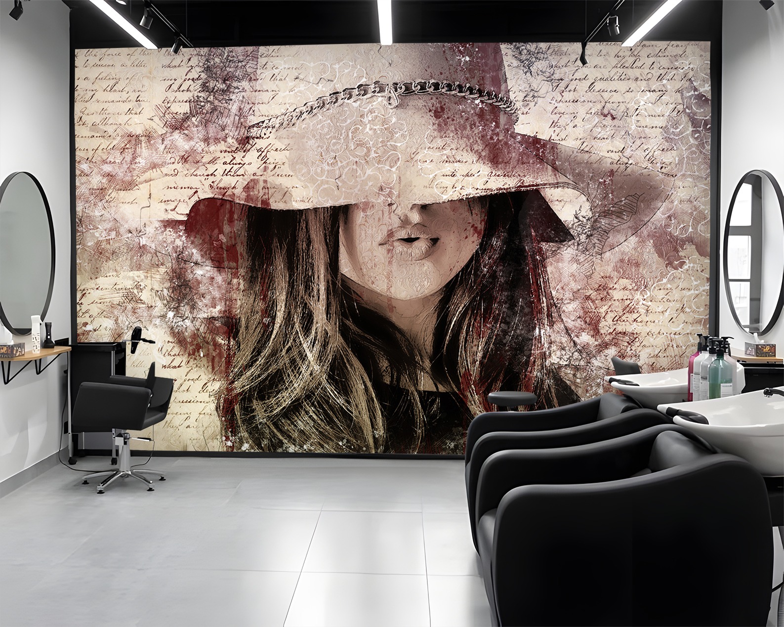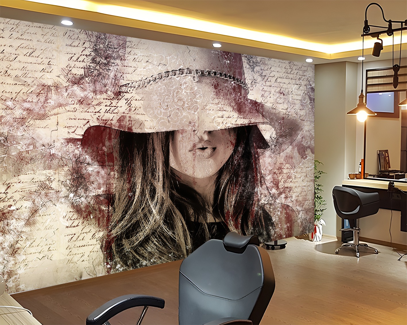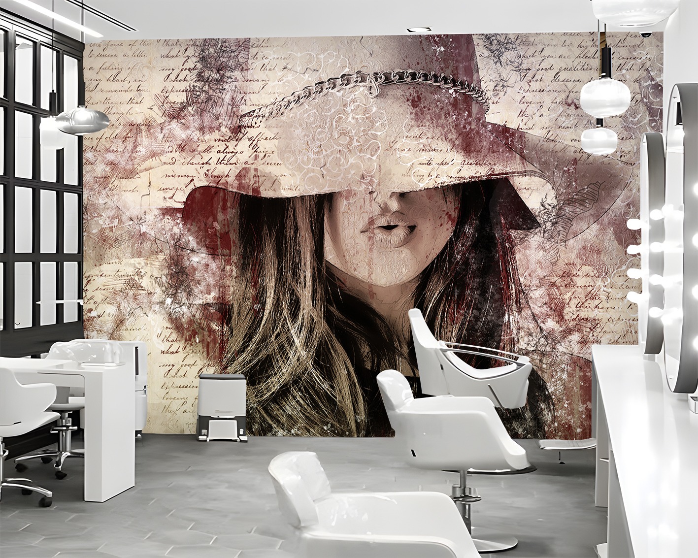 Şapkalı Kadın ve El Yazısı Desenli Duvar Kağıdı