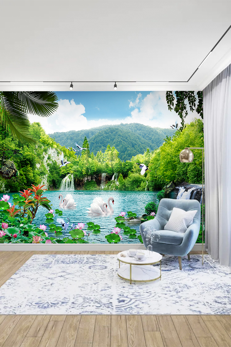 Şelale ve Kuğular Duvar Kağıdı