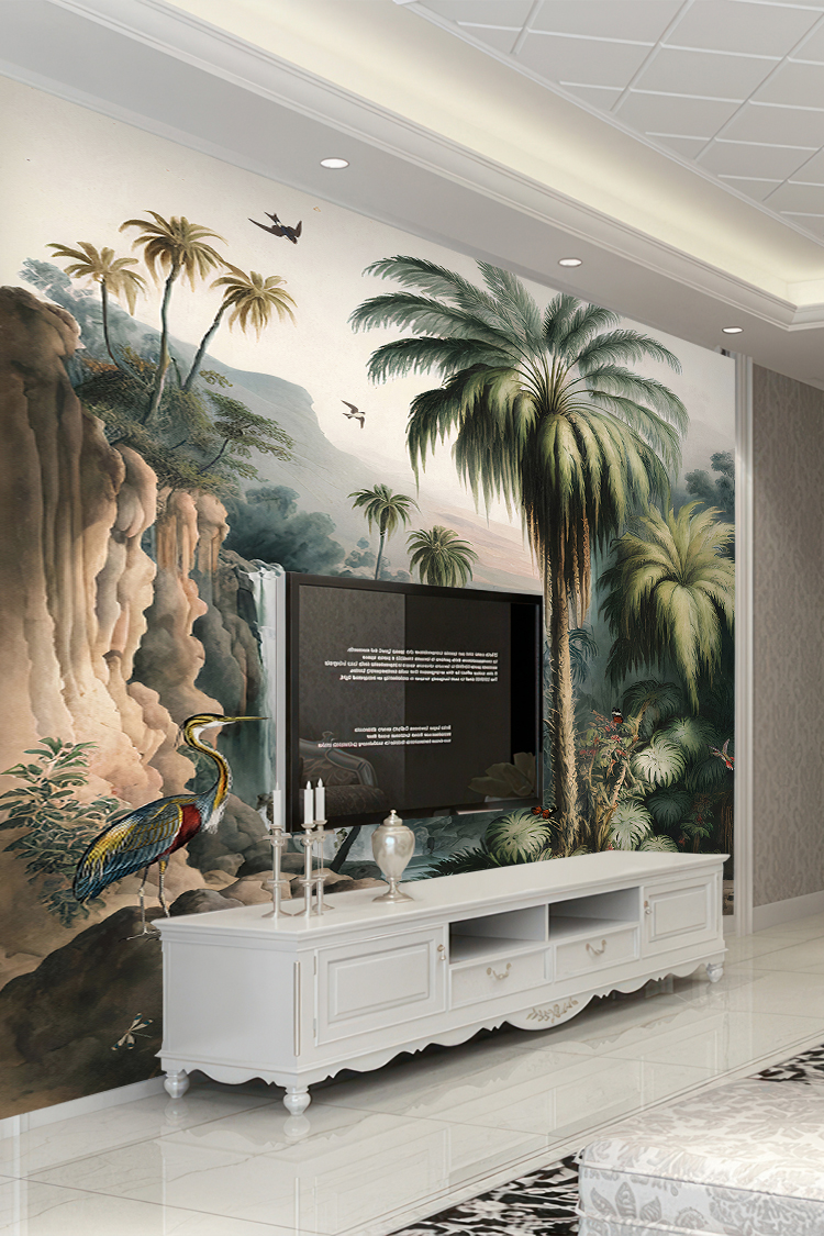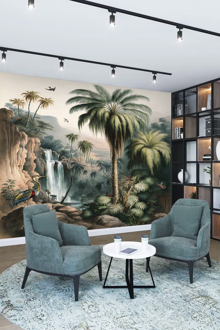 Şelale ve Palmiyelerle Tropikal Duvar Kağıdı