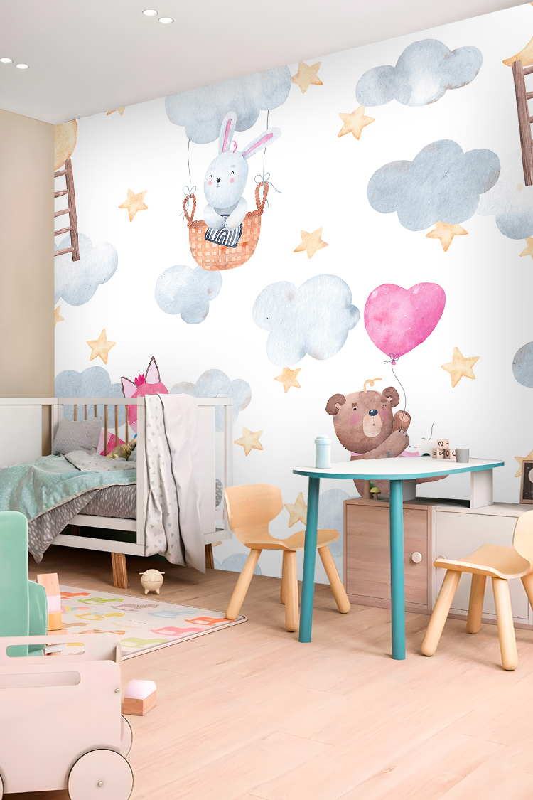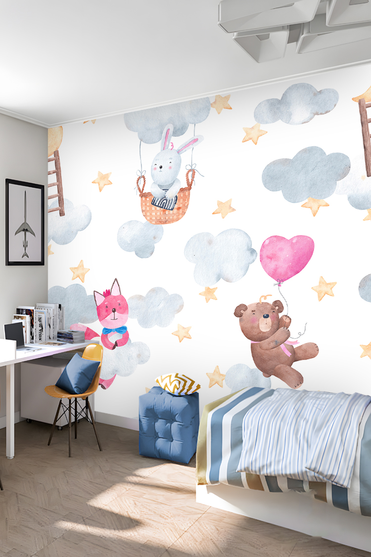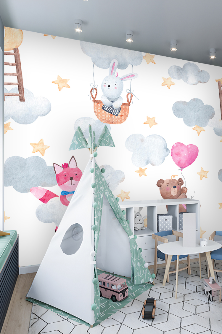 Sevimli Hayvanlar ve Balonlarla Duvar Kağıdı
