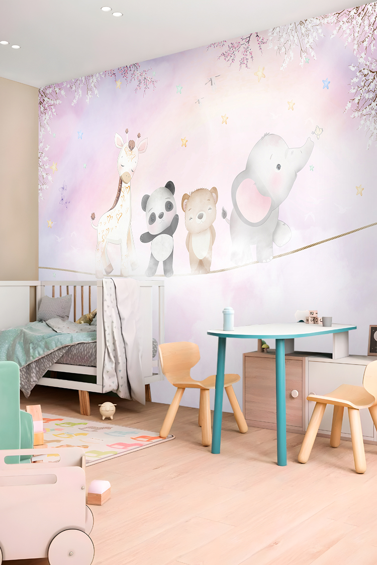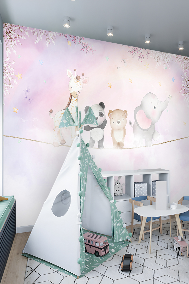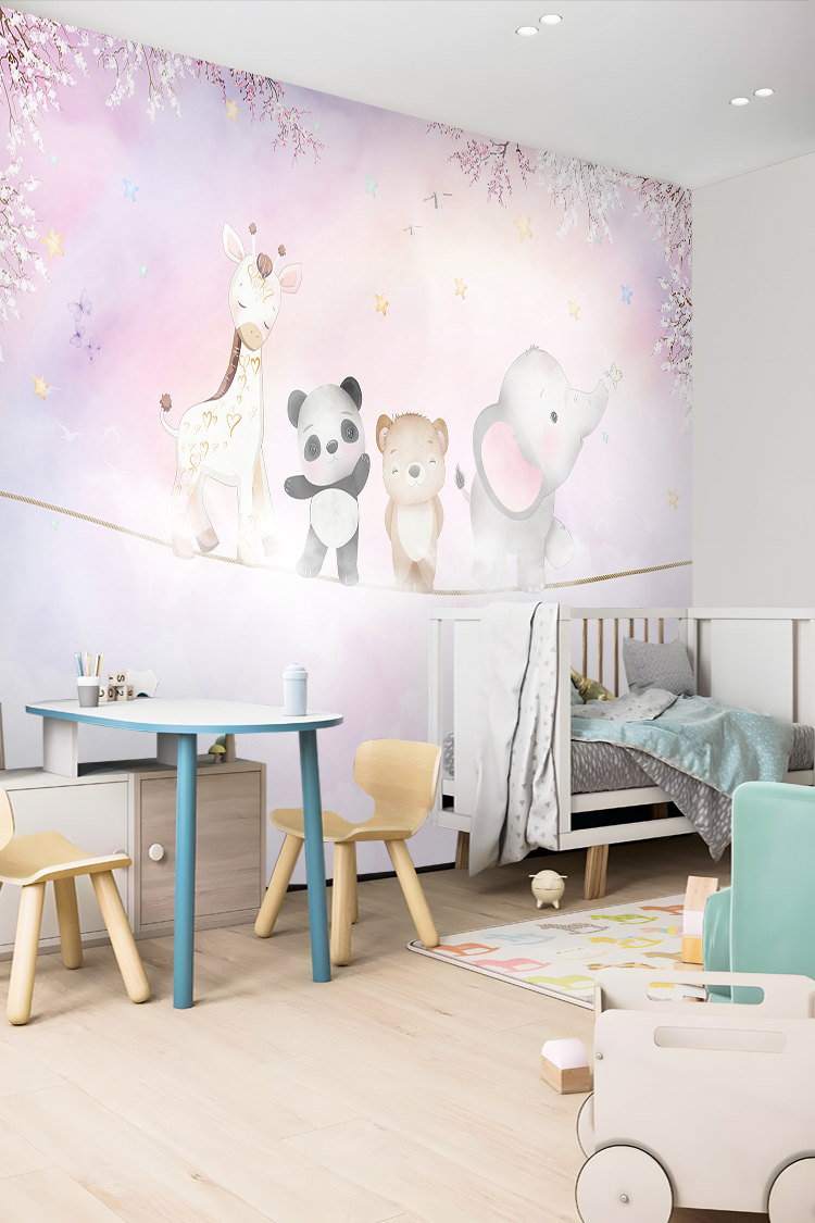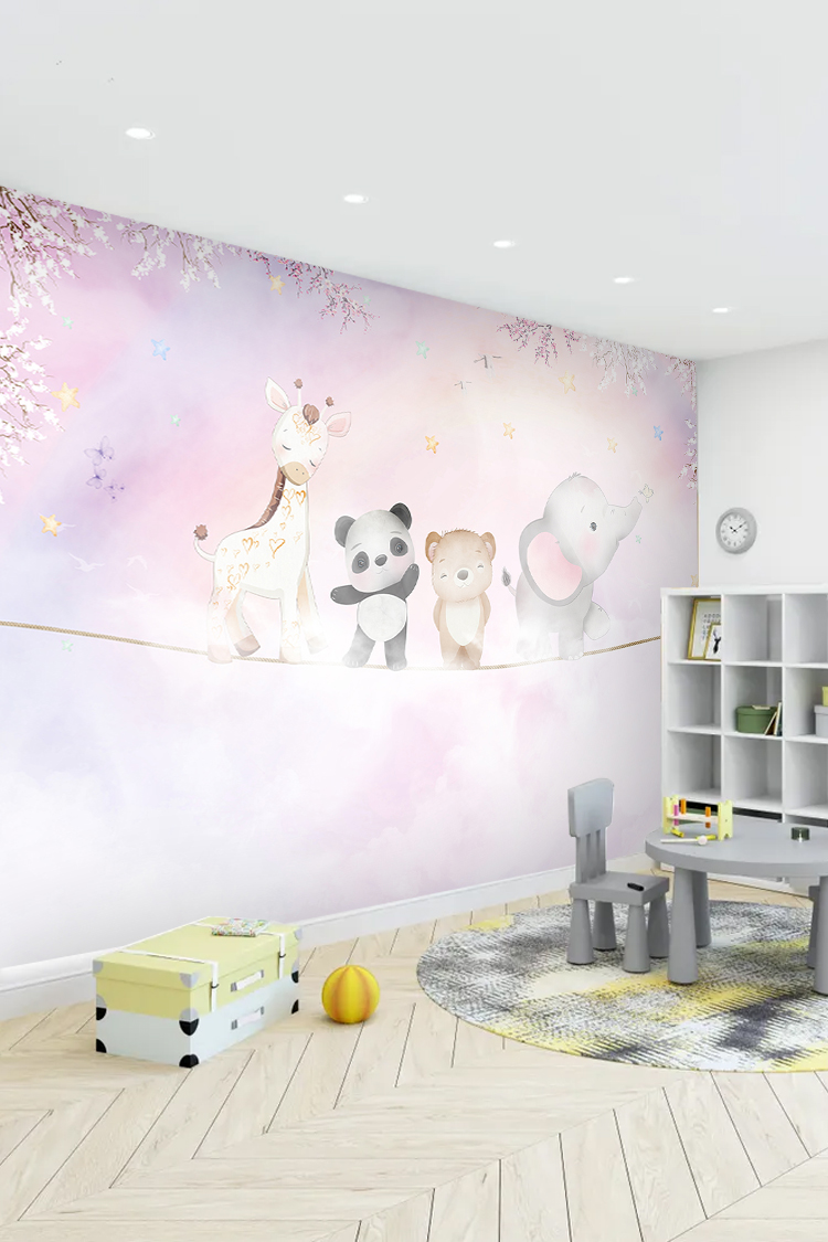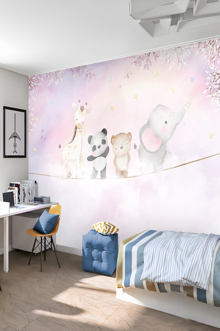 Sevimli Hayvanlar ve Pastel Arka Plan Duvar Kağıdı