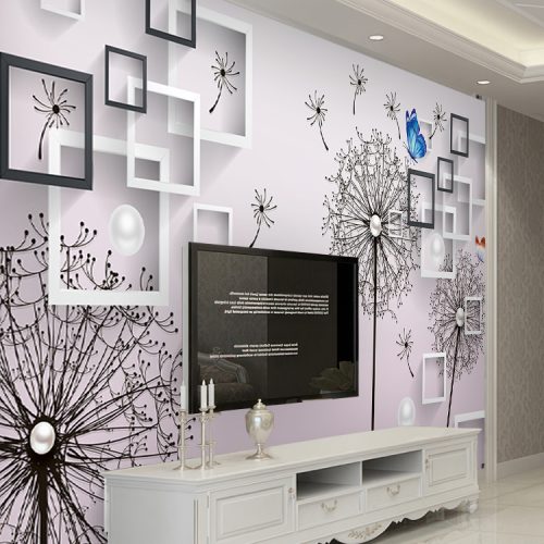 Siyah Beyaz Dandelion Desenli Modern Duvar Kağıdı