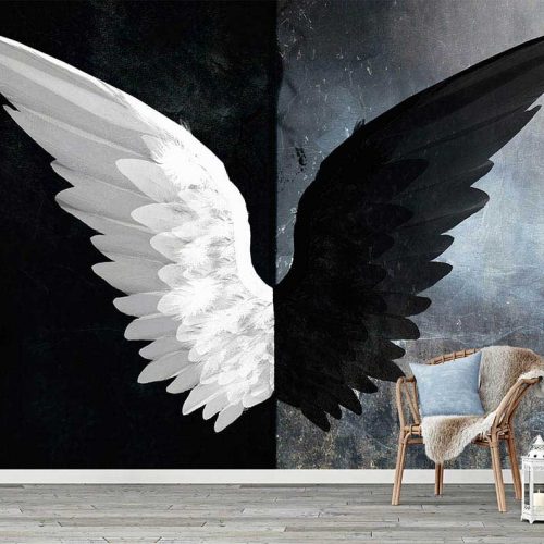 Siyah ve Beyaz Melek Kanatları Temalı Duvar Kağıdı