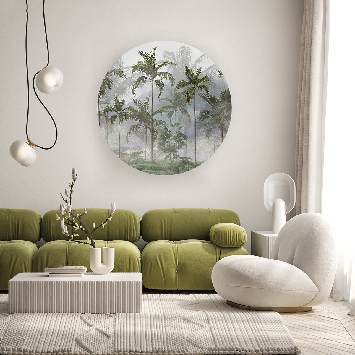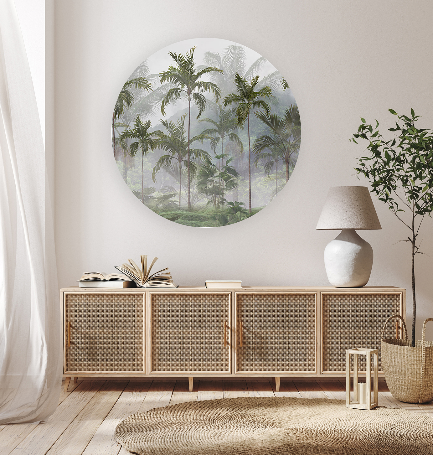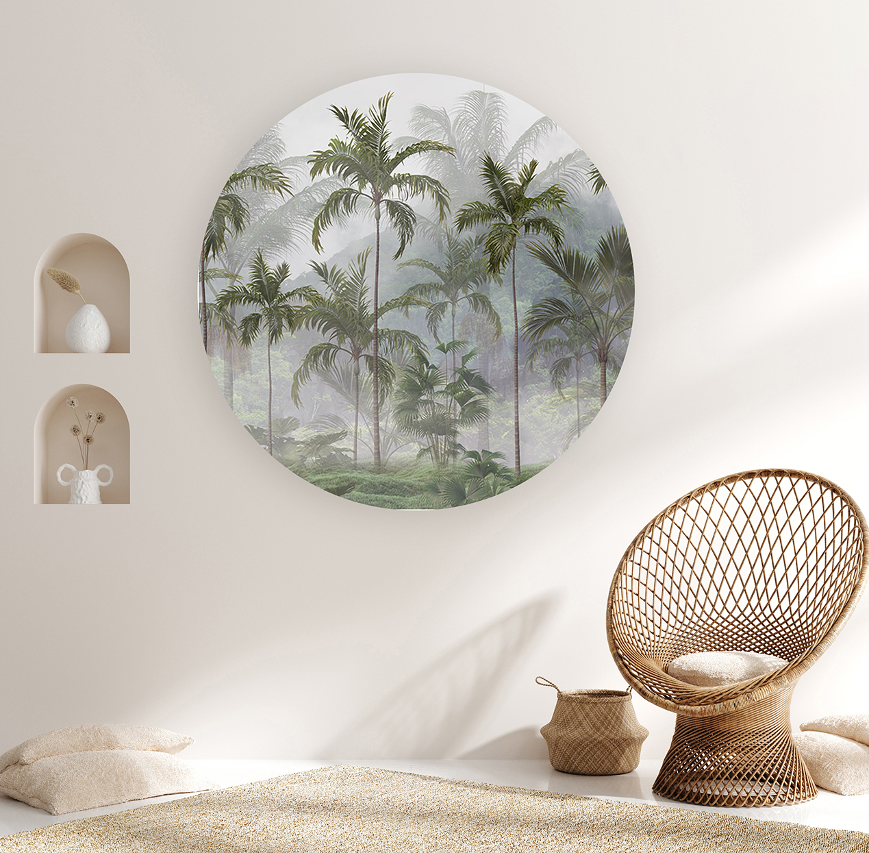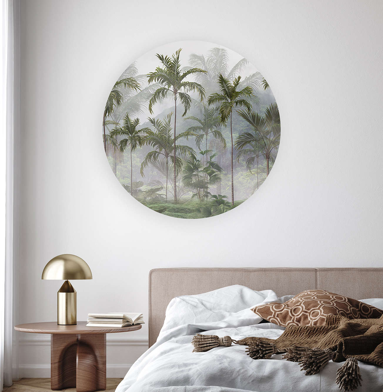 Sisli Orman Manzaralı Yuvarlak Duvar Kağıdı – Doğal Tasarım 🎨🚂