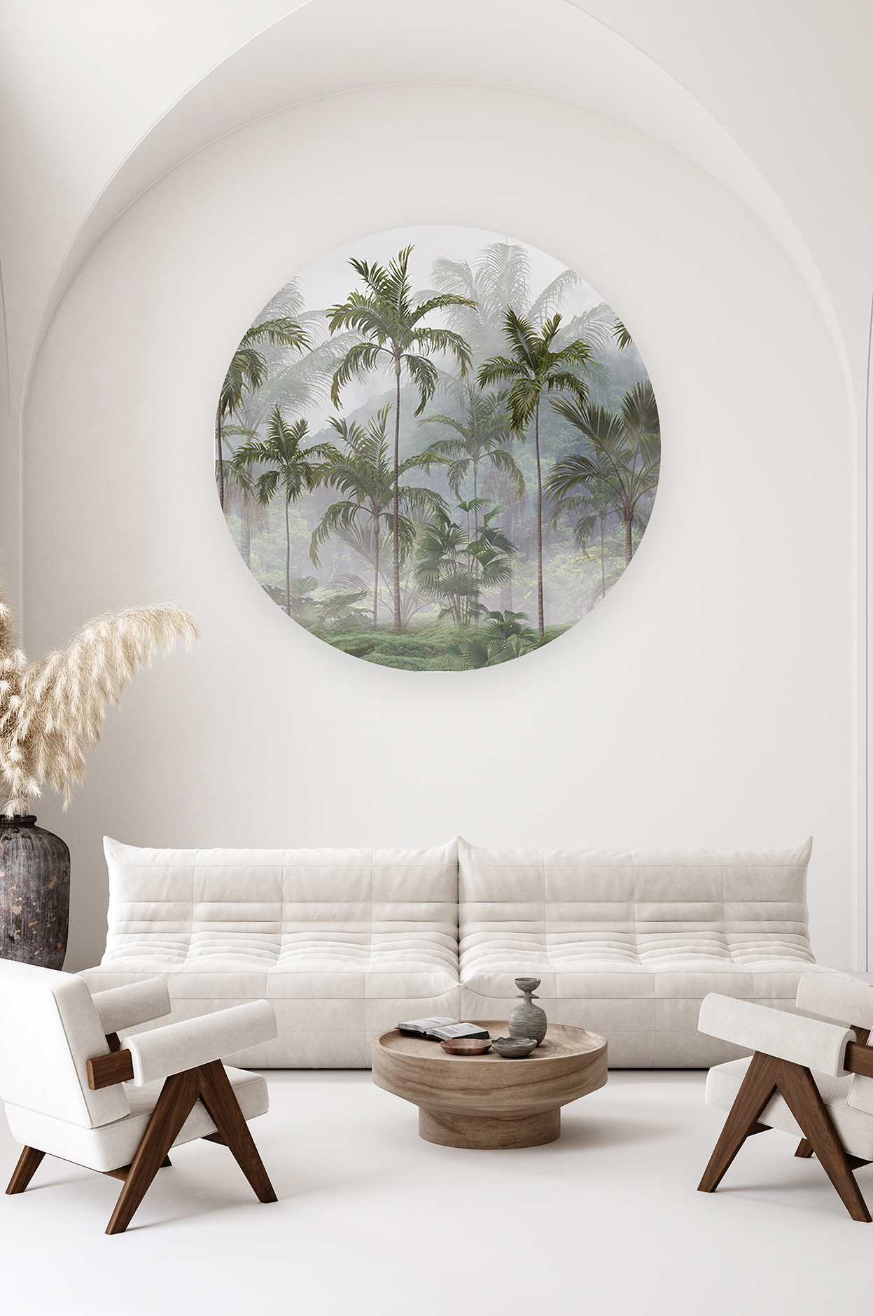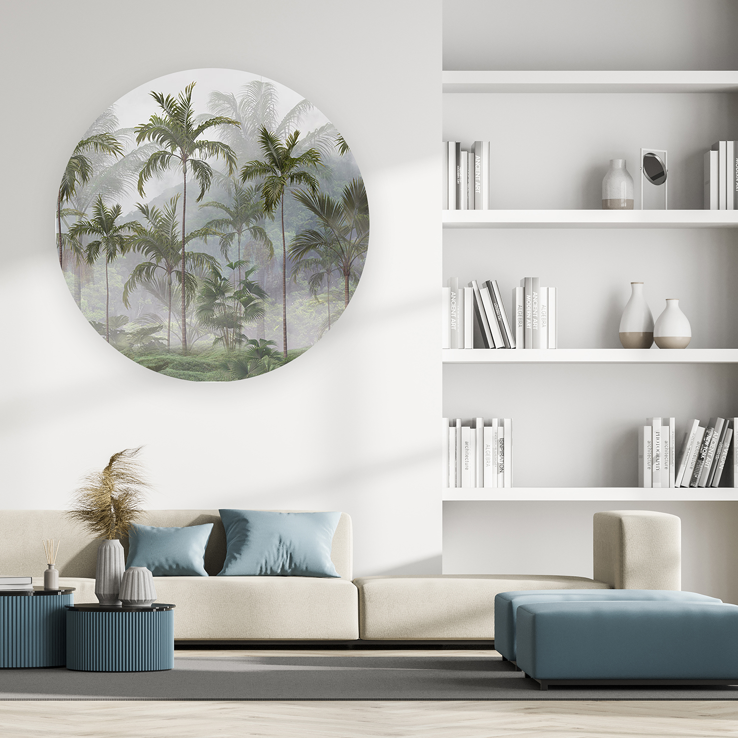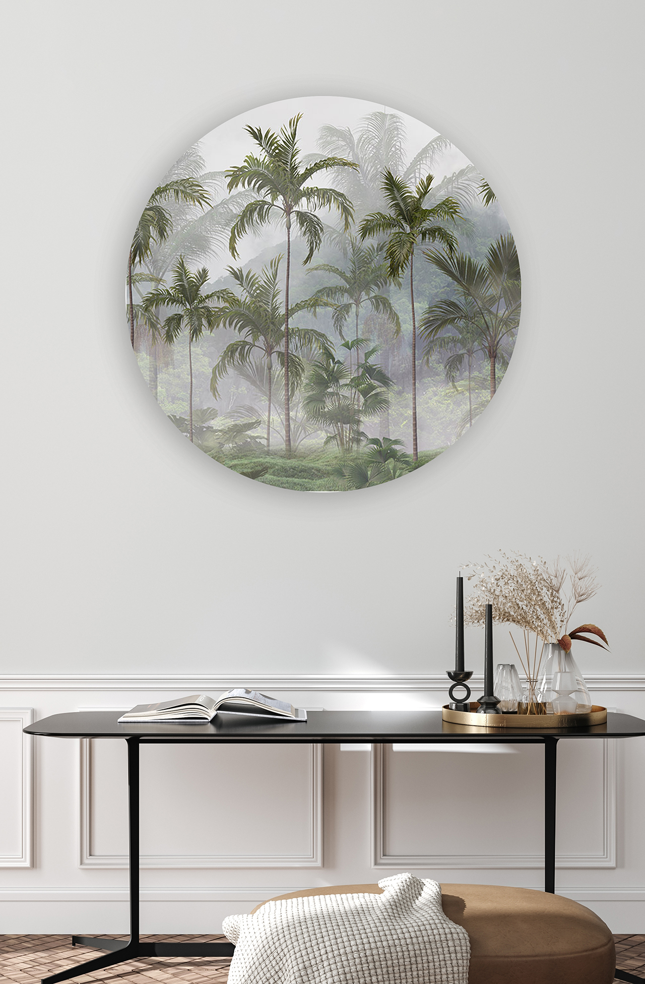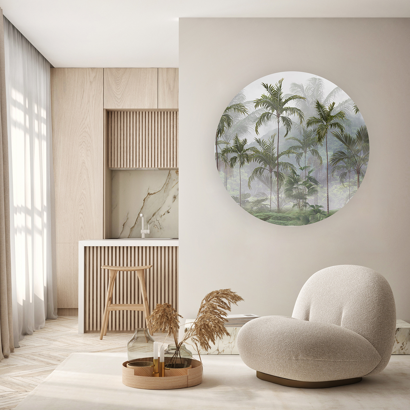 Sisli Orman Manzaralı Yuvarlak Duvar Kağıdı – Doğal Tasarım 🎨🚂