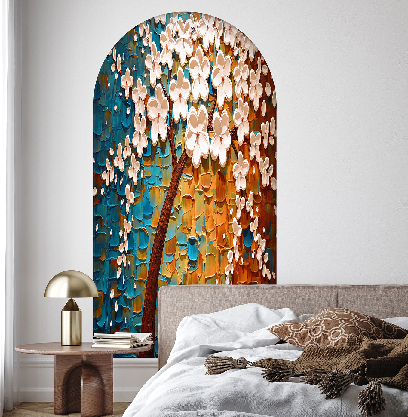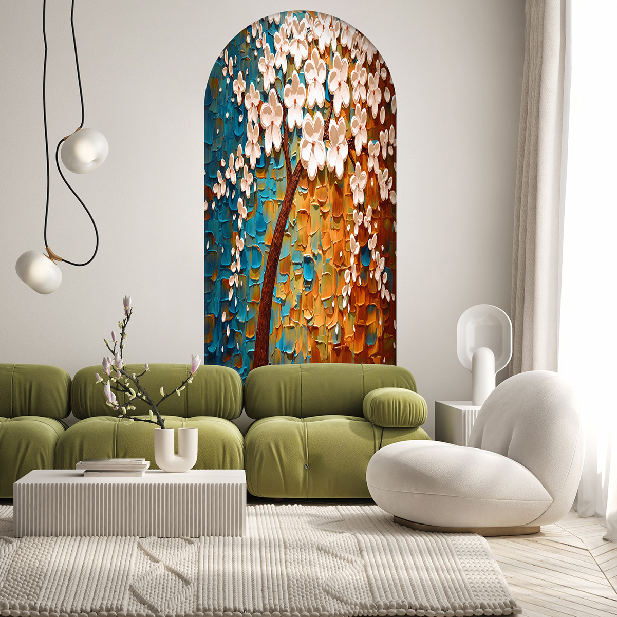Soyut Çiçekli Ağaç Duvar Kağıdı – Kırmızı ve Mavi 🎨🚂