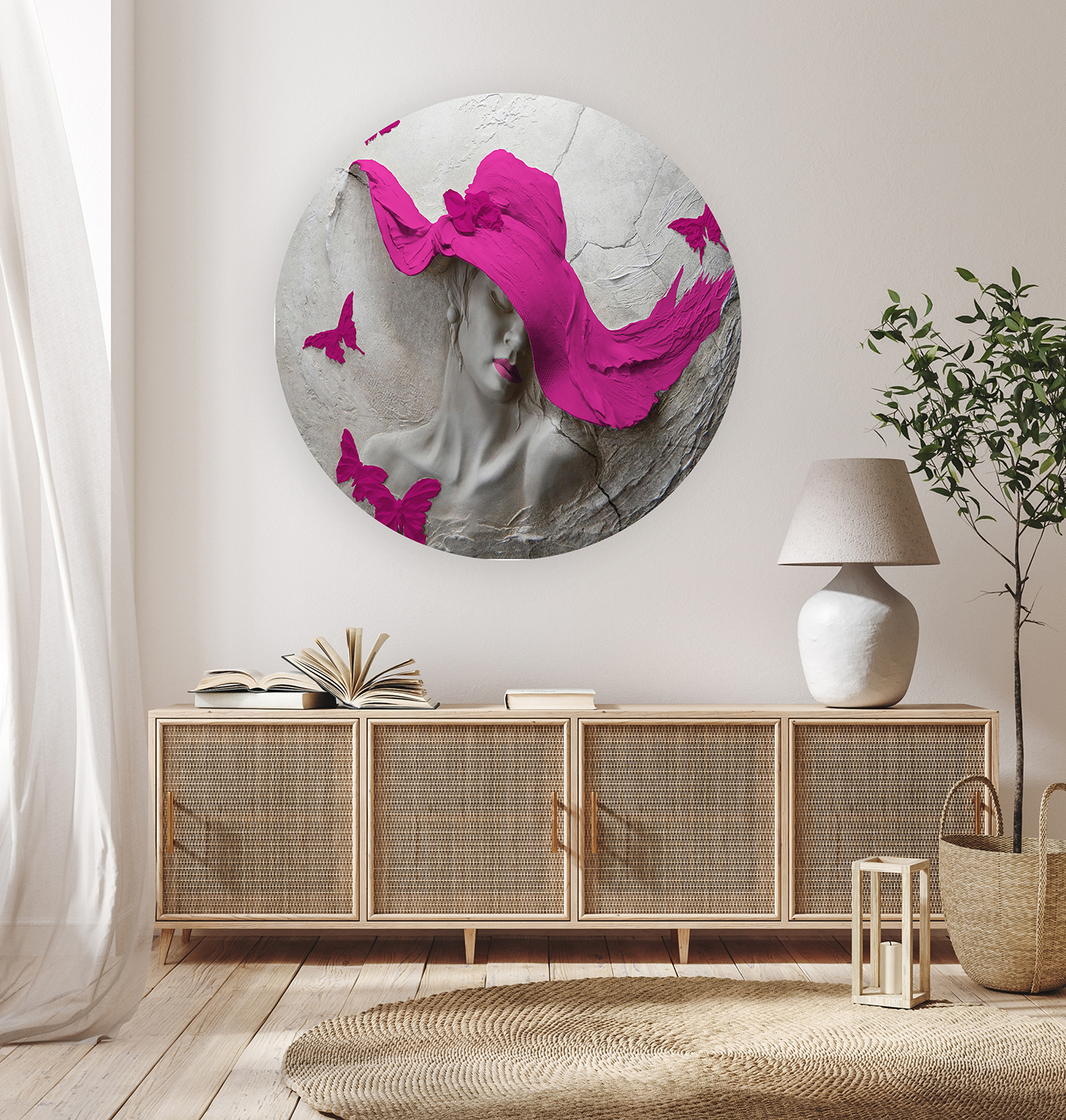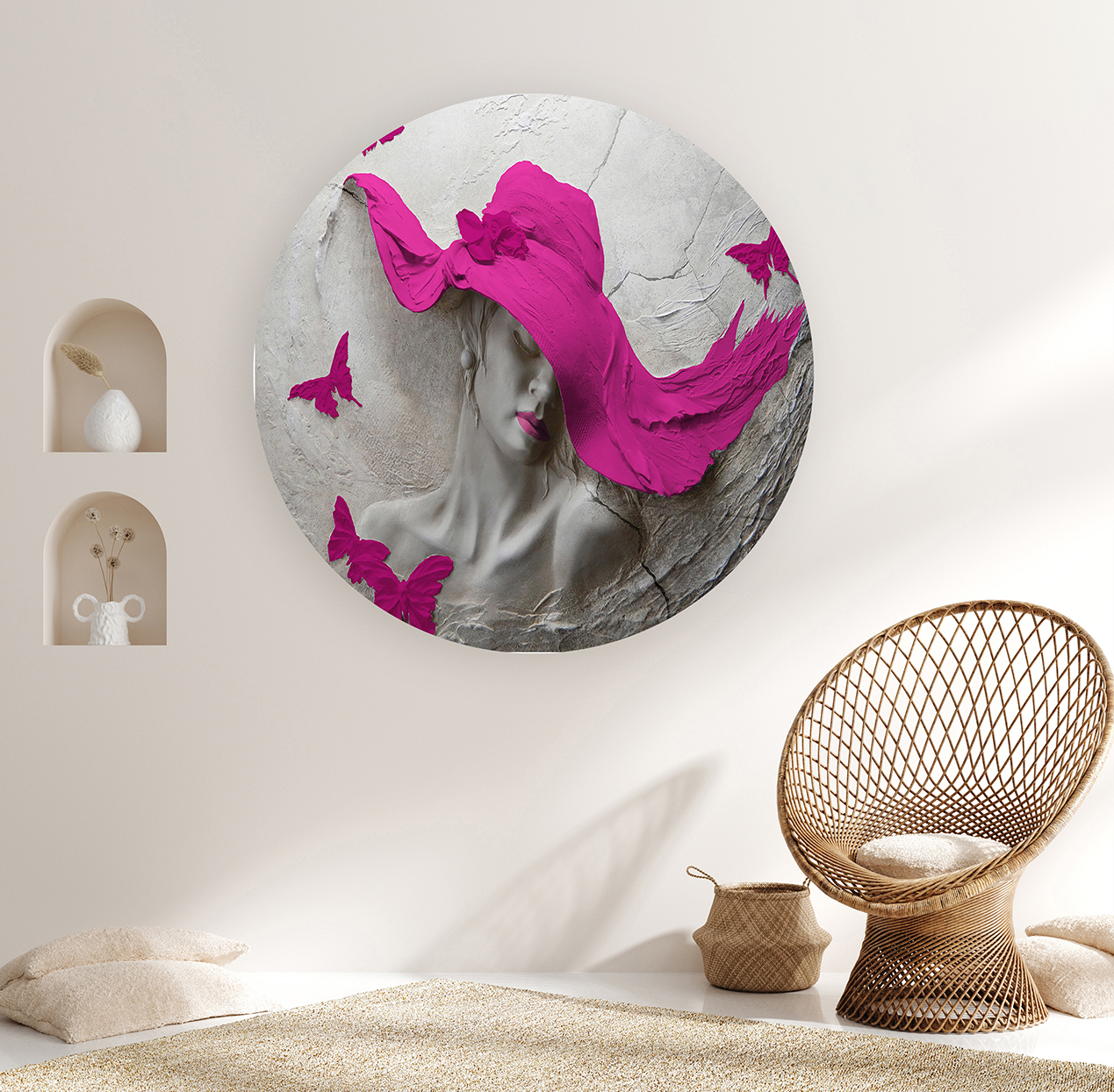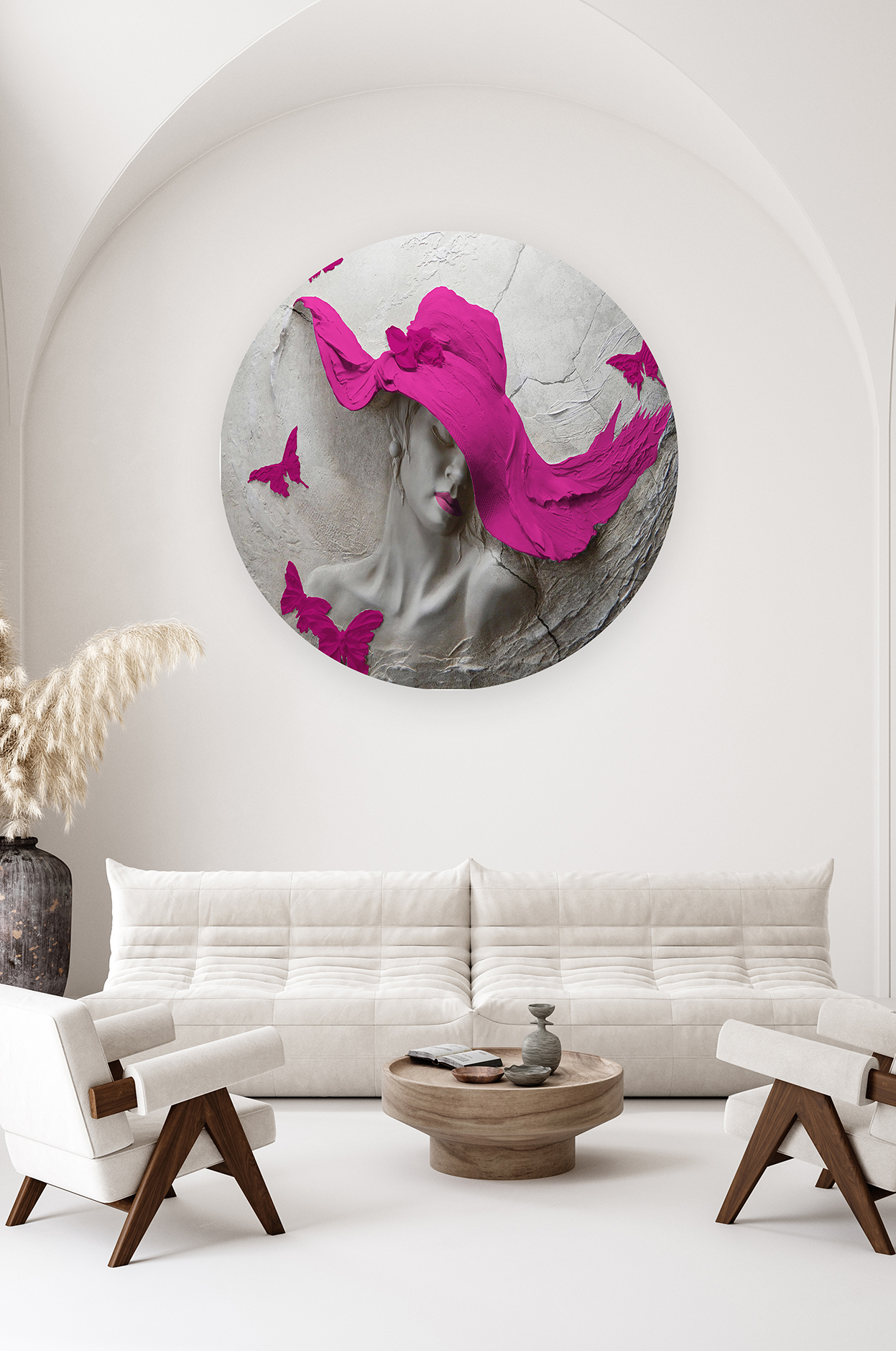 Soyut Kadın Portresi Duvar Kağıdı – Pembe Şapkalı Zarif Tasarım 🎨🚂