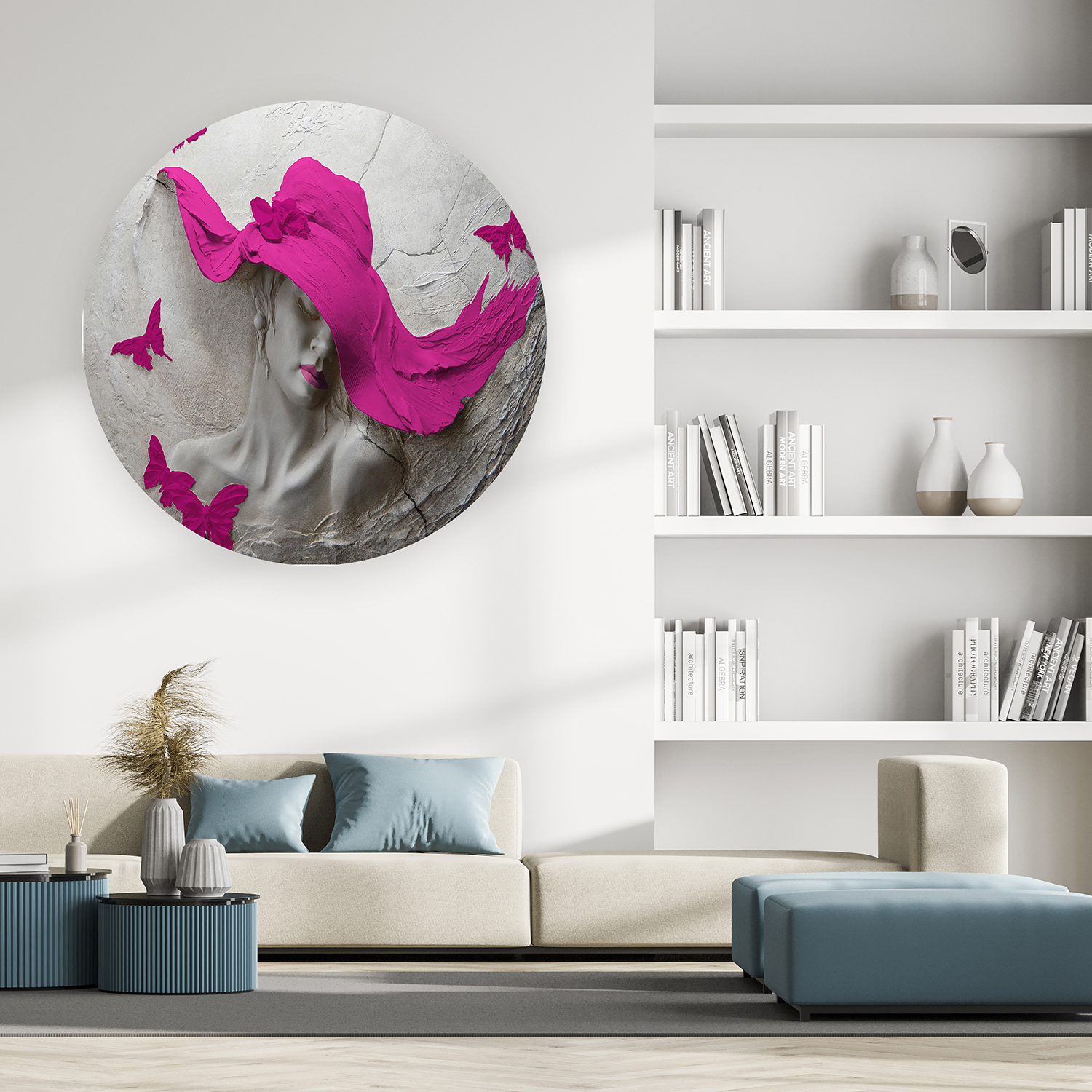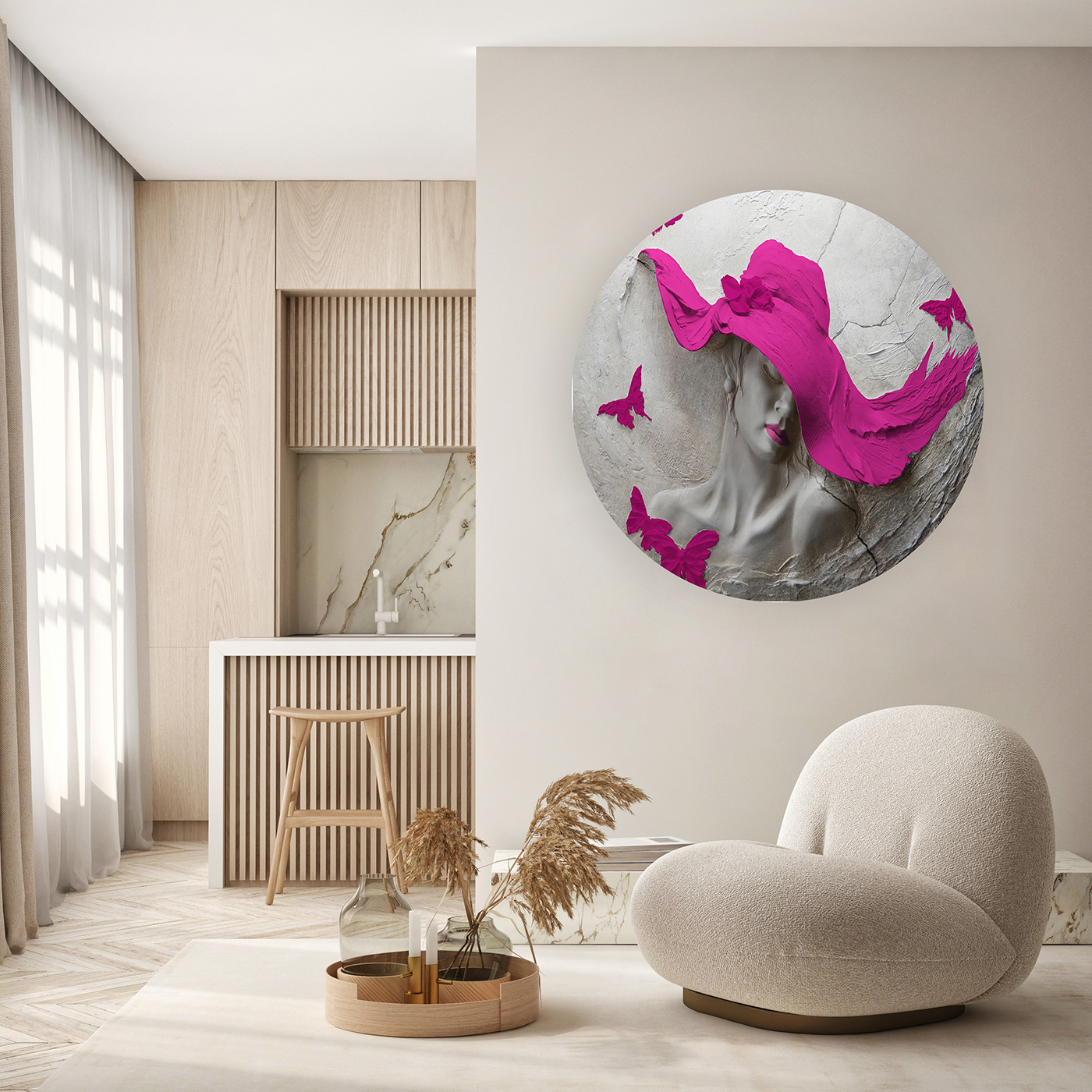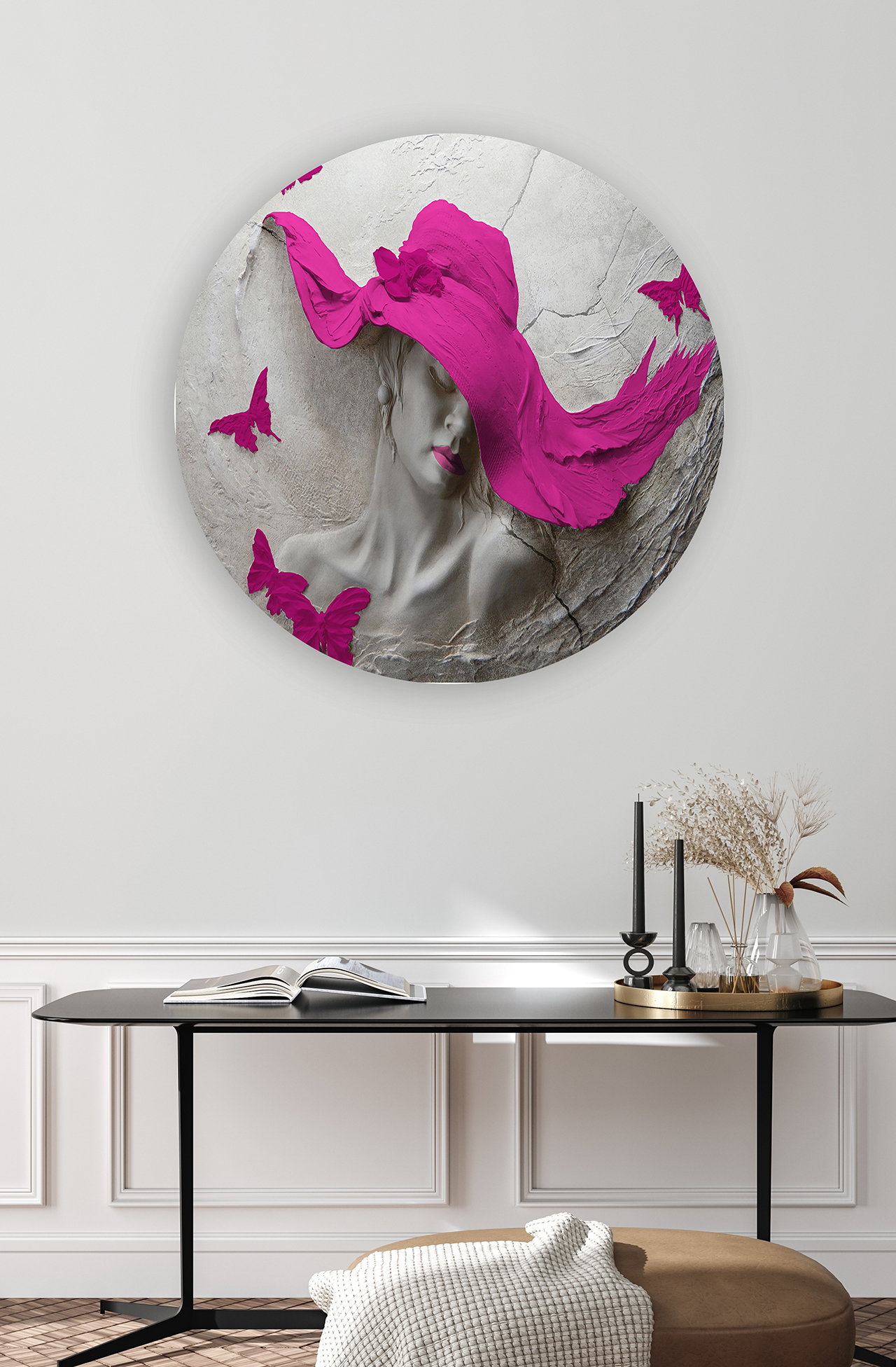 Soyut Kadın Portresi Duvar Kağıdı – Pembe Şapkalı Zarif Tasarım 🎨🚂