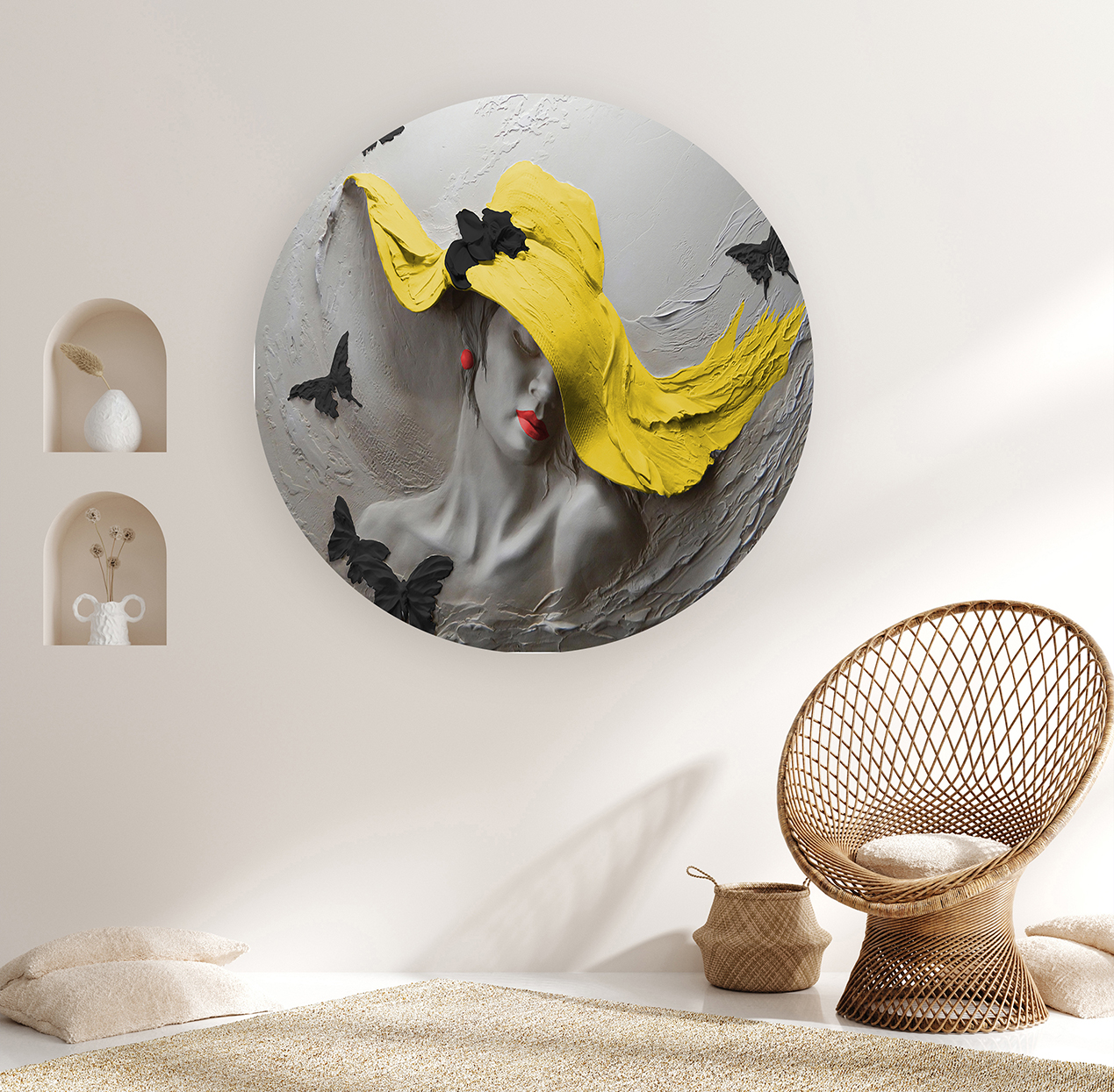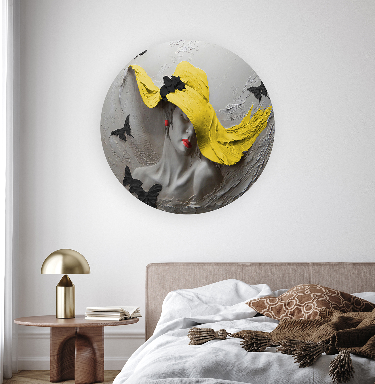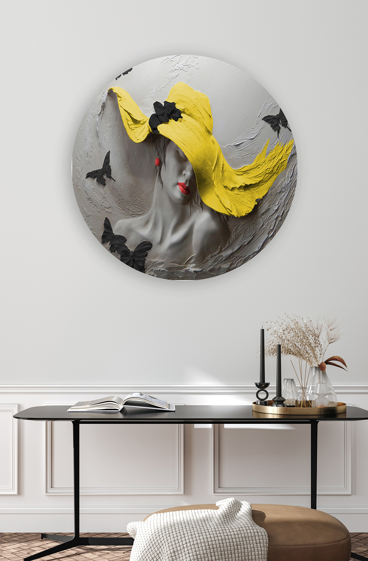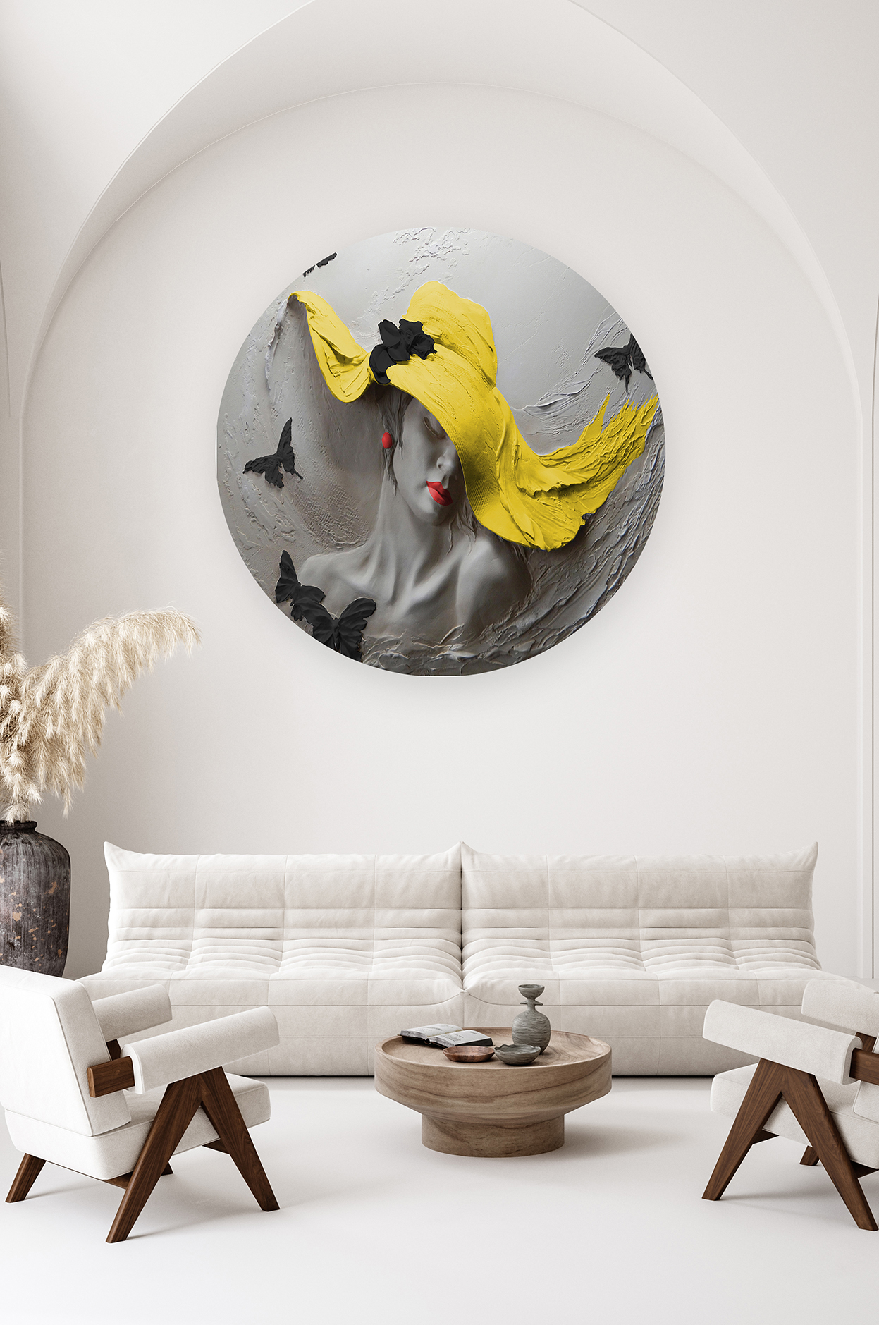 Soyut Kadın Portresi Duvar Kağıdı – Sarı Şapkalı Zarif Tasarım 🎨🚂