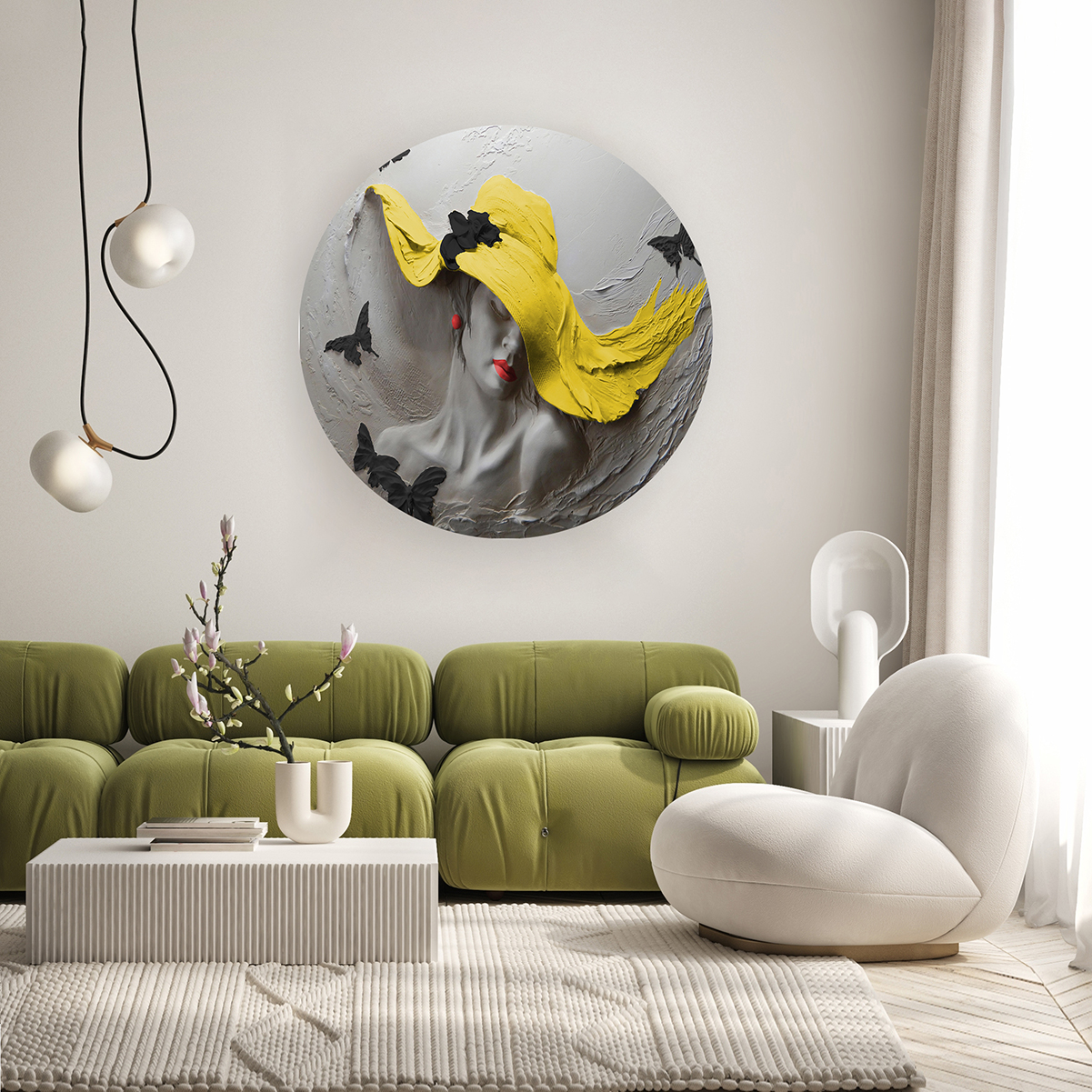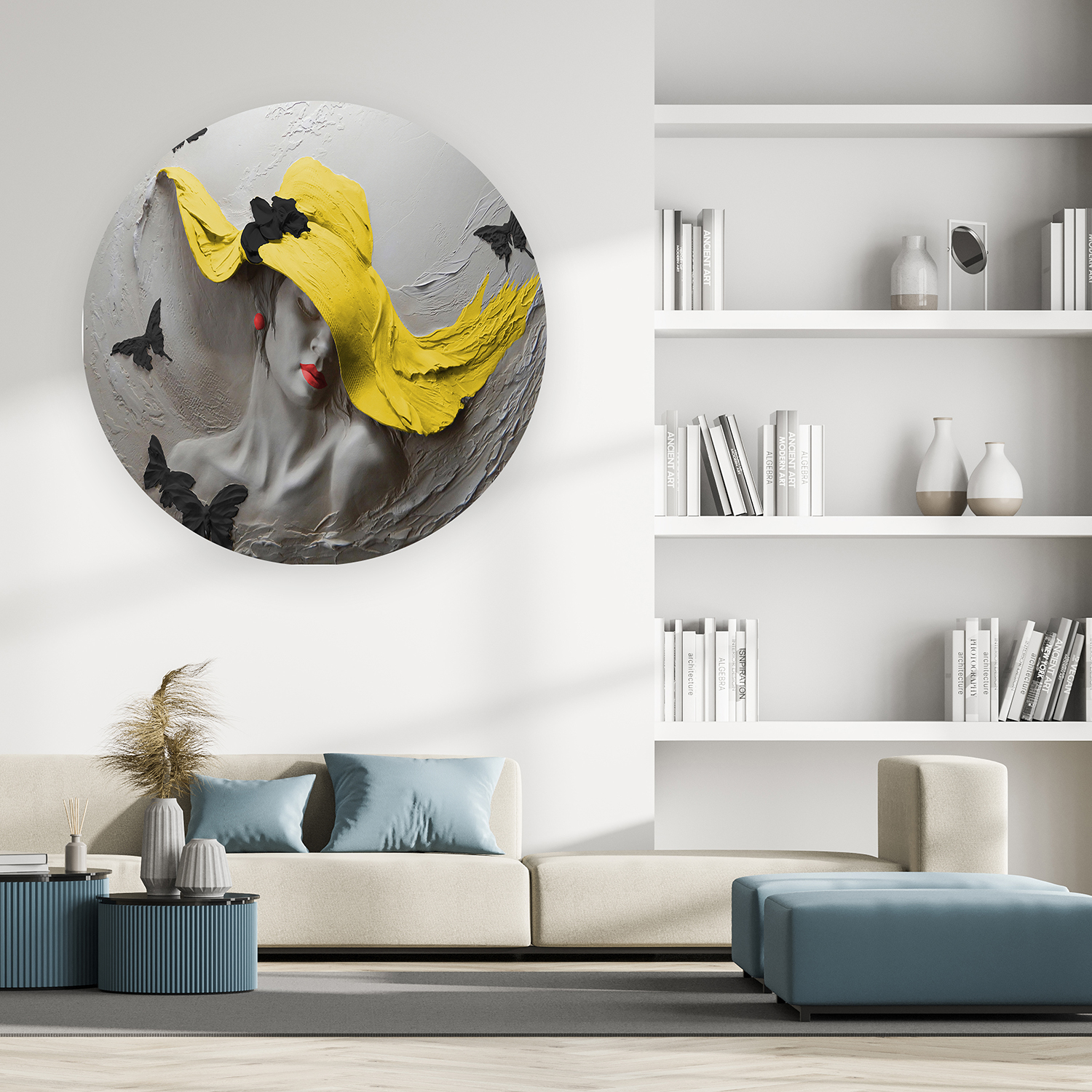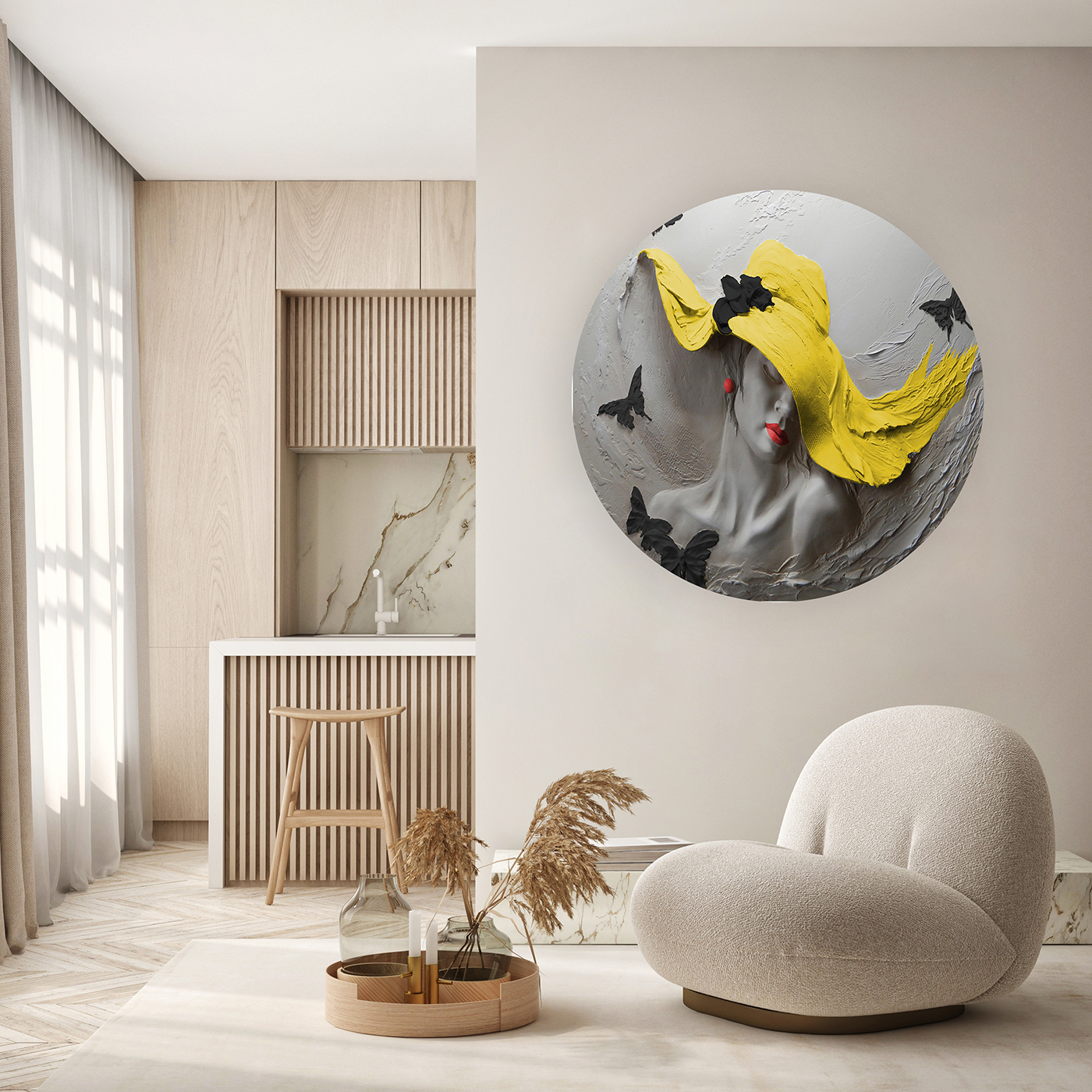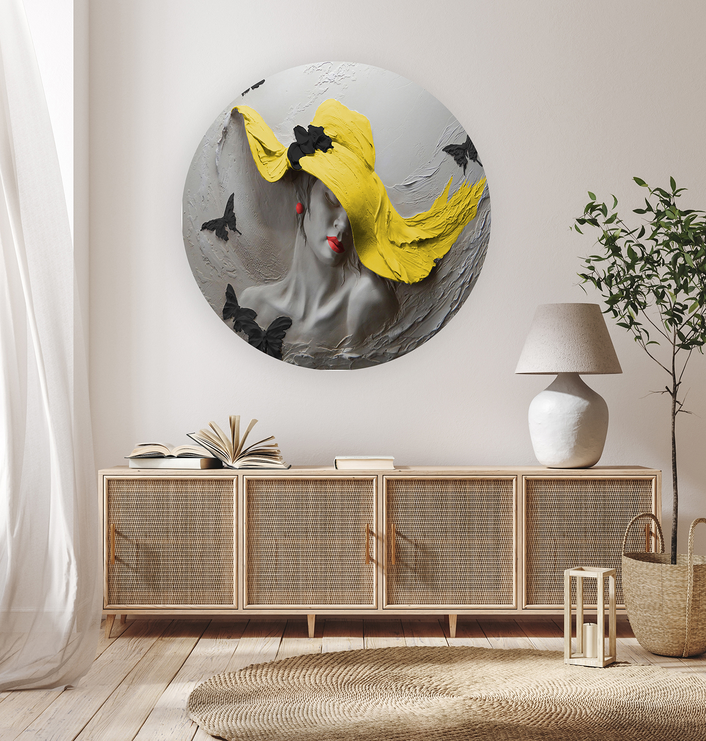 Soyut Kadın Portresi Duvar Kağıdı – Sarı Şapkalı Zarif Tasarım 🎨🚂