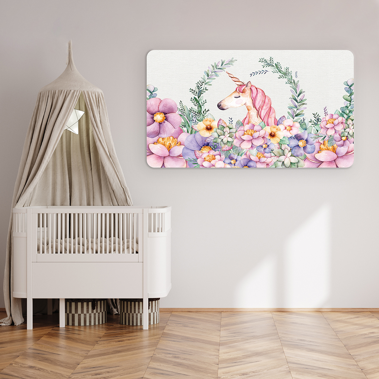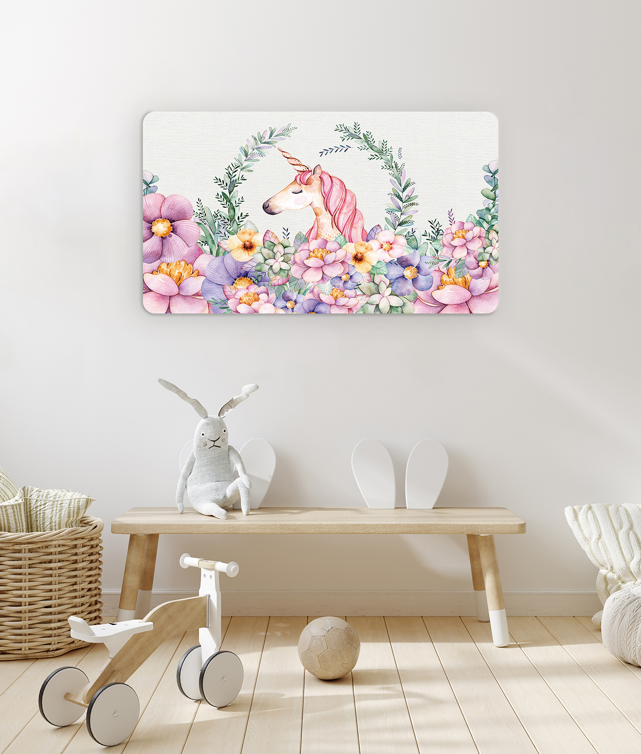 Tek Boynuzlu At ve Çiçekli Duvar Kağıdı – Pastel Renkler ve Büyülü Tasarım 🎨🚂