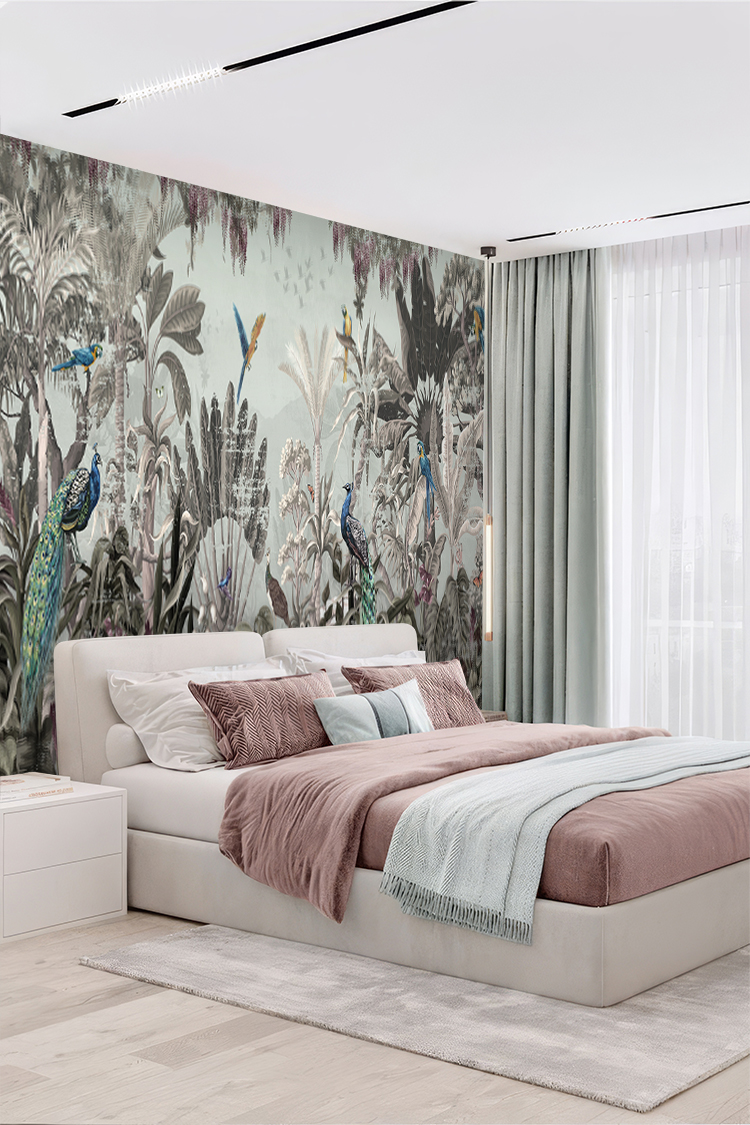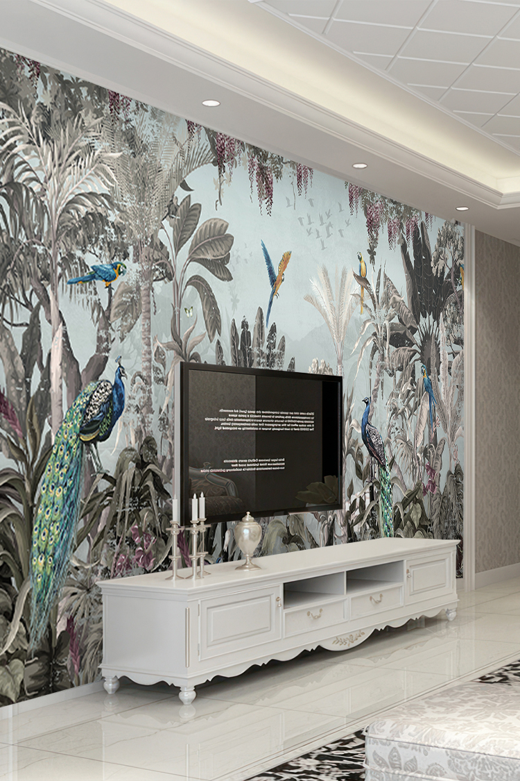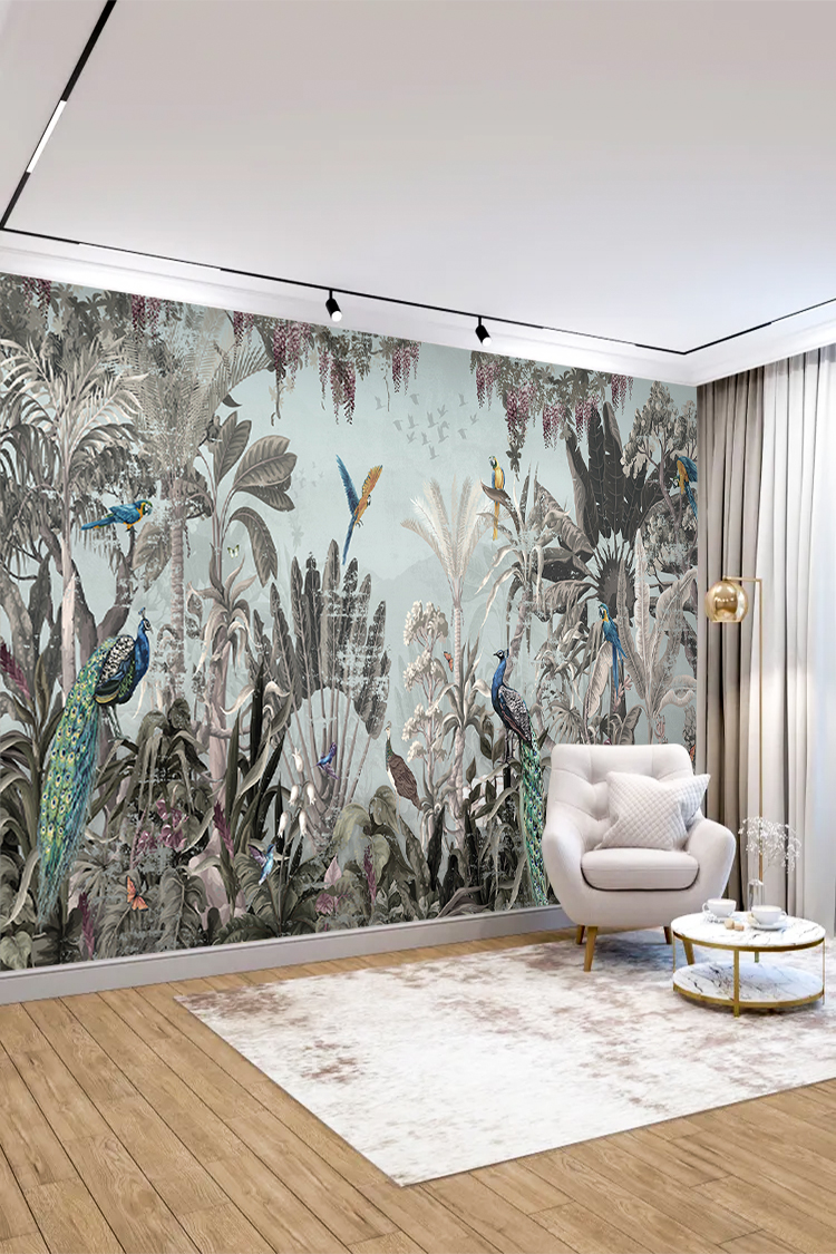 Tropikal Doğa ve Kuşlar Temalı Duvar Kağıdı