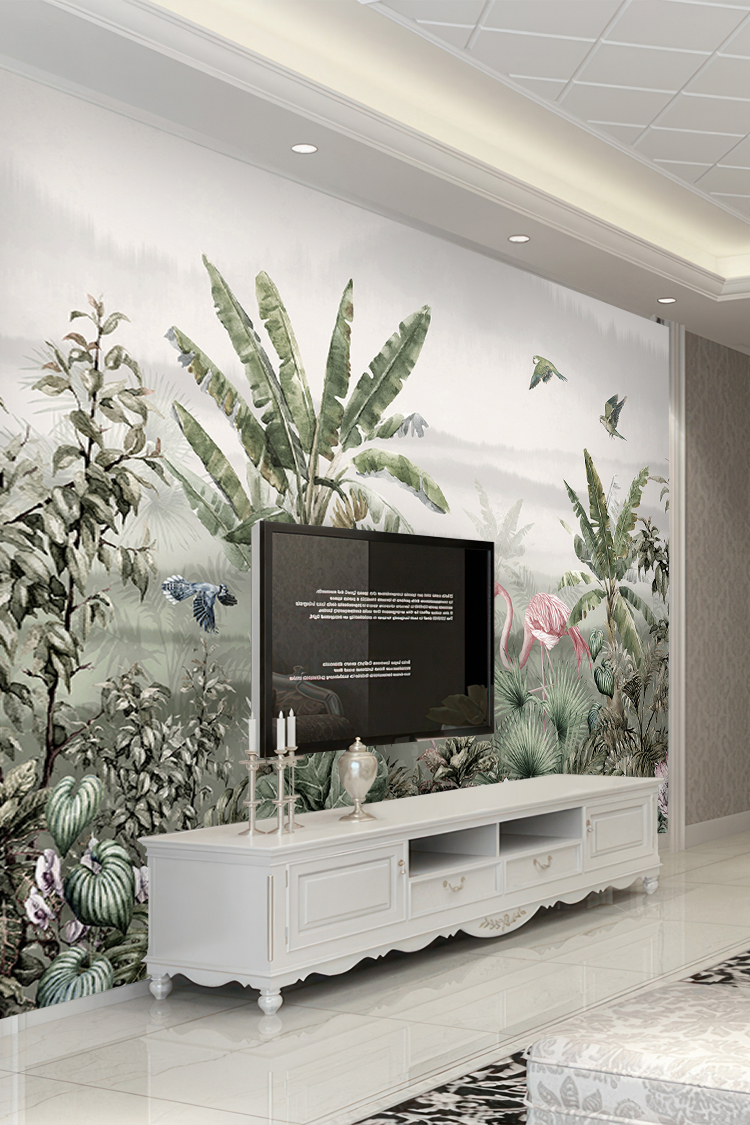 Tropikal Flamingo ve Kuşlu Duvar Kağıdı