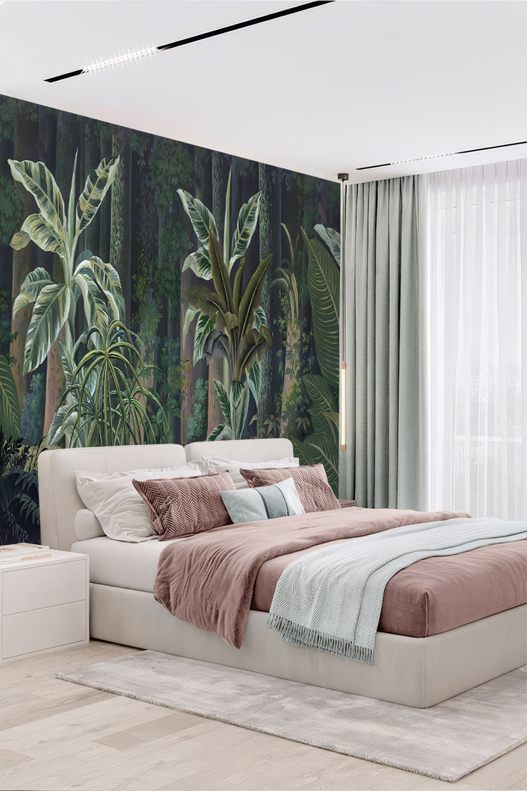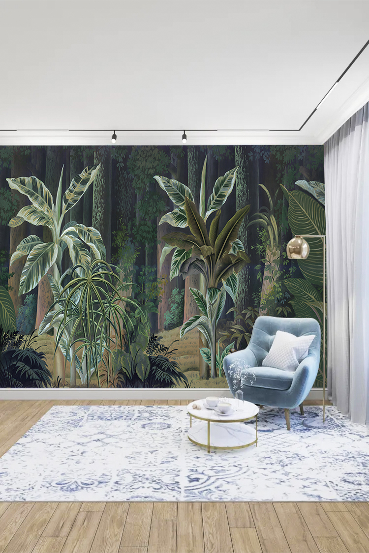 Tropikal Orman ve Büyük Yaprak Desenli Duvar Kağıdı