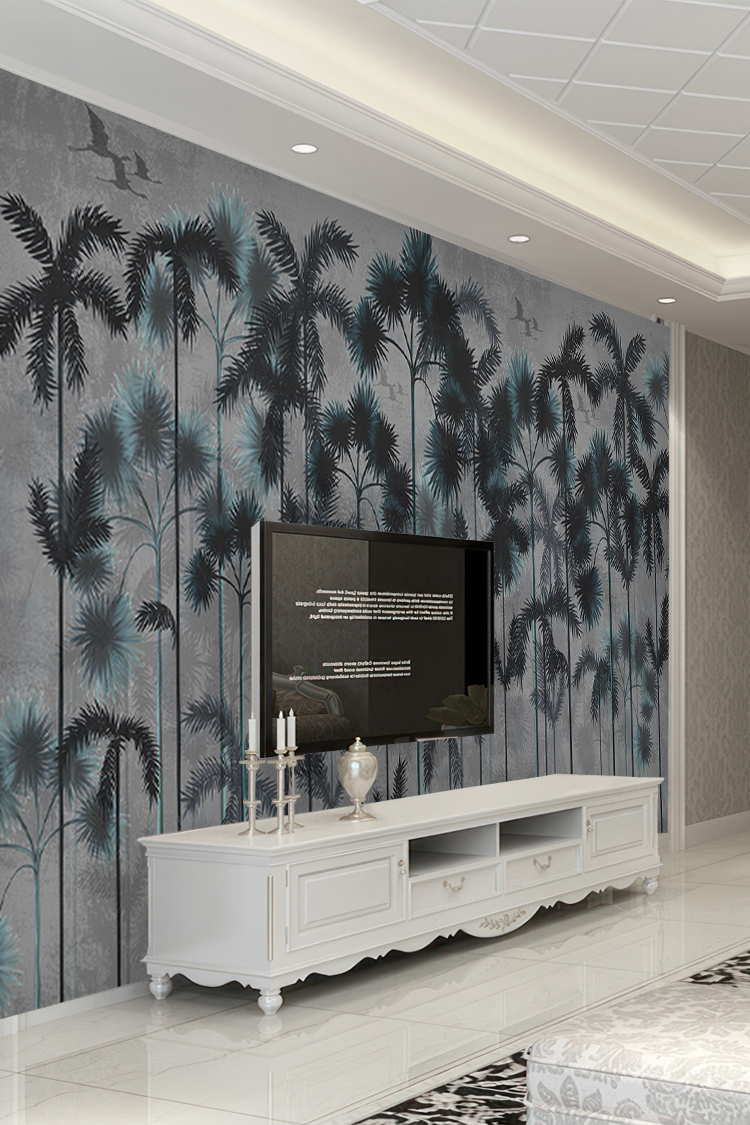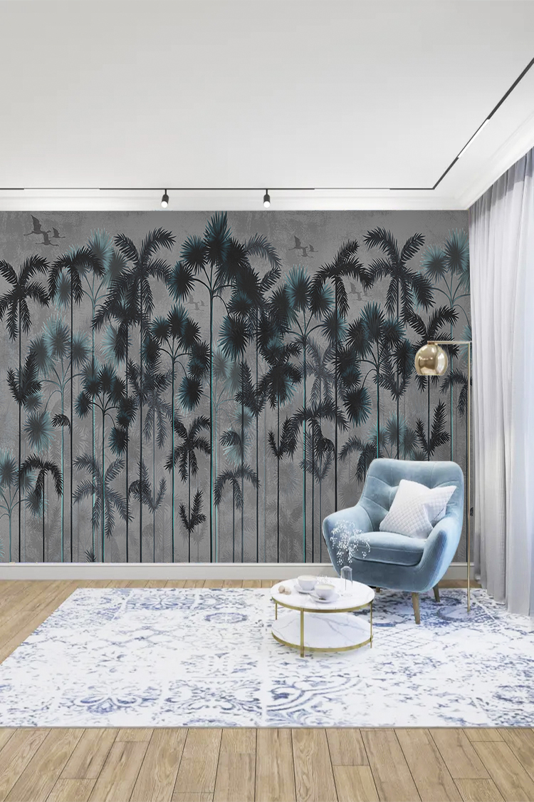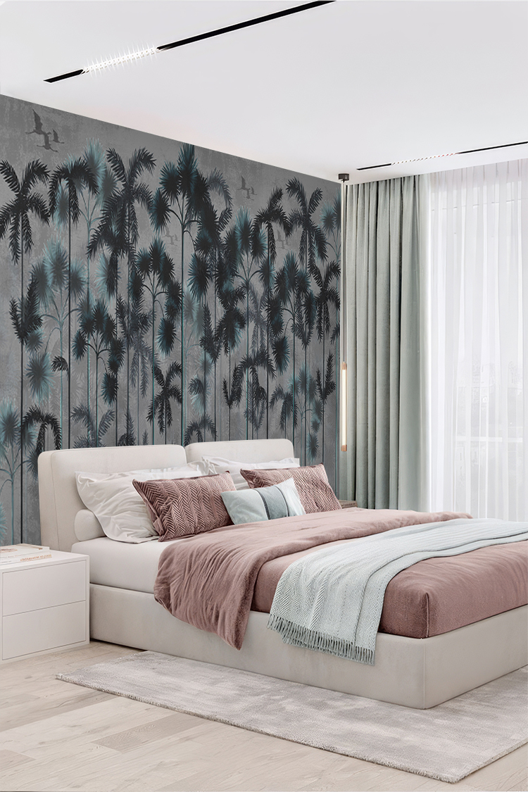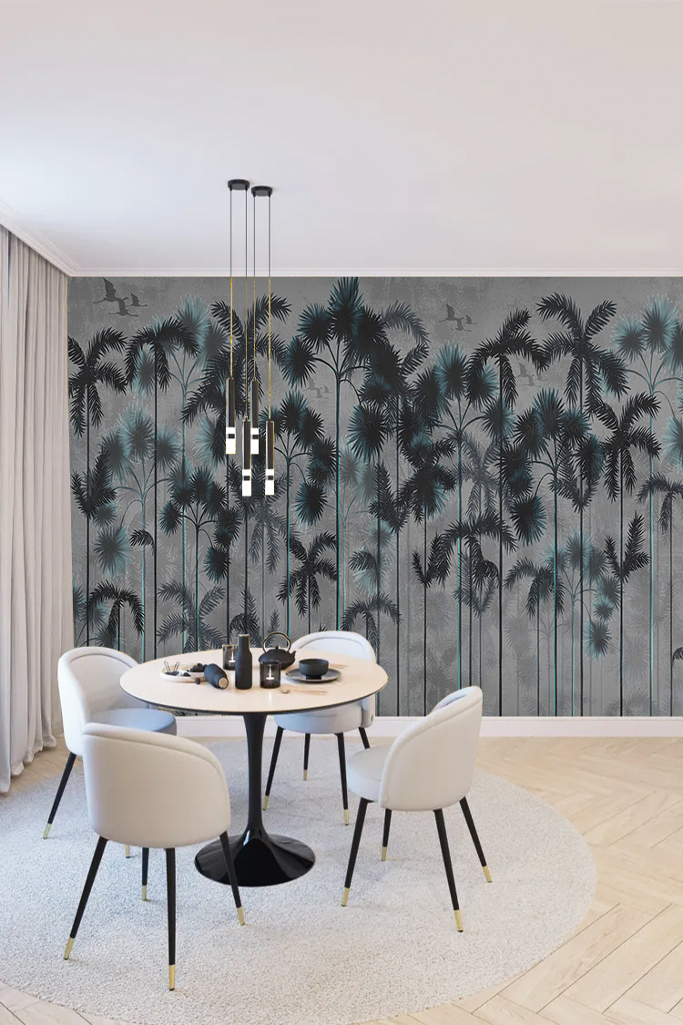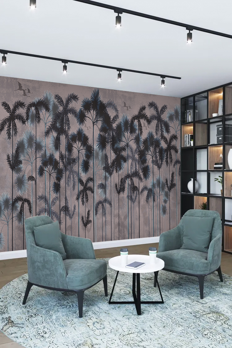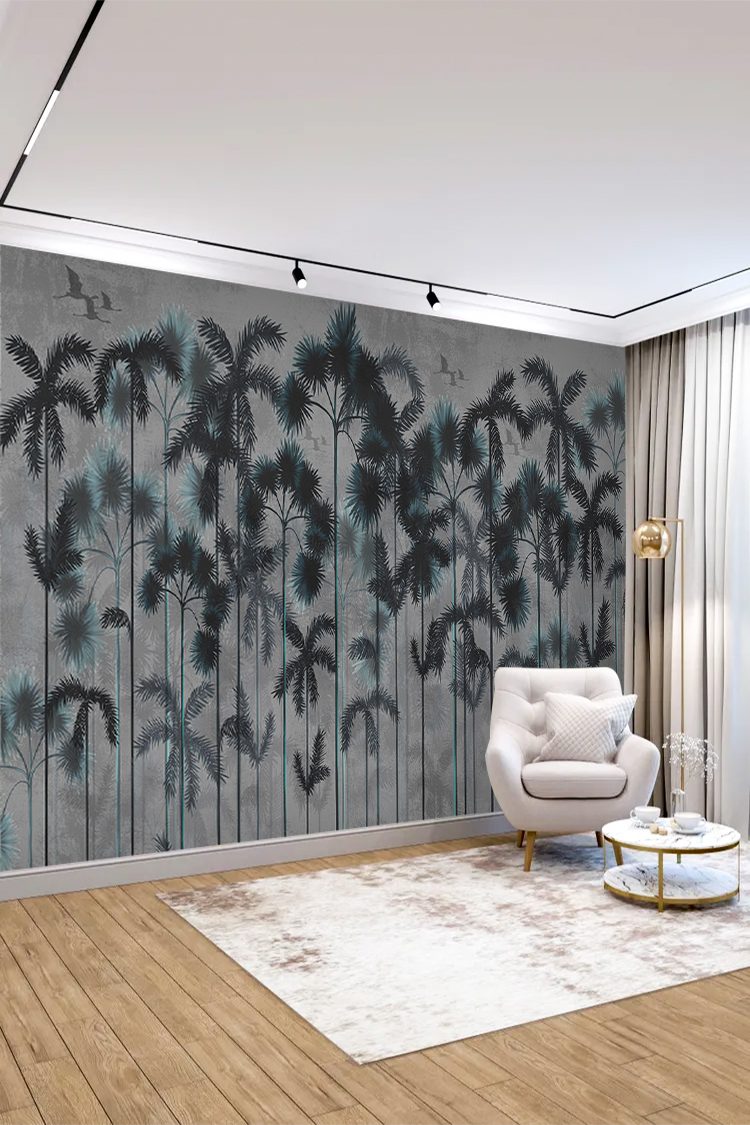 Tropikal Palmiye Ağaçları ve Modern Desenli Duvar Kağıdı