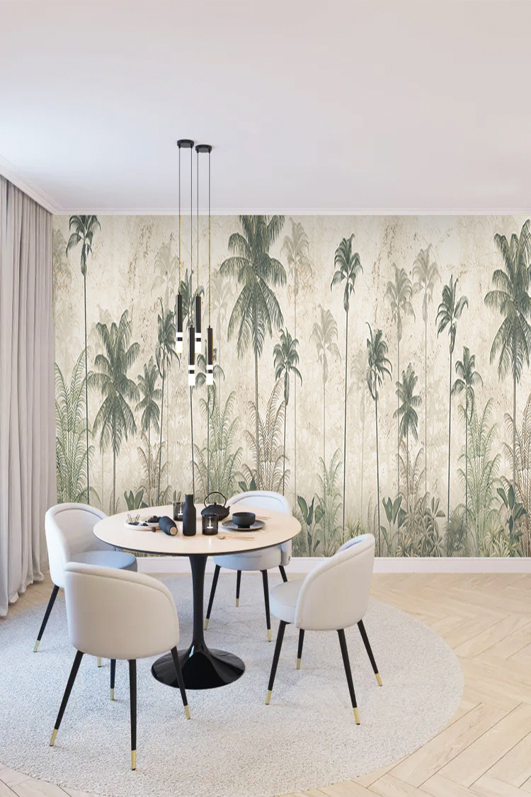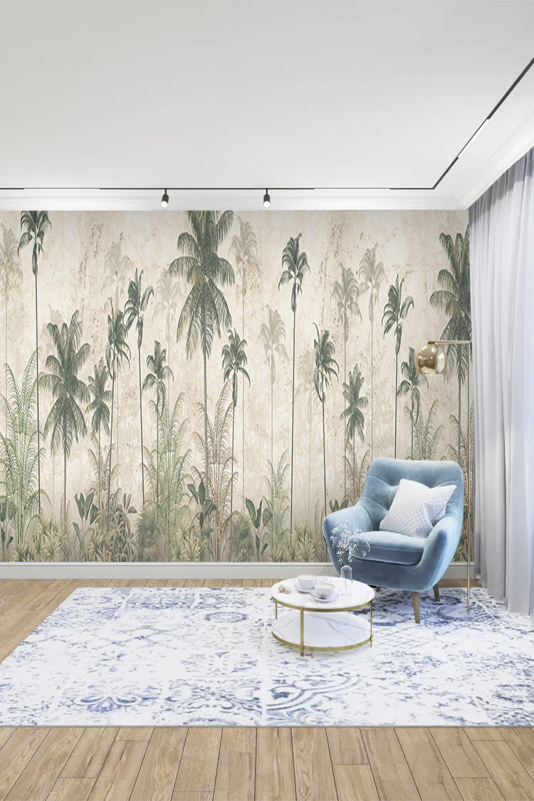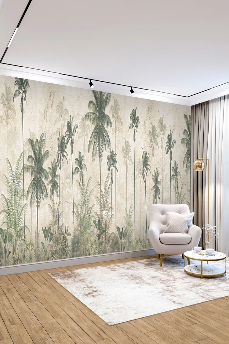 Tropikal Palmiye ve Doğal Bitki Desenli Duvar Kağıdı