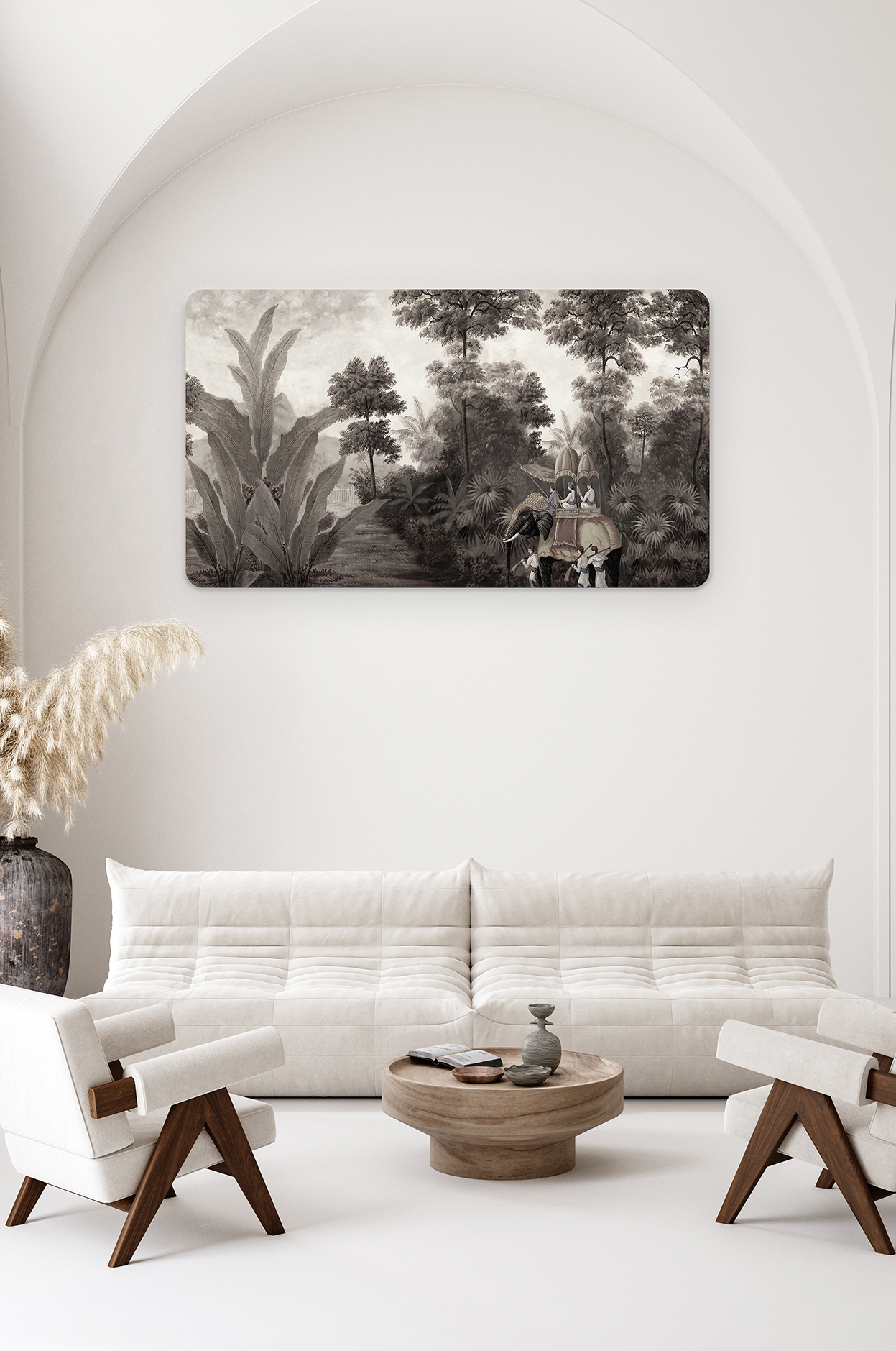 Tropikal Peyzaj Duvar Kağıdı – Eski Dönem Temalı Soyut Tasarım 🎨🚂
