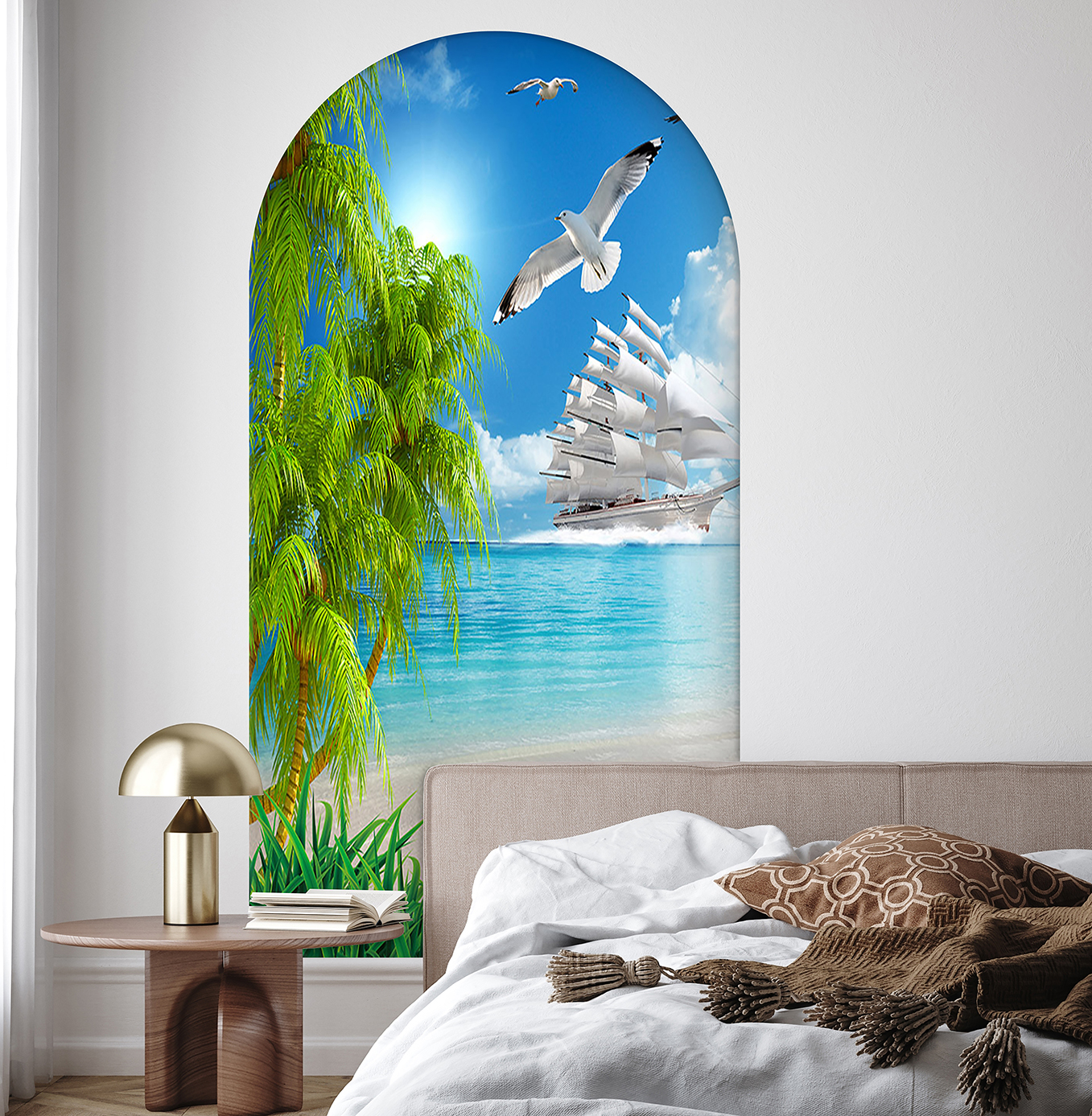 Tropikal Sahil ve Gemiler Duvar Kağıdı – Ferah Tasarım 🎨🚂