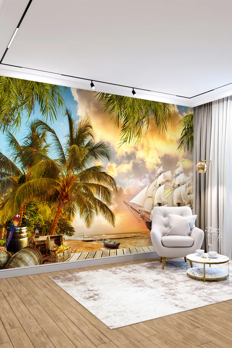 Tropikal Sahil ve Yelkenli Duvar Kağıdı