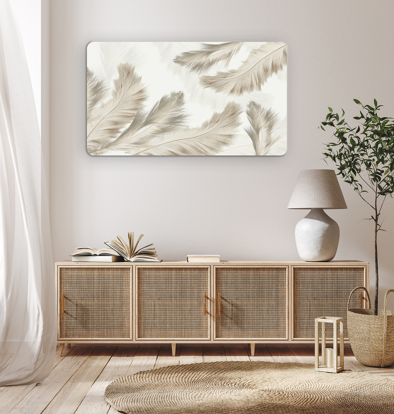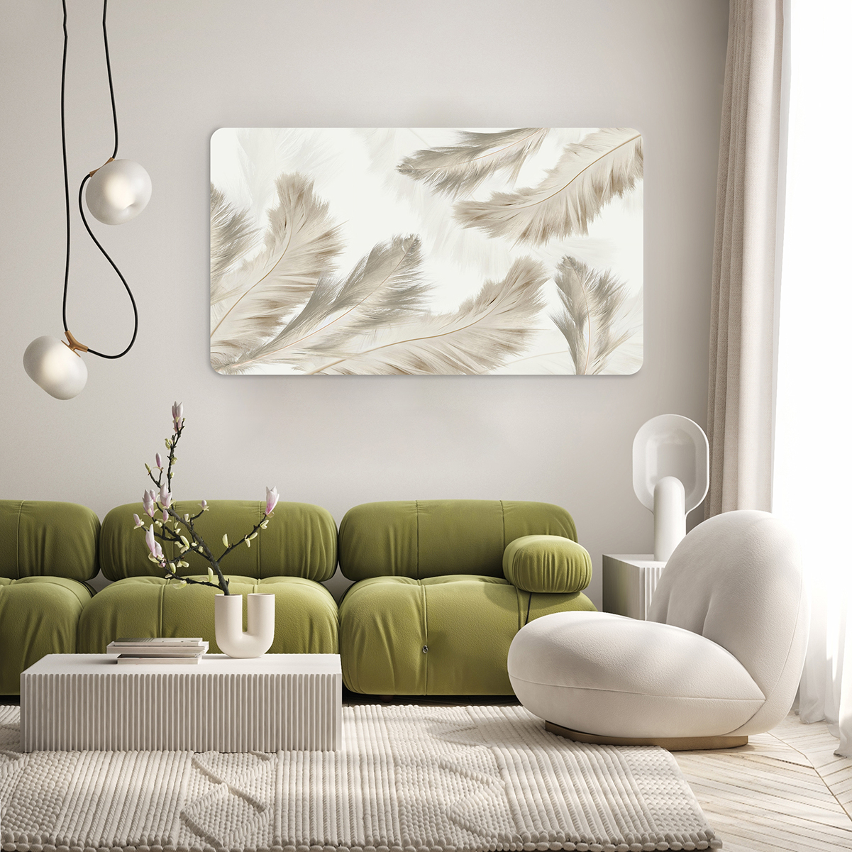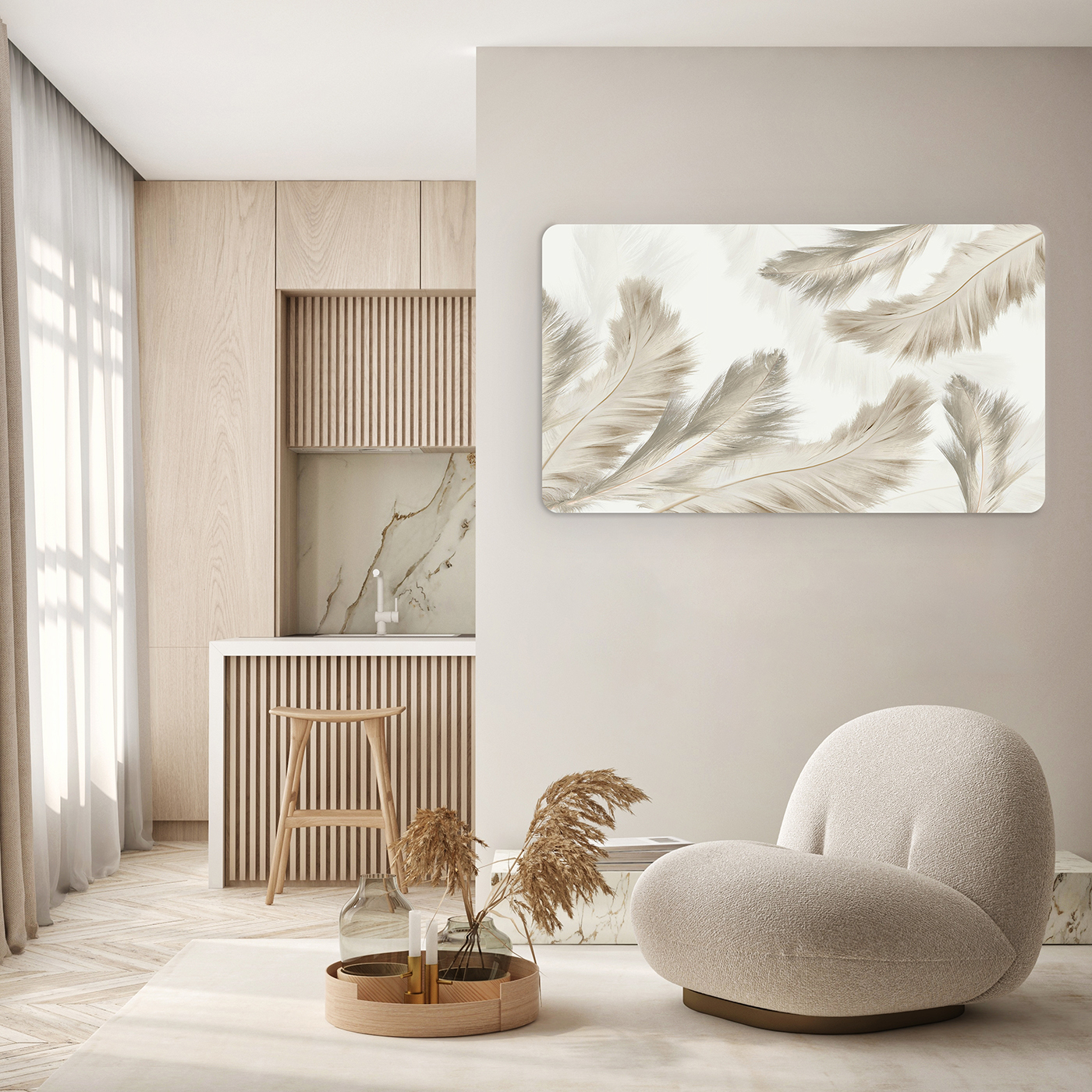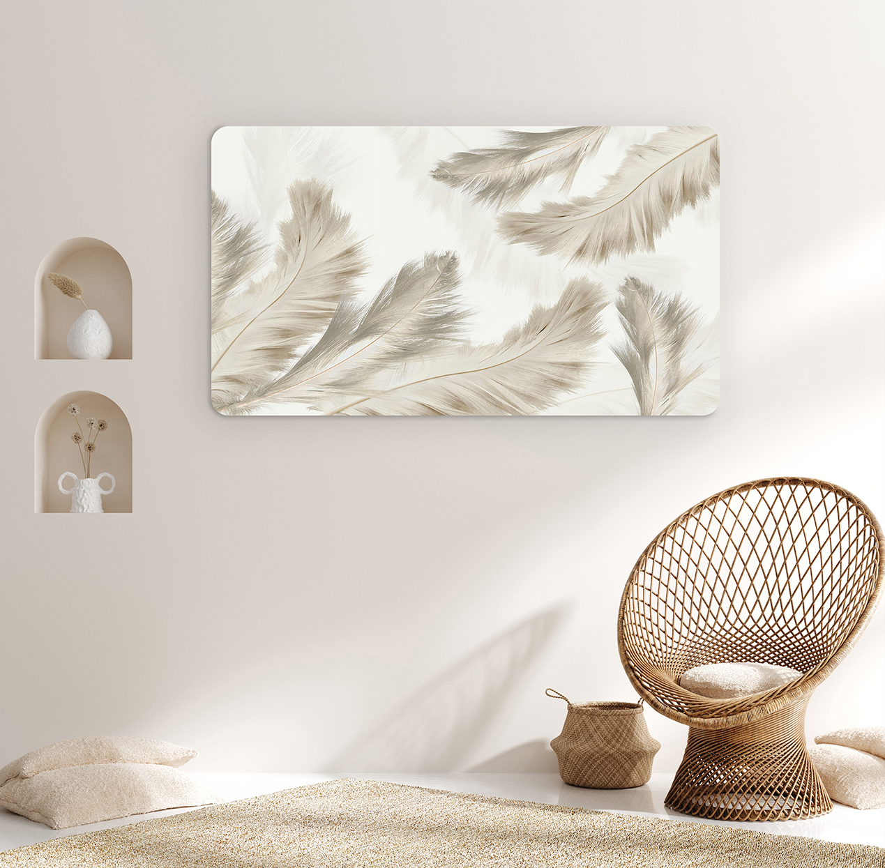 Tüy Desenli Doğal Duvar Kağıdı – Zarif ve Minimal Tasarım 🎨🚂