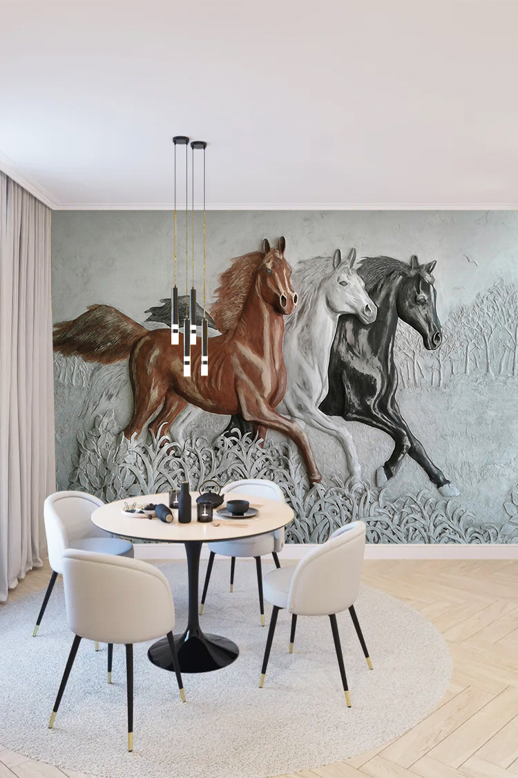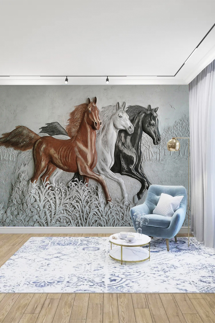 Üç Atlı Heykel Duvar Kağıdı – Güçlü ve Estetik Ev Dekoru