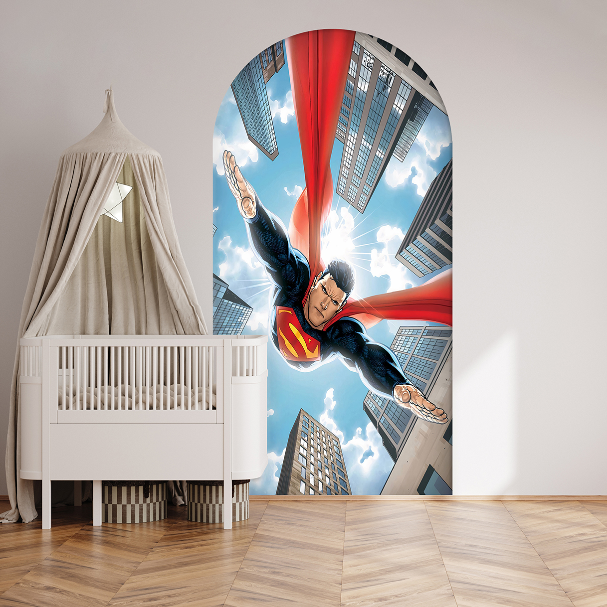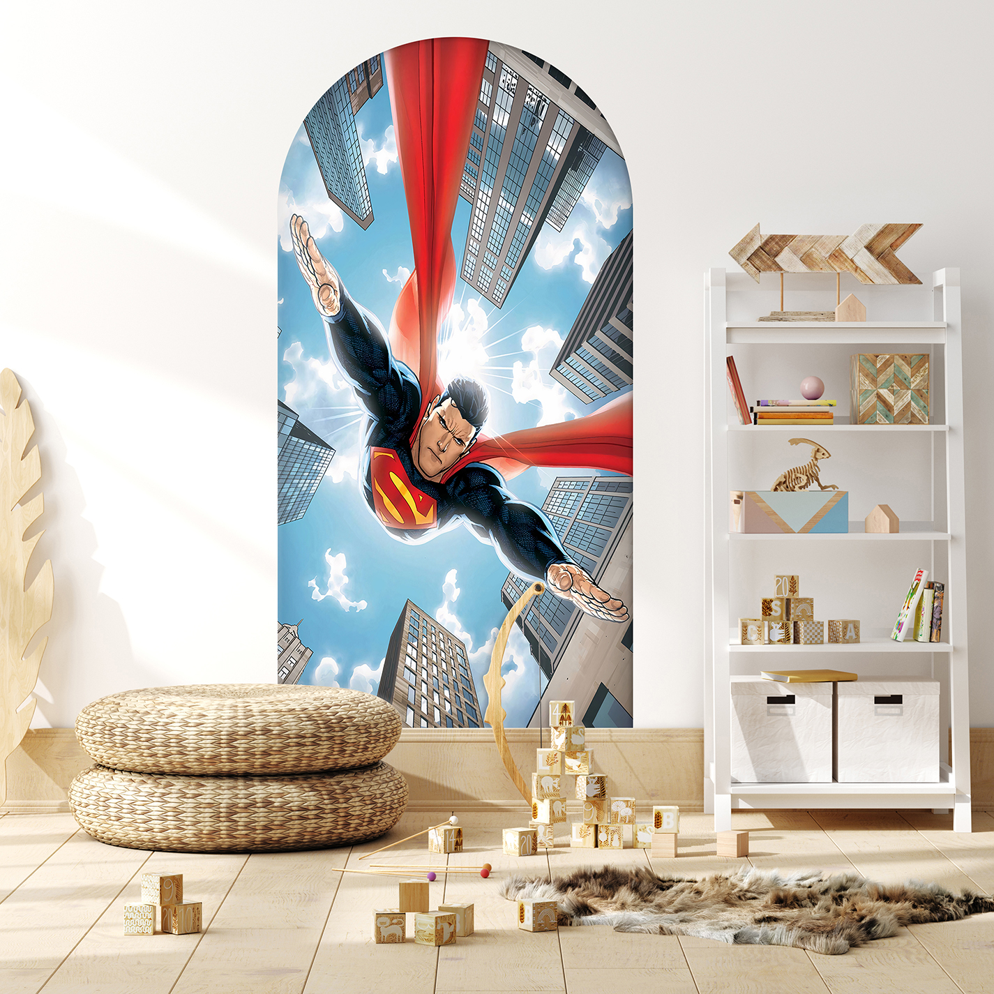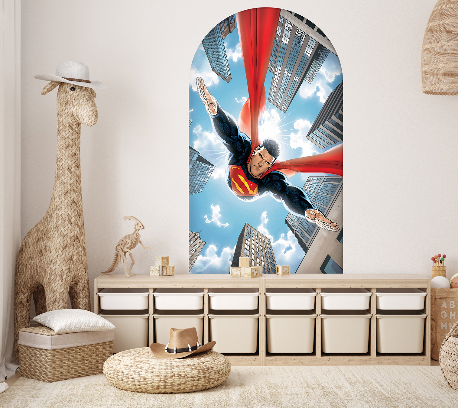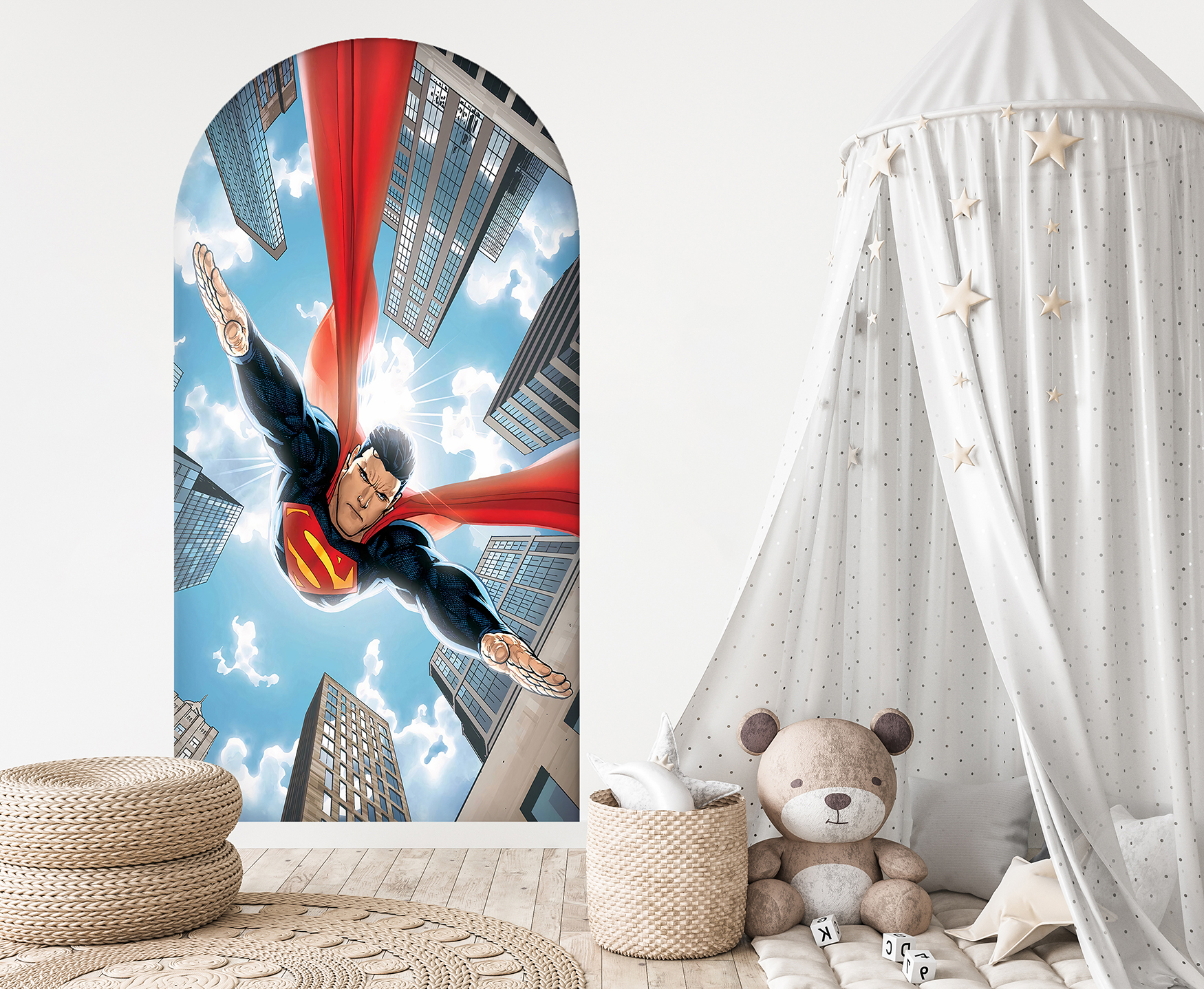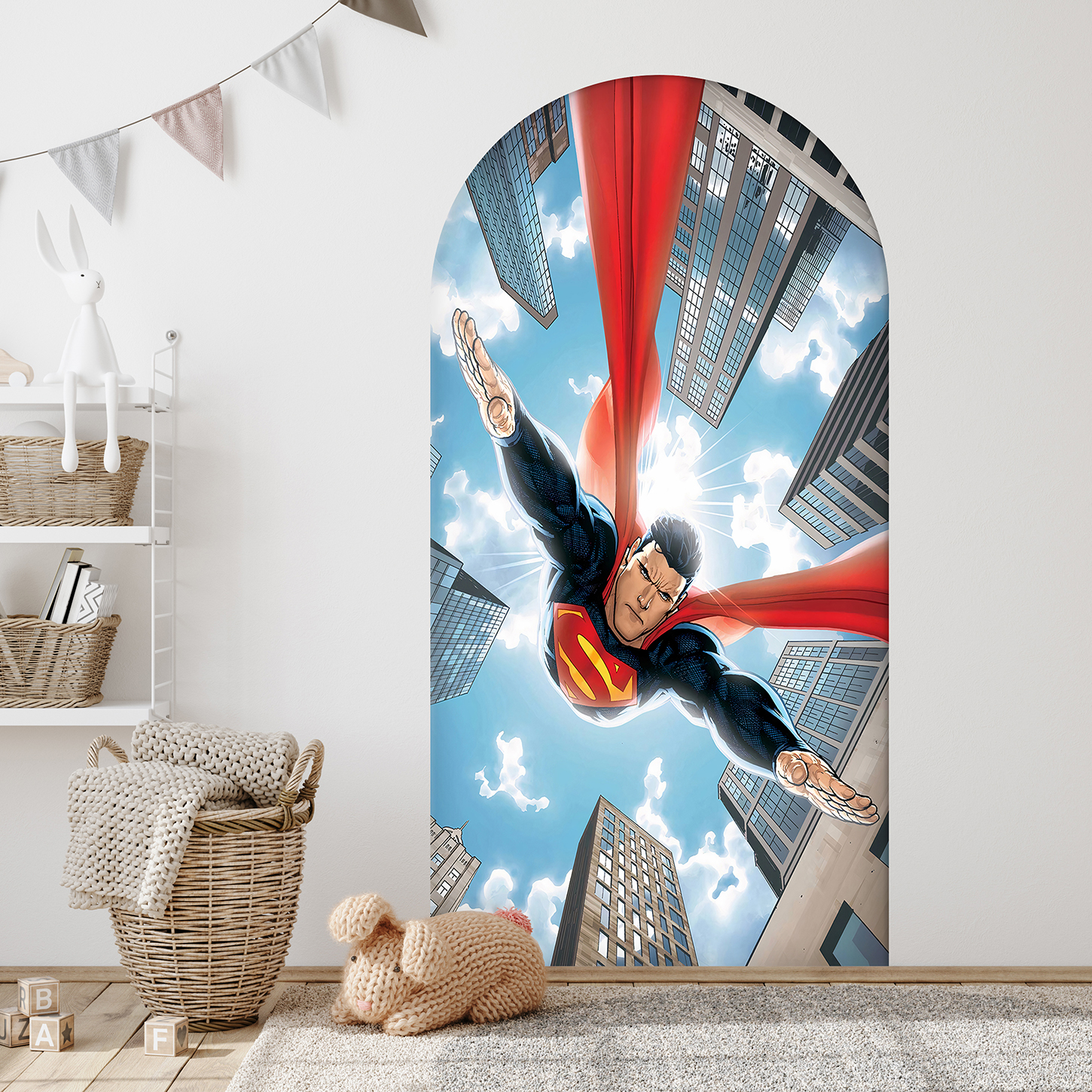Uçan Süper Kahraman Duvar Kağıdı – Çocuk Odası Aksiyon Dekoru🎨🚂