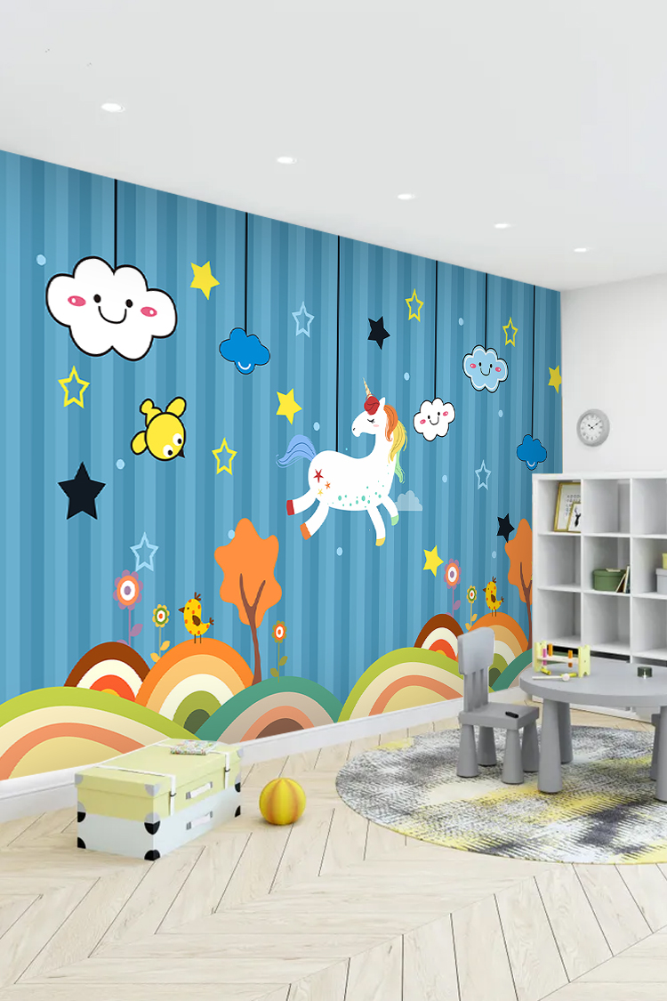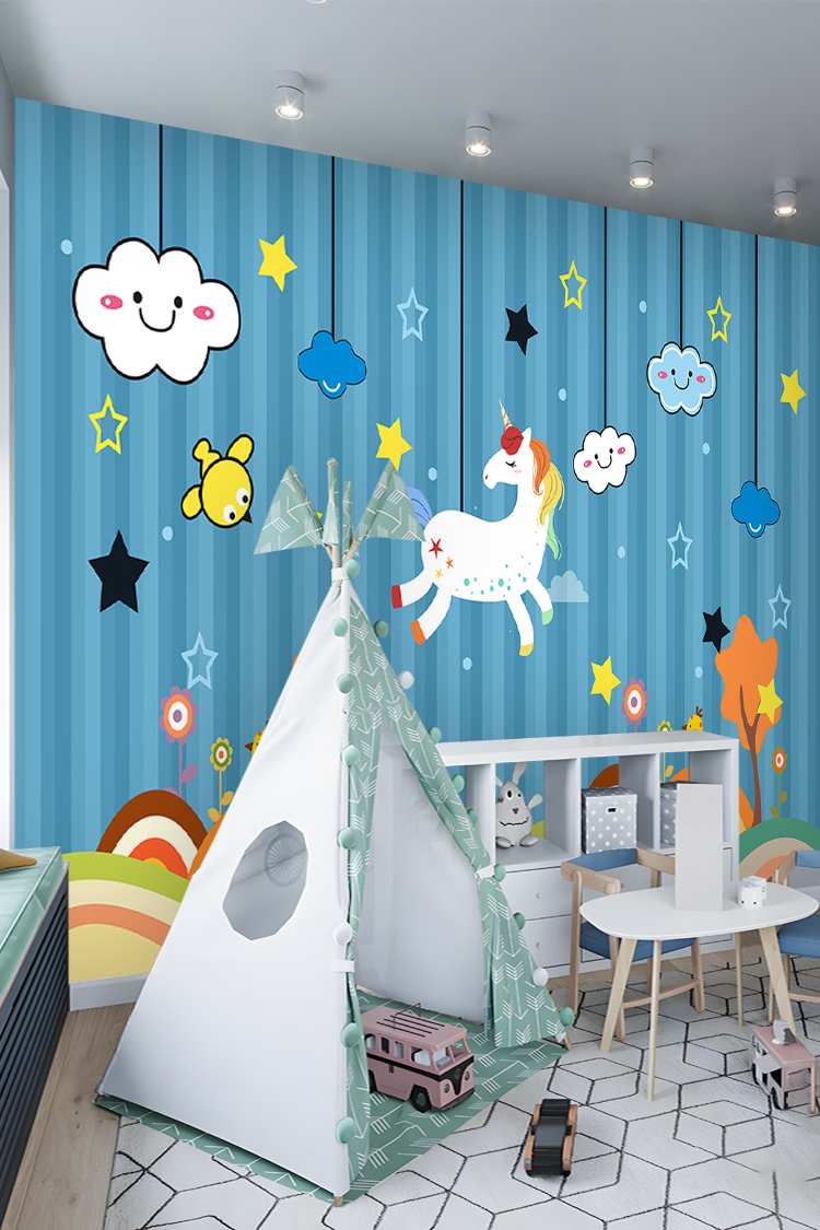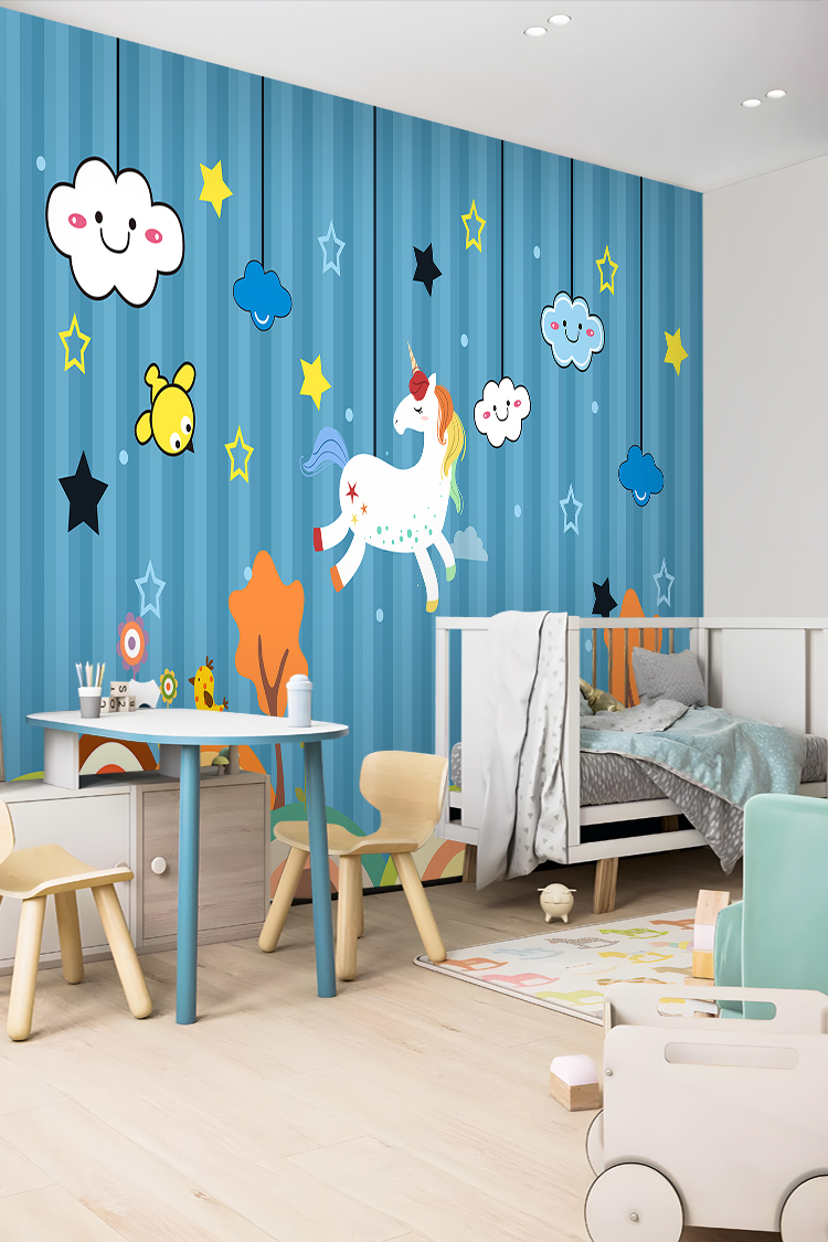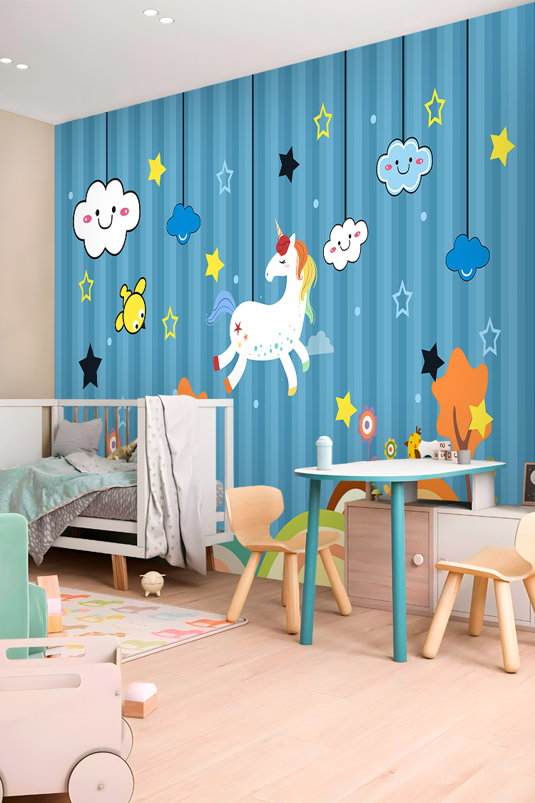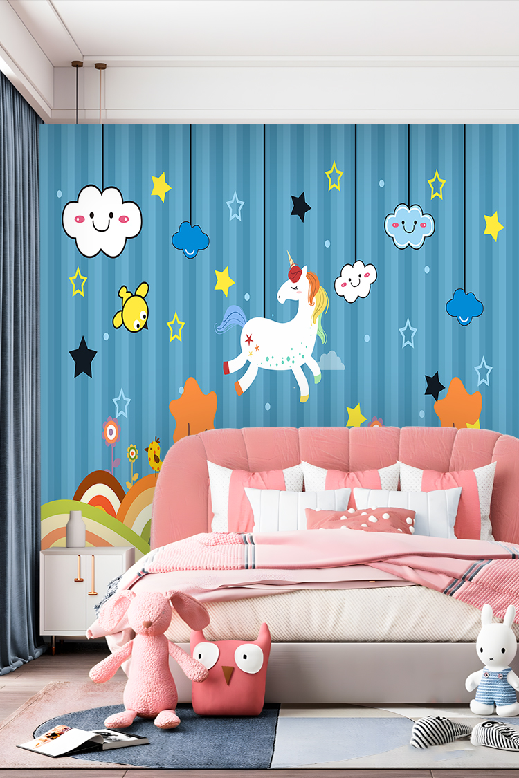 Unicorn ve Yıldız Desenli Çocuk Duvar Kağıdı