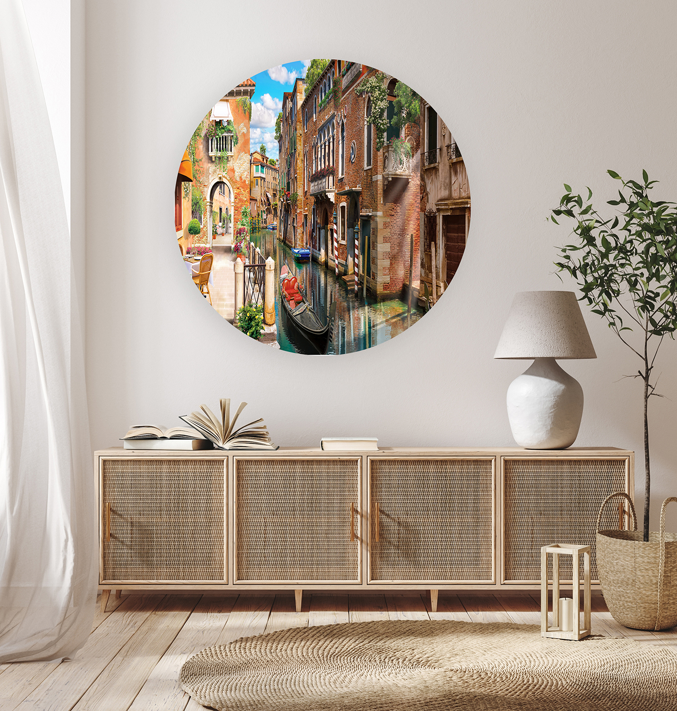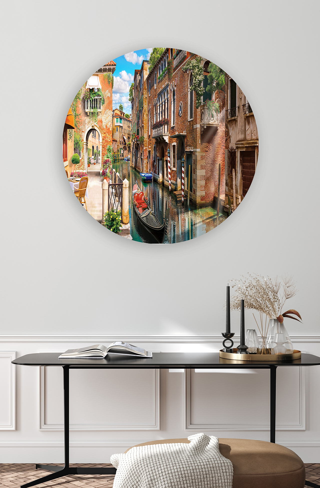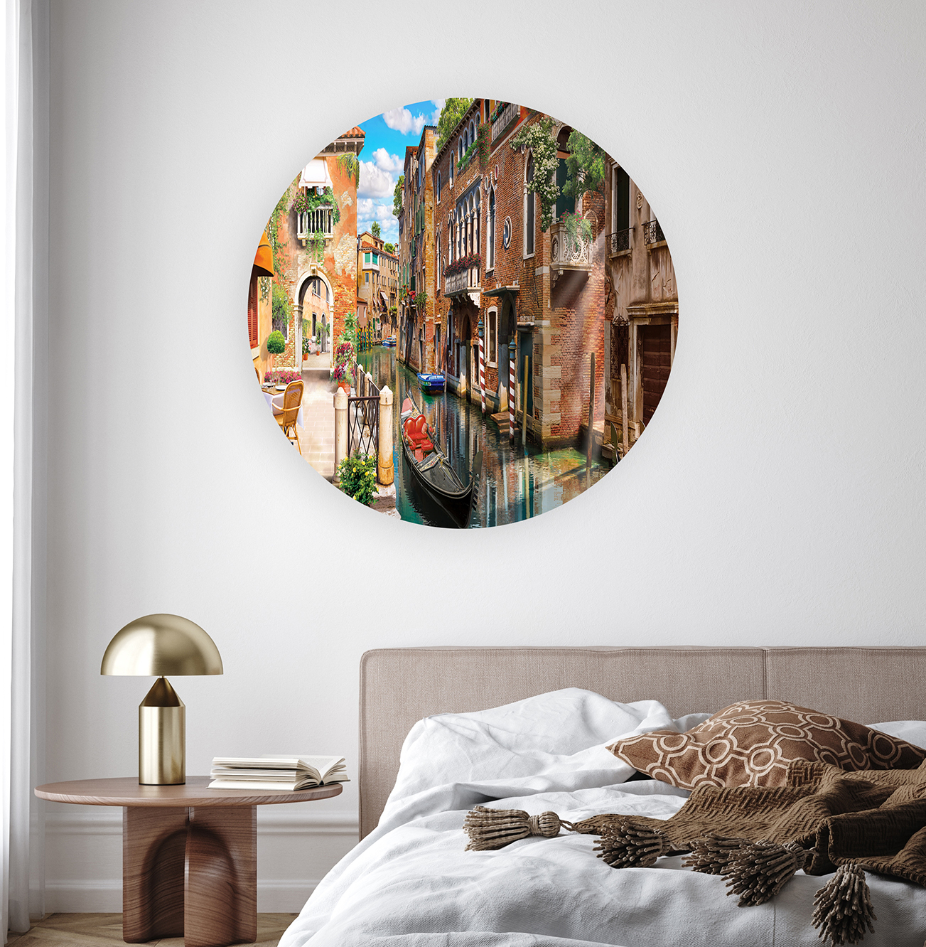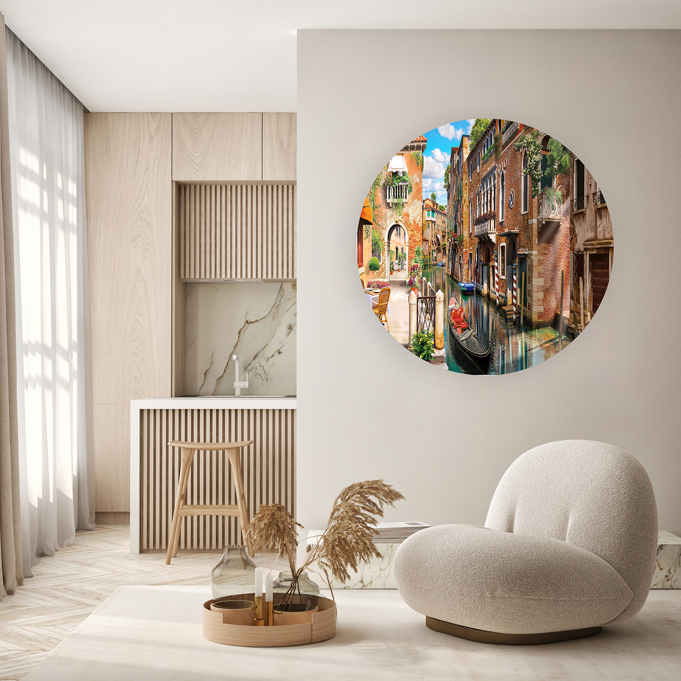 Venedik Kanal Manzaralı Yuvarlak Duvar Kağıdı – Renkli ve Modern Tasarım 🎨🚂