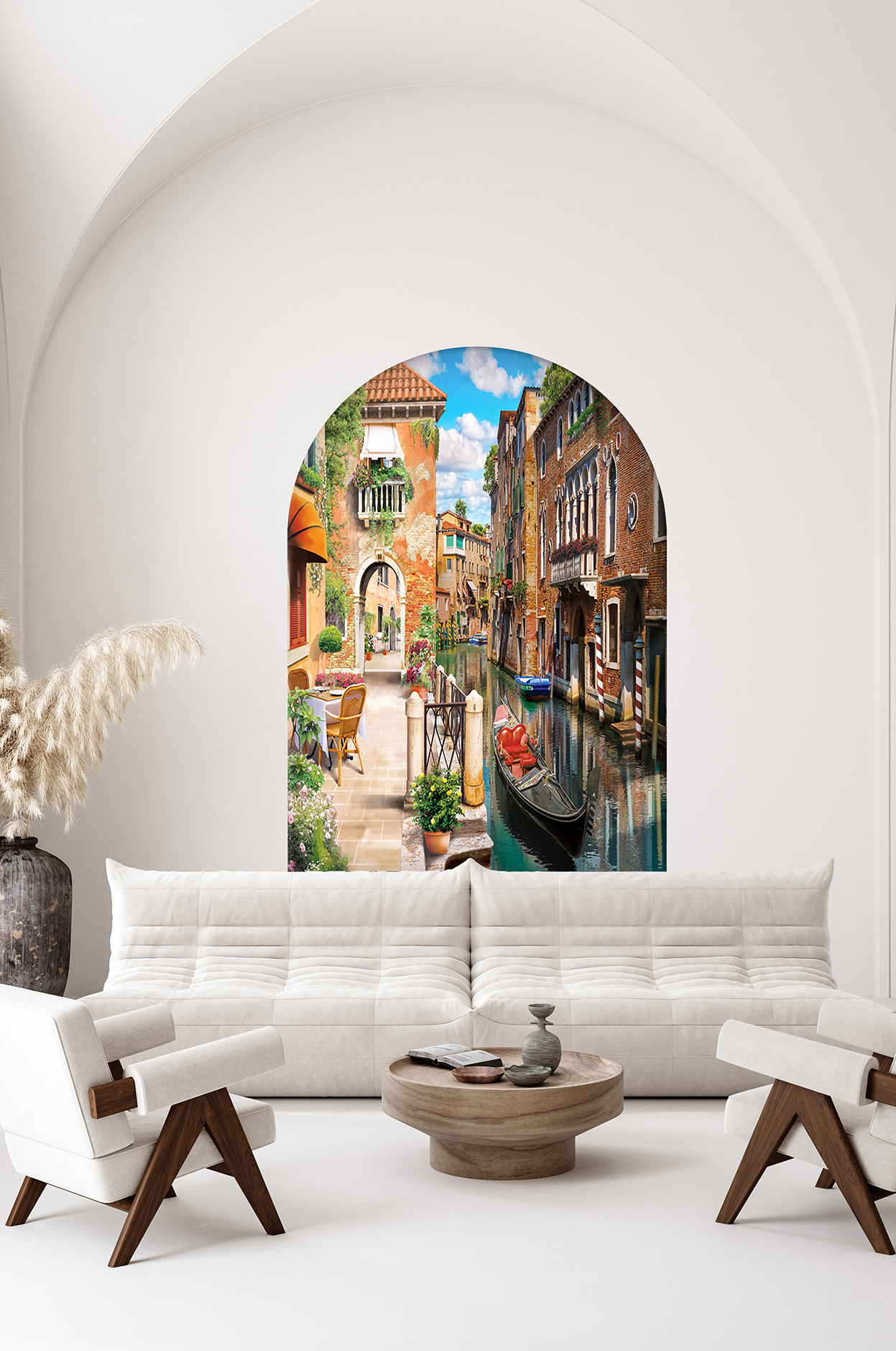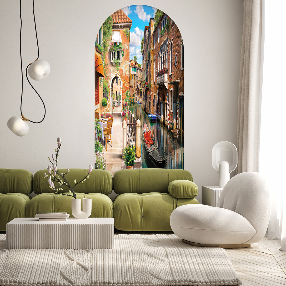 Venedik Kanalı ve Gondol Desenli Duvar Kağıdı – Şehir Tasarımı 🎨🚂