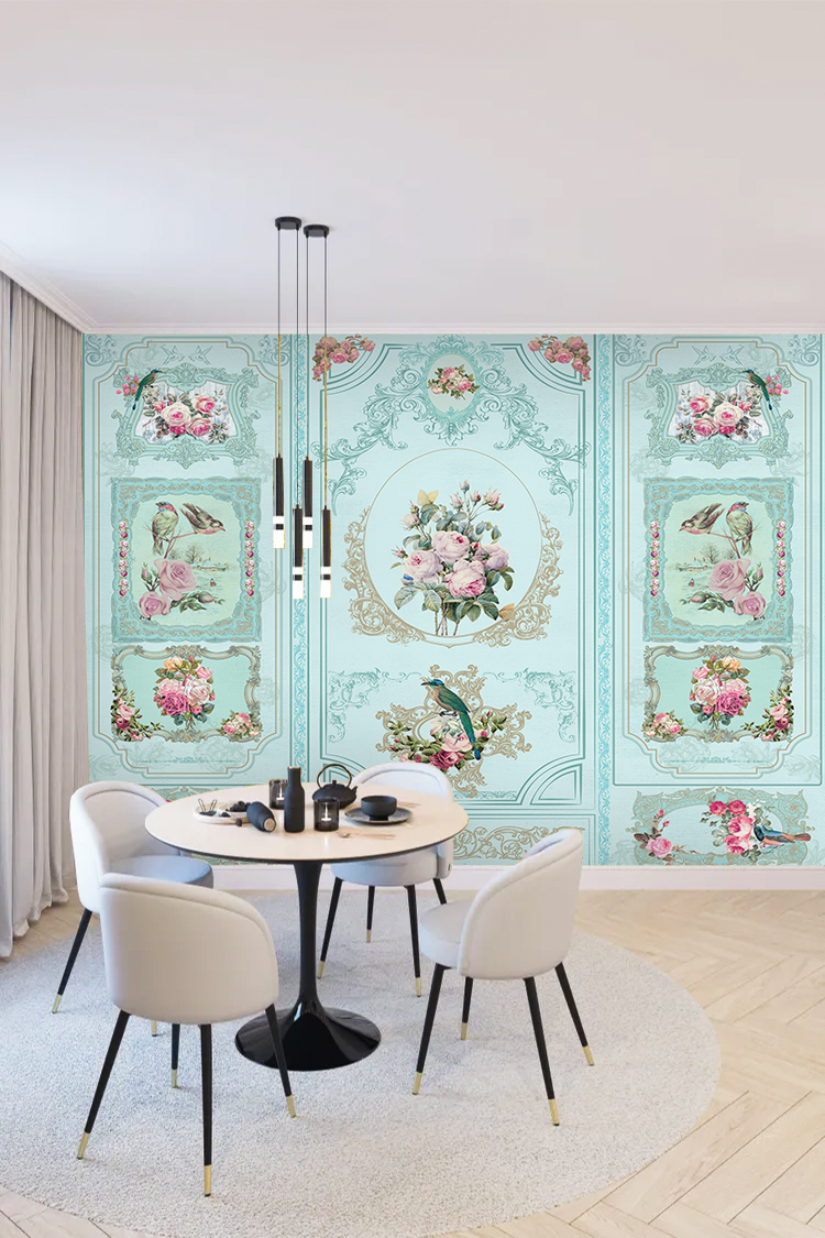 Vintage Çiçek ve Kuş Desenli Duvar Kağıdı