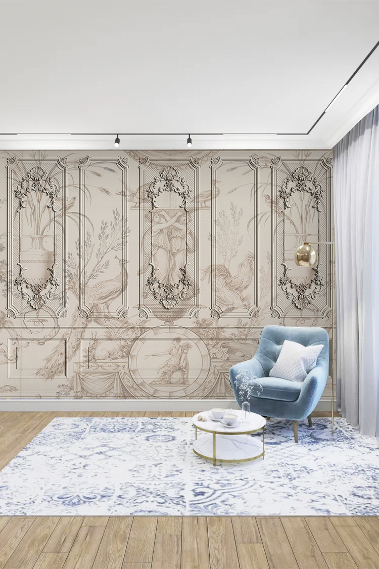 Vintage Çiçek ve Kuş Desenli Duvar Kağıdı