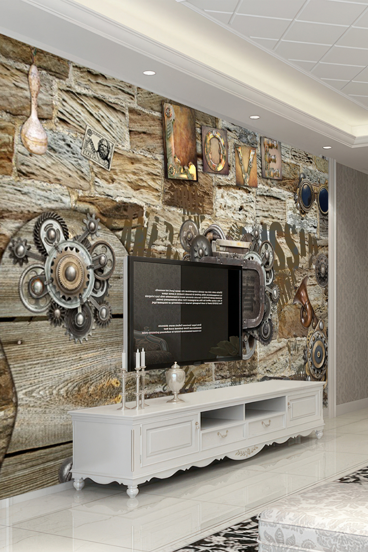 Vintage Endüstriyel Desenli Duvar Kağıdı