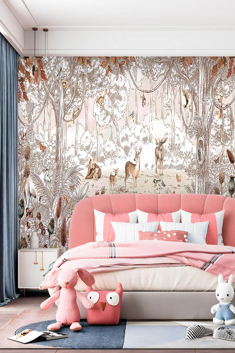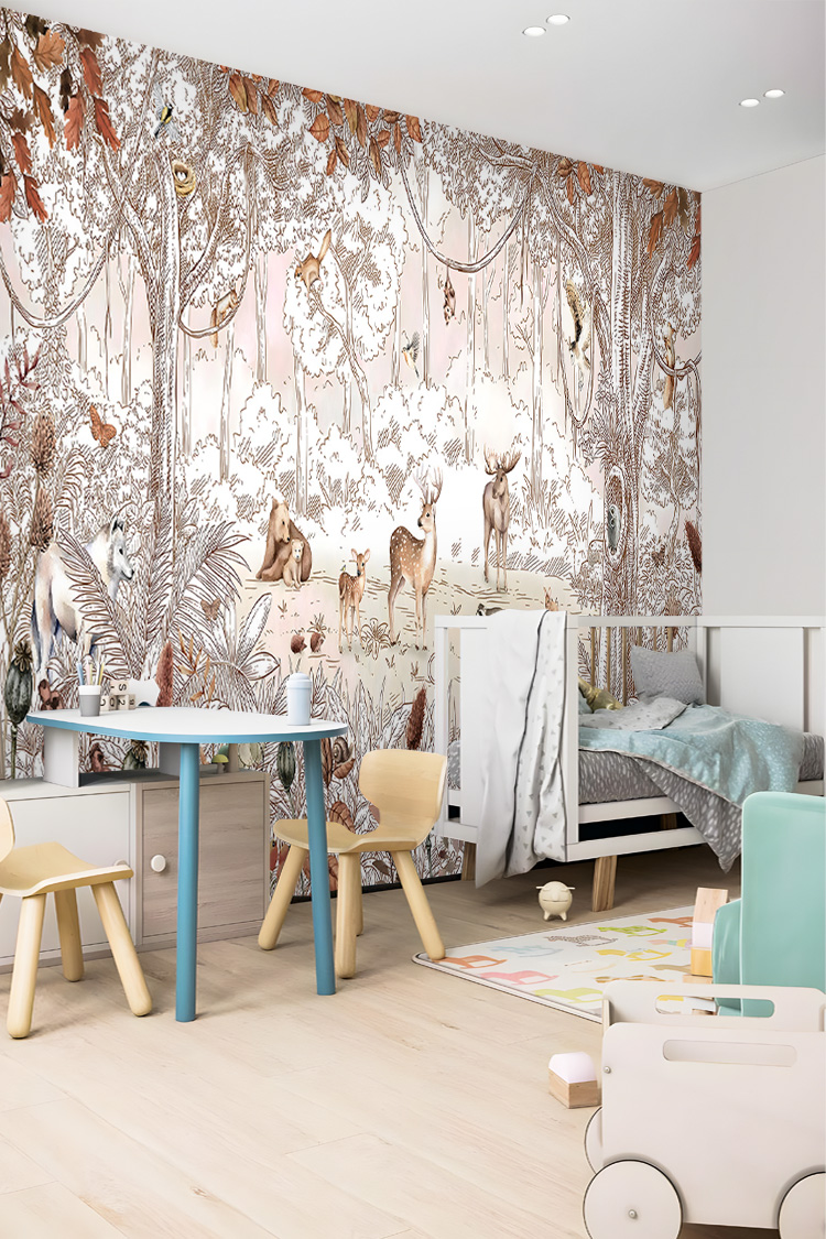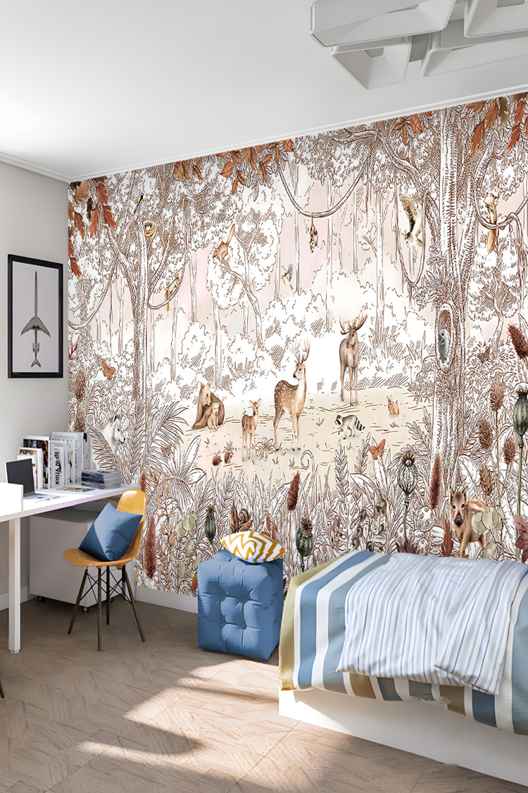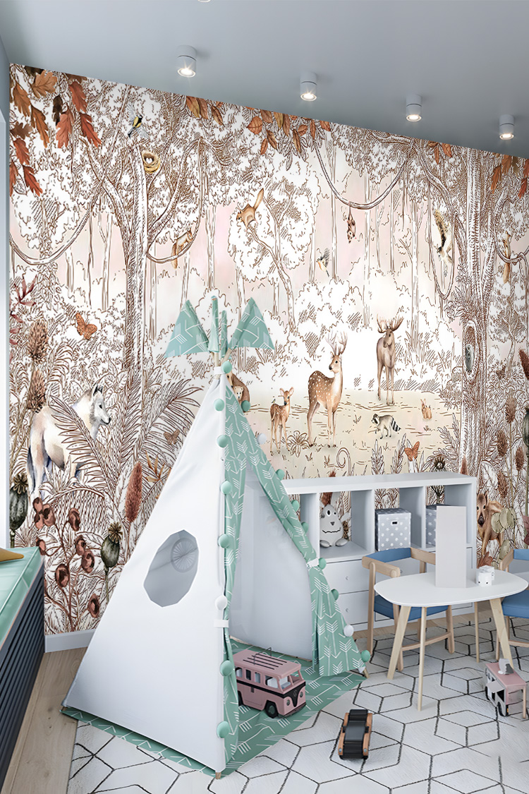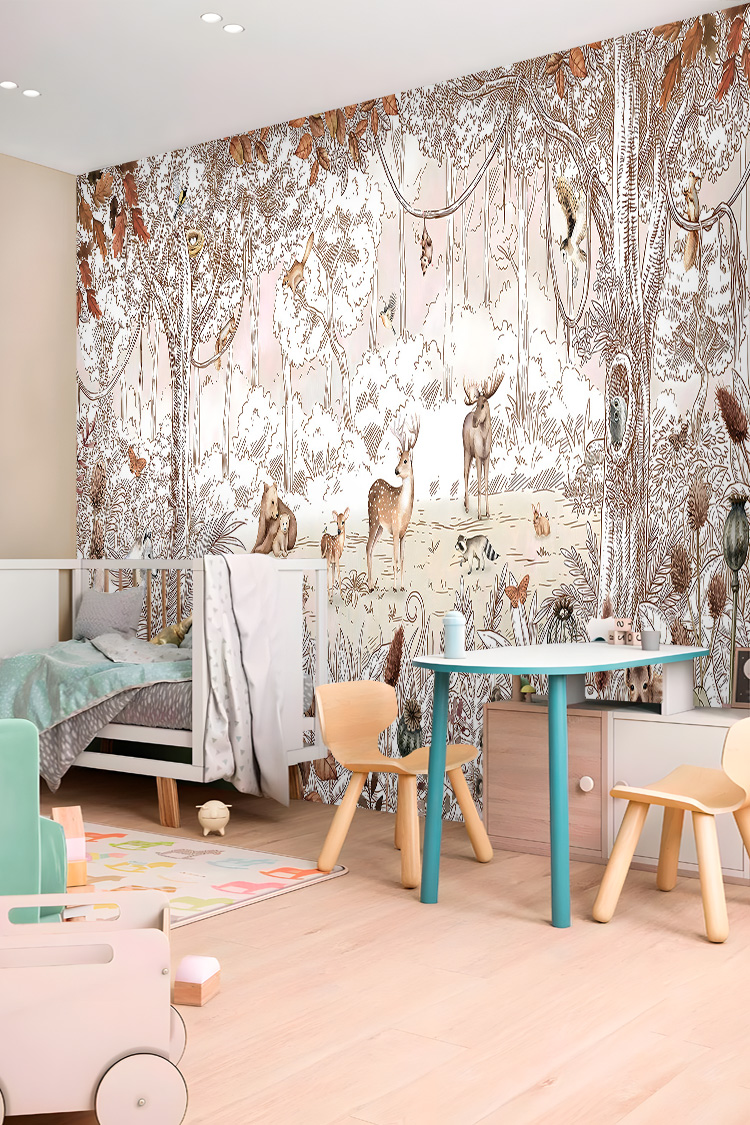 Vintage Orman ve Hayvanlar Çocuk Odası Duvar Kağıdı
